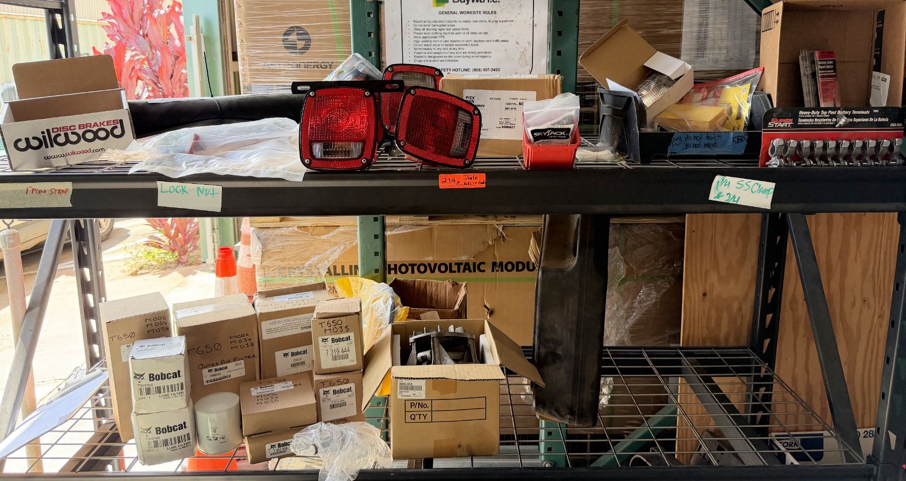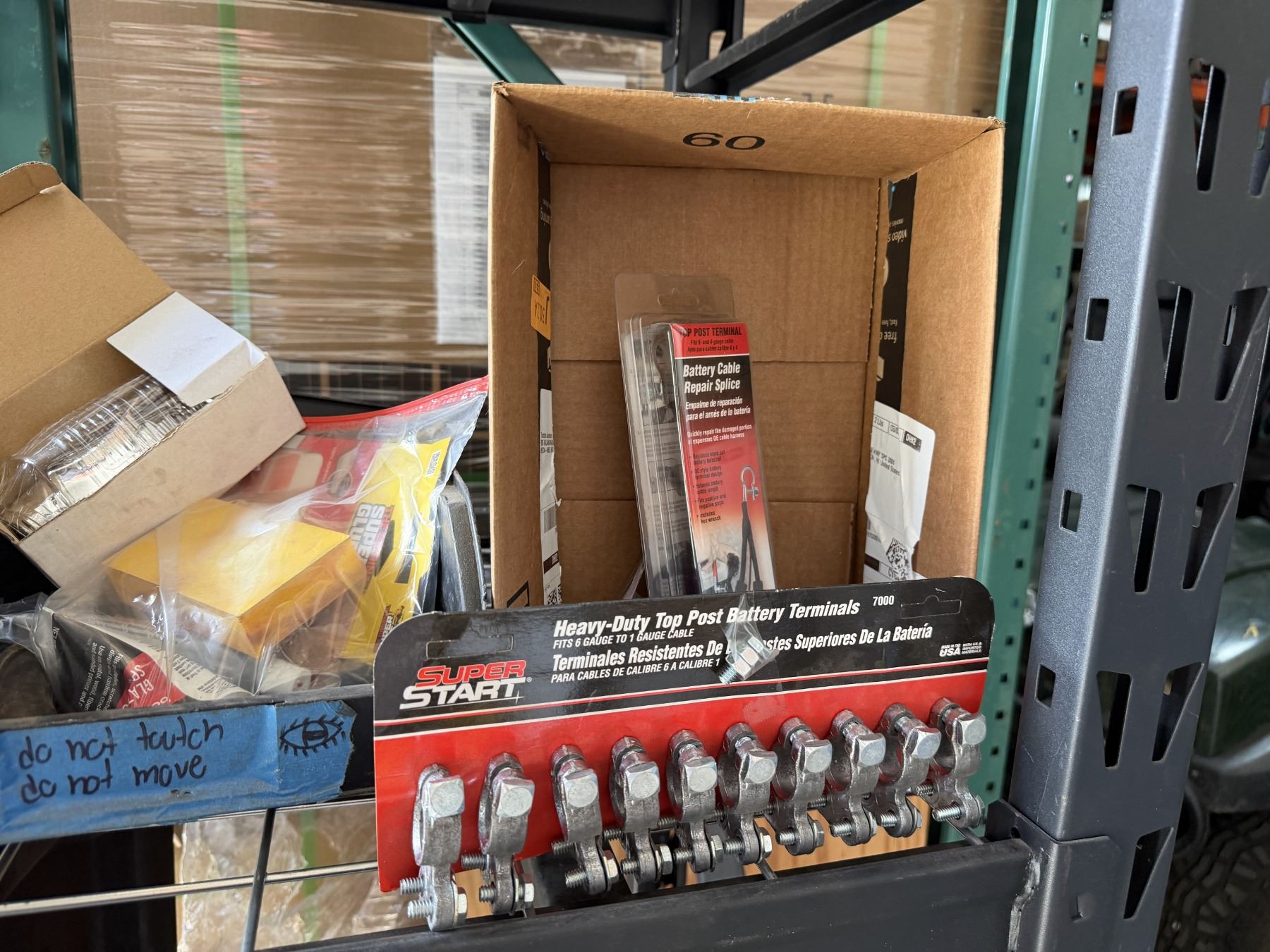 Contents of Shelf: Battery Terminals, Lights, Clamps, Filters, etc (Shelf not included)