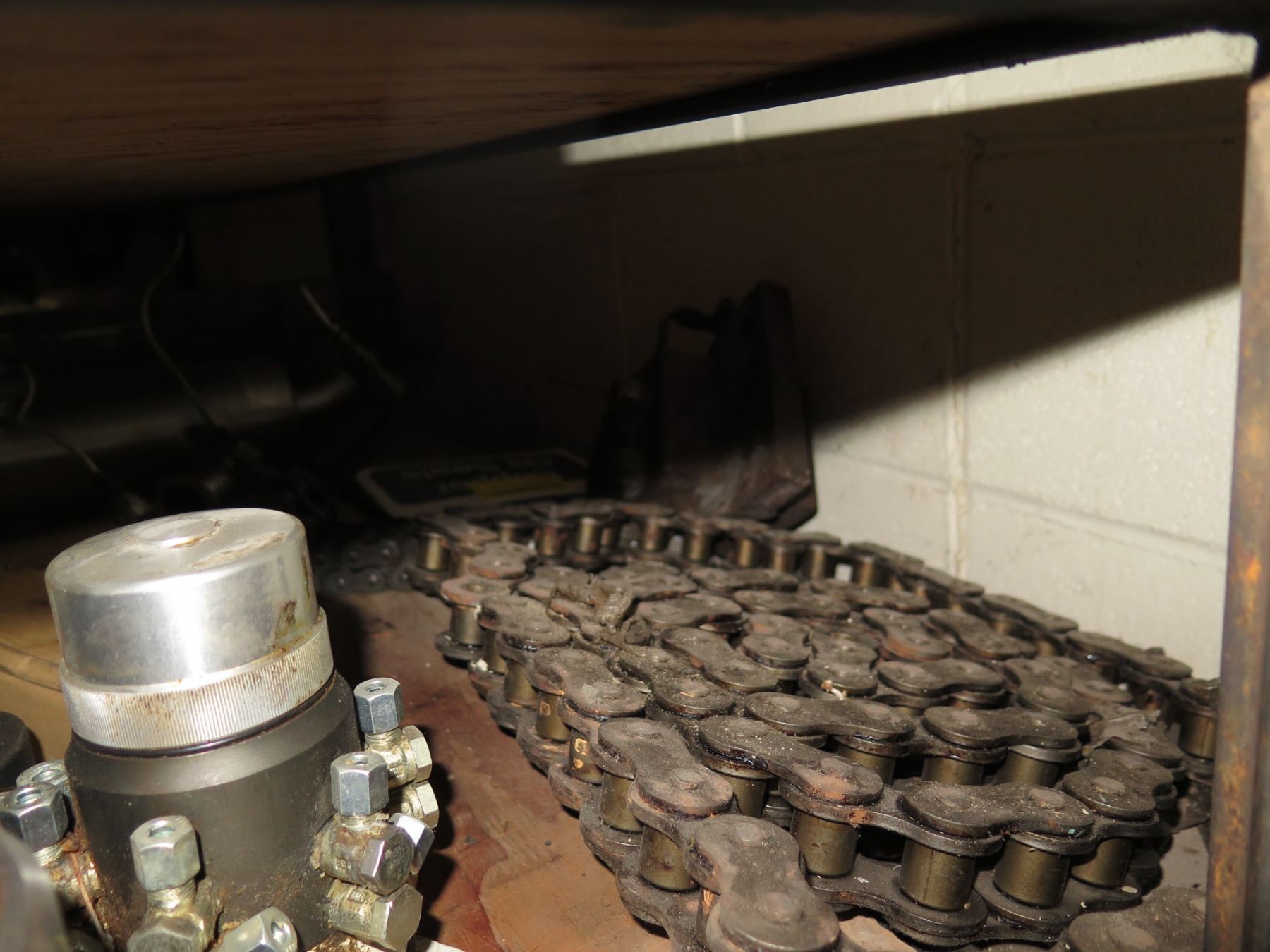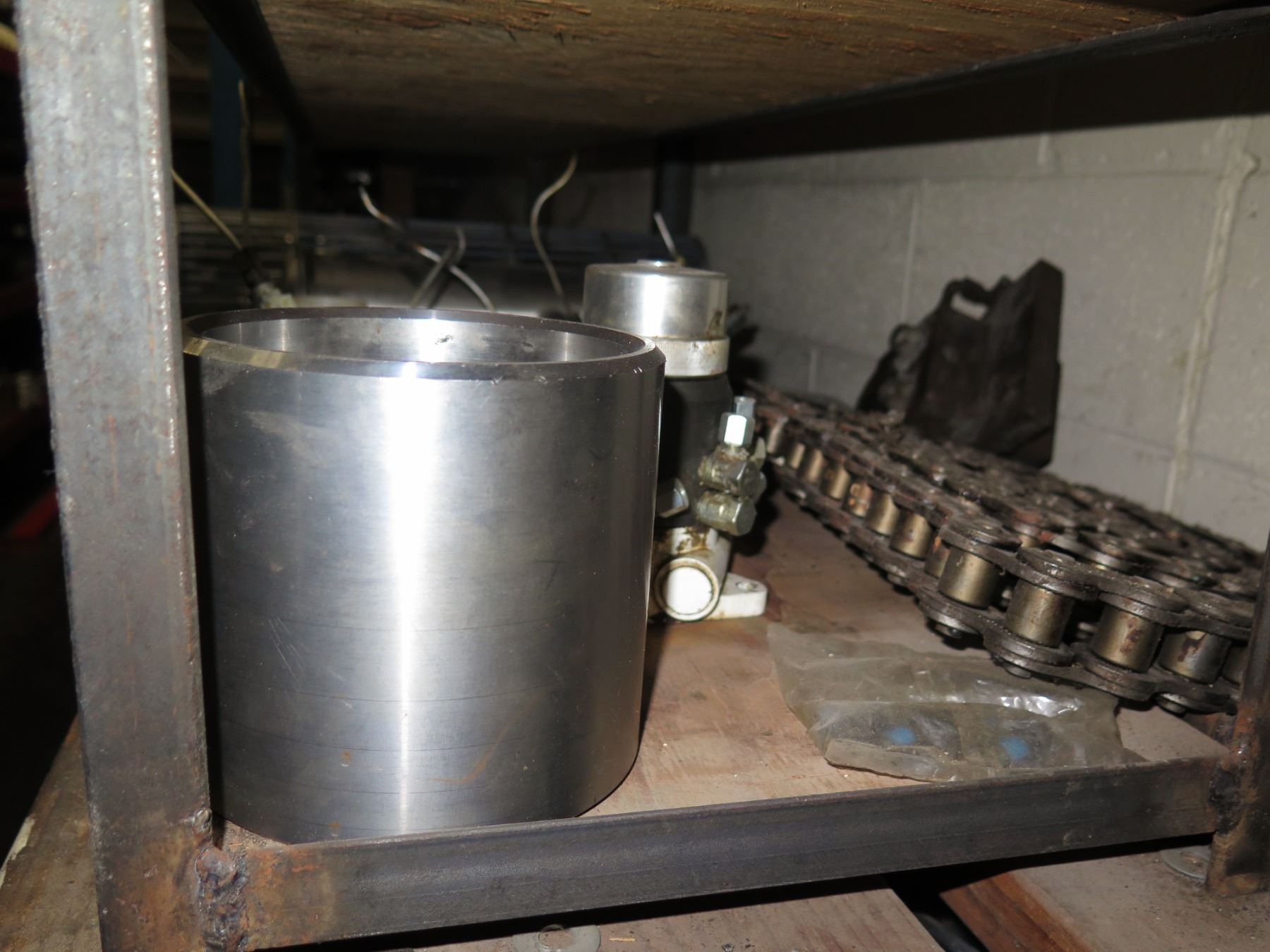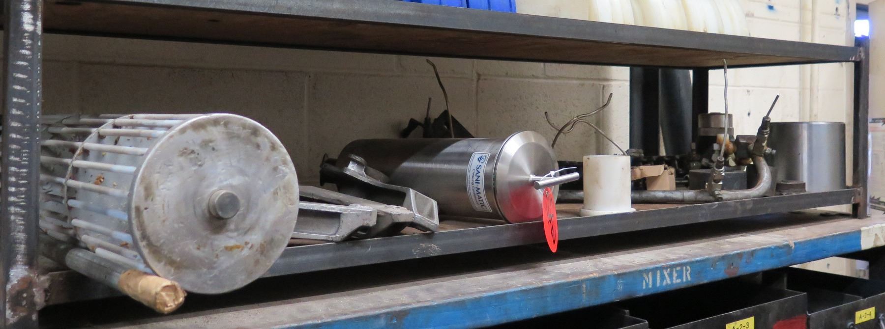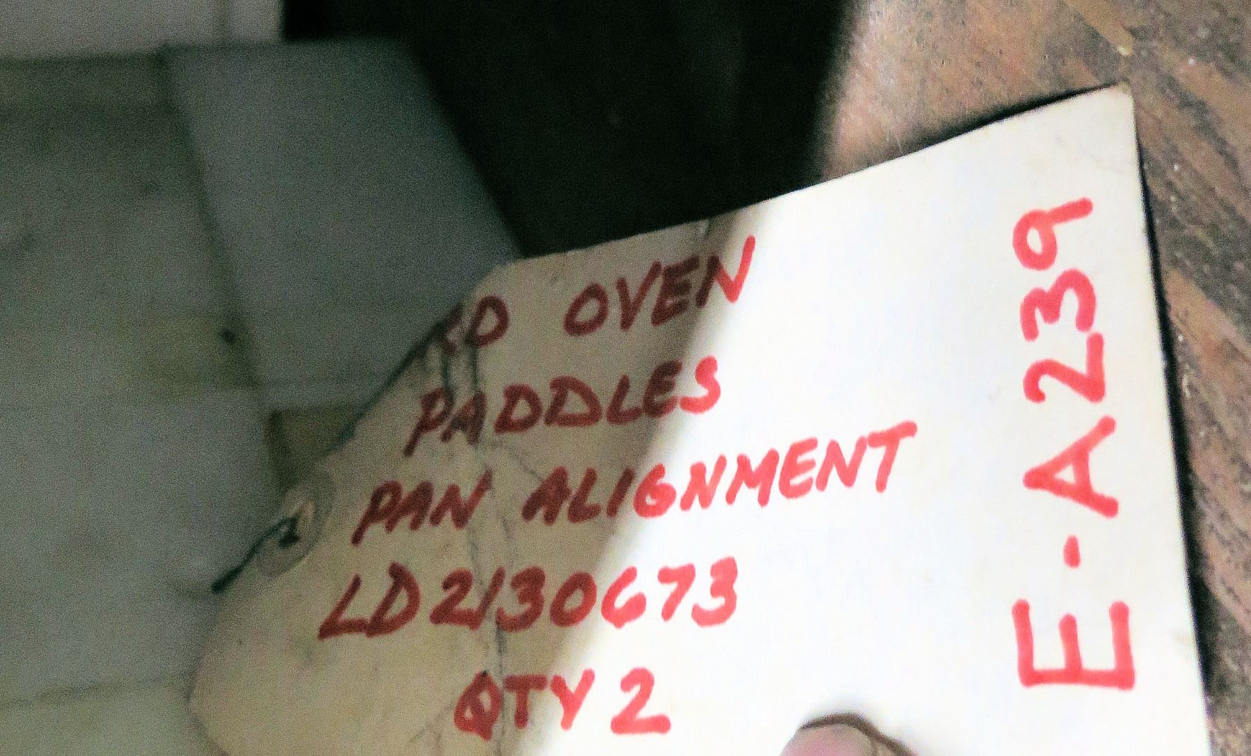 Contents of Shelf: Bread Oven Paddles Pan Alignment, SaniMatic Cleaner, Chains