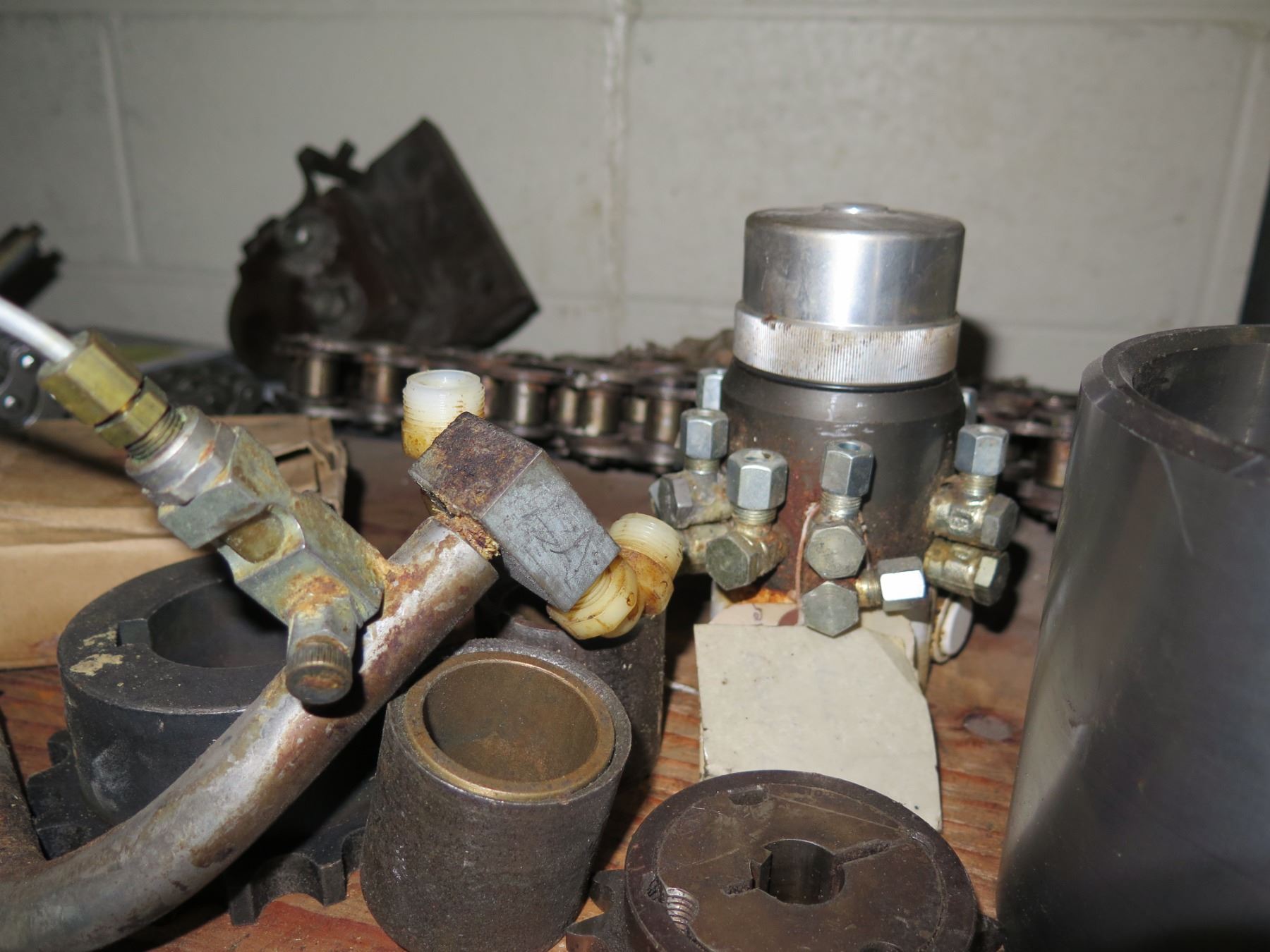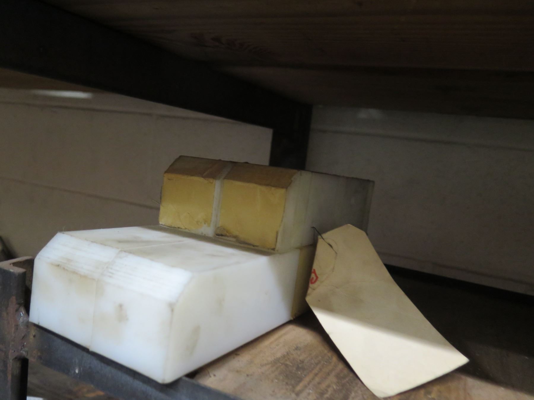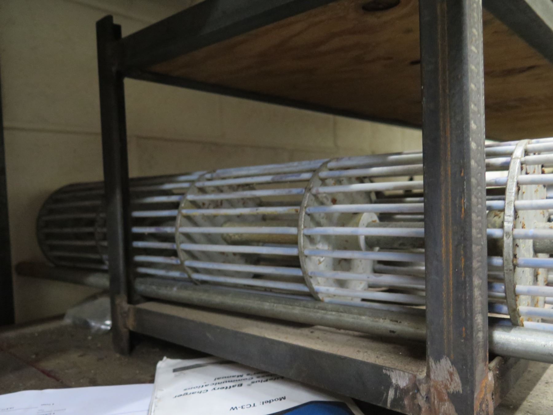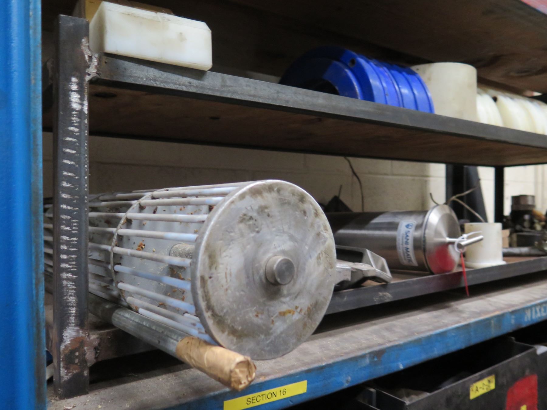 Contents of Shelf: Bread Oven Paddles Pan Alignment, SaniMatic Cleaner, Chains