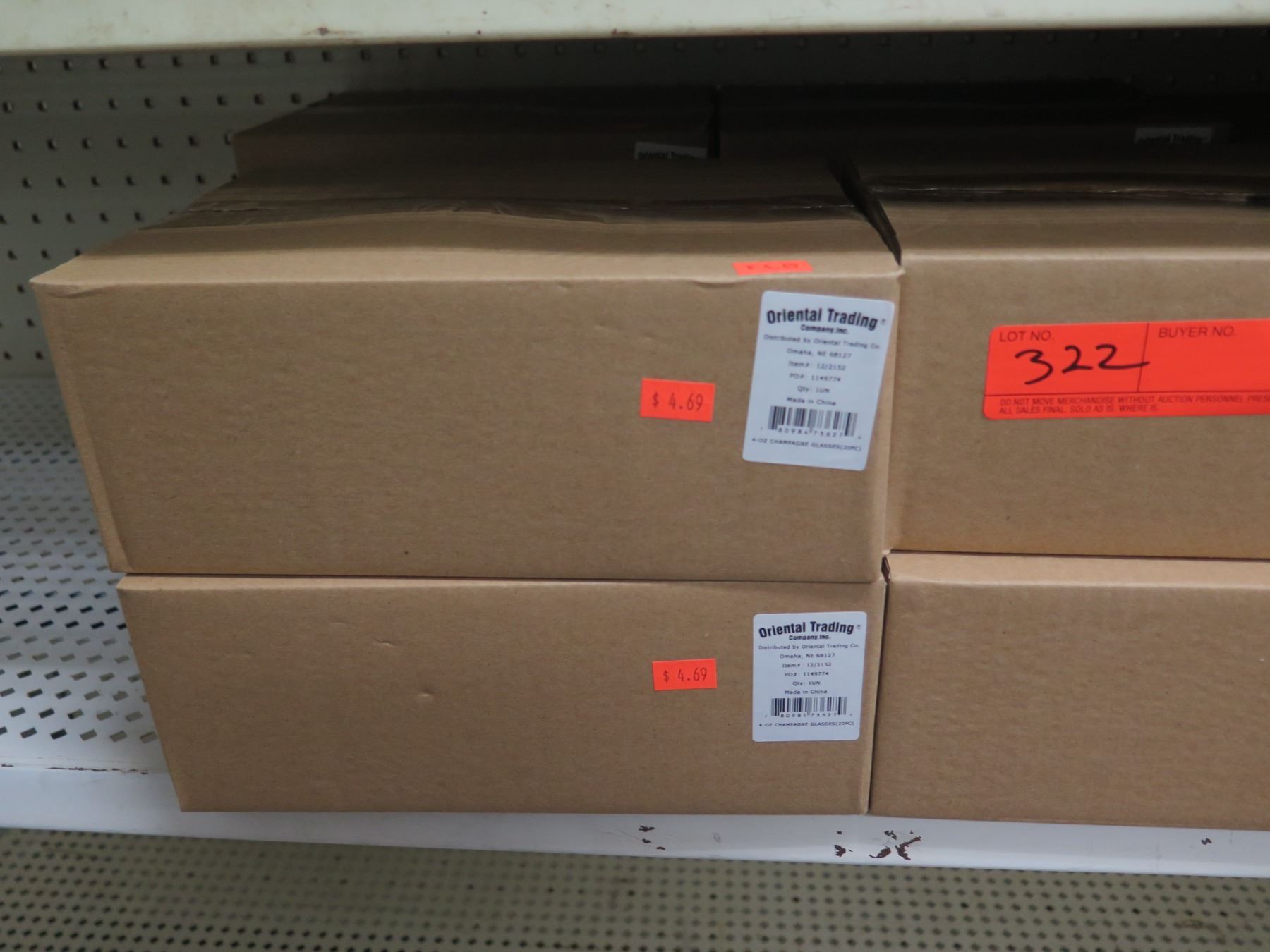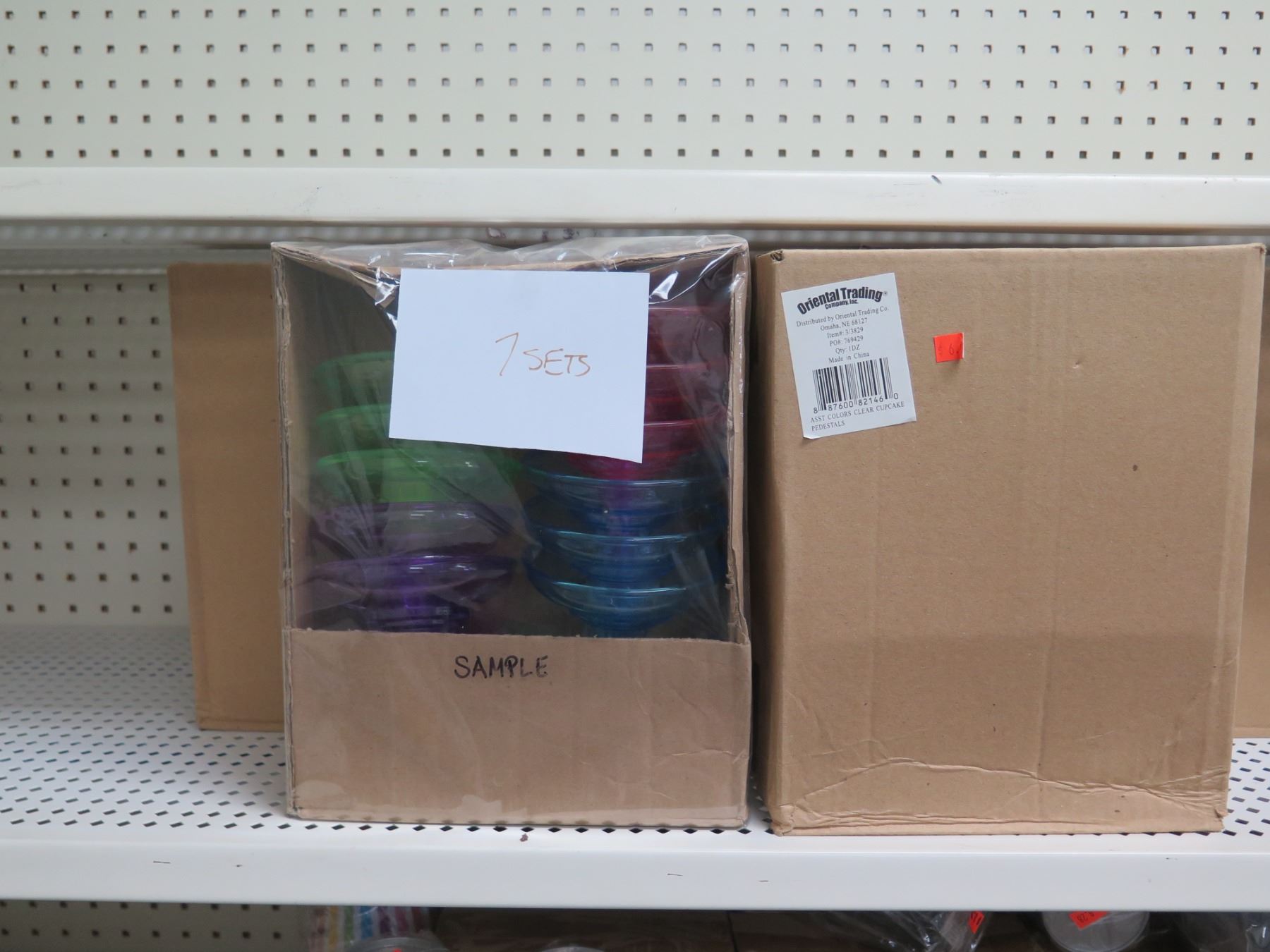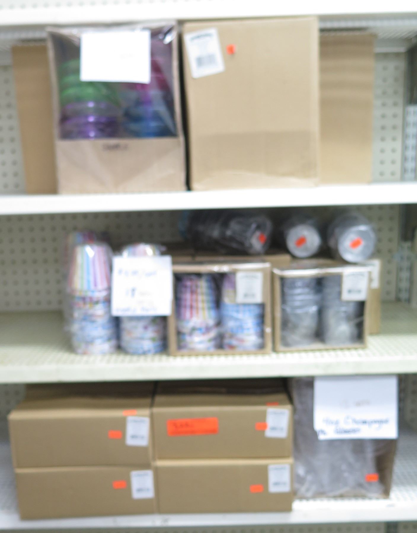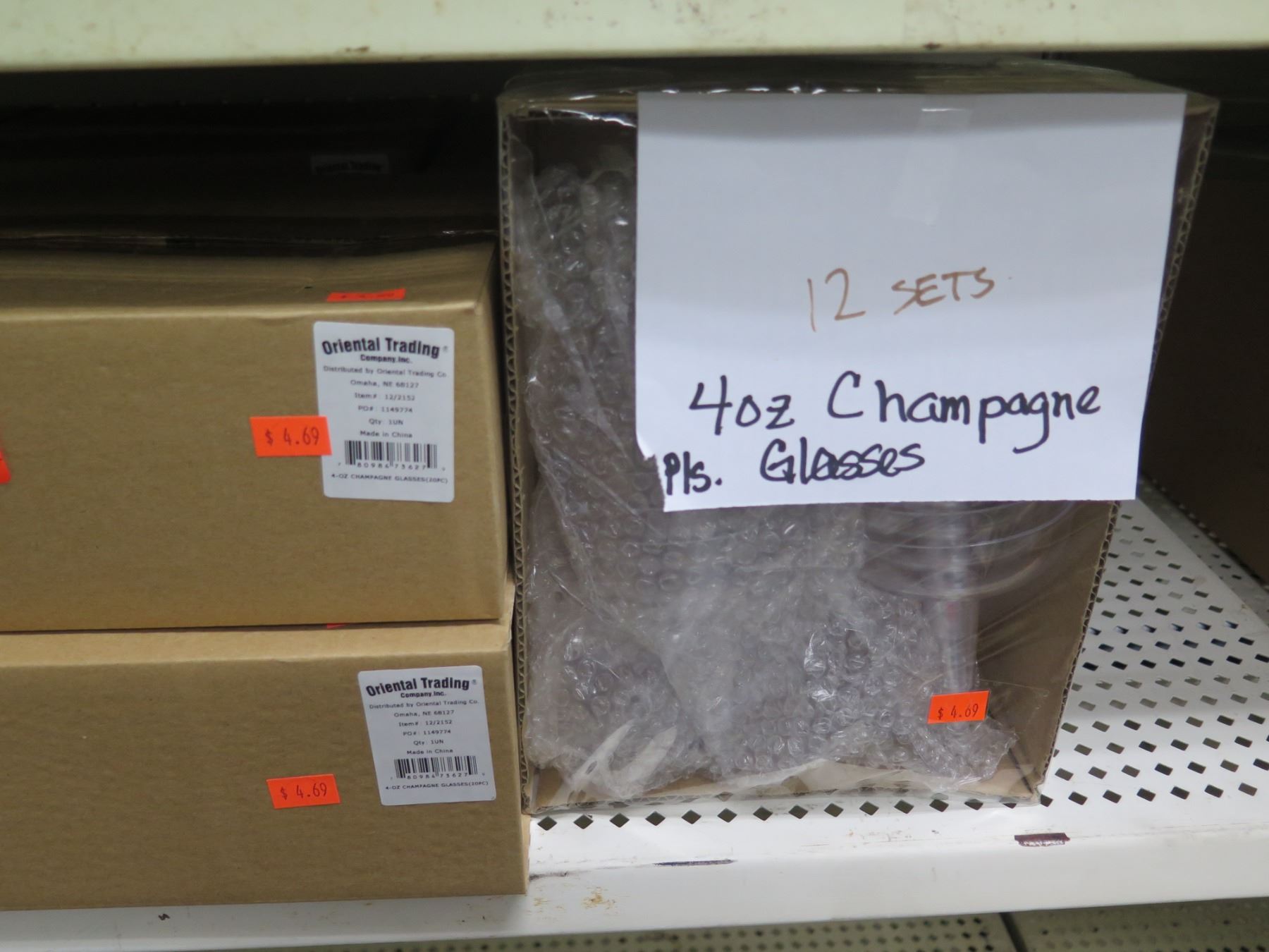 Contents of Shelf: Cupcake Pedestals, Pails, Plastic Champagne Glasses, etc (shelf not included)