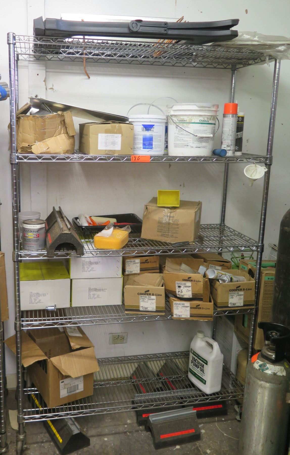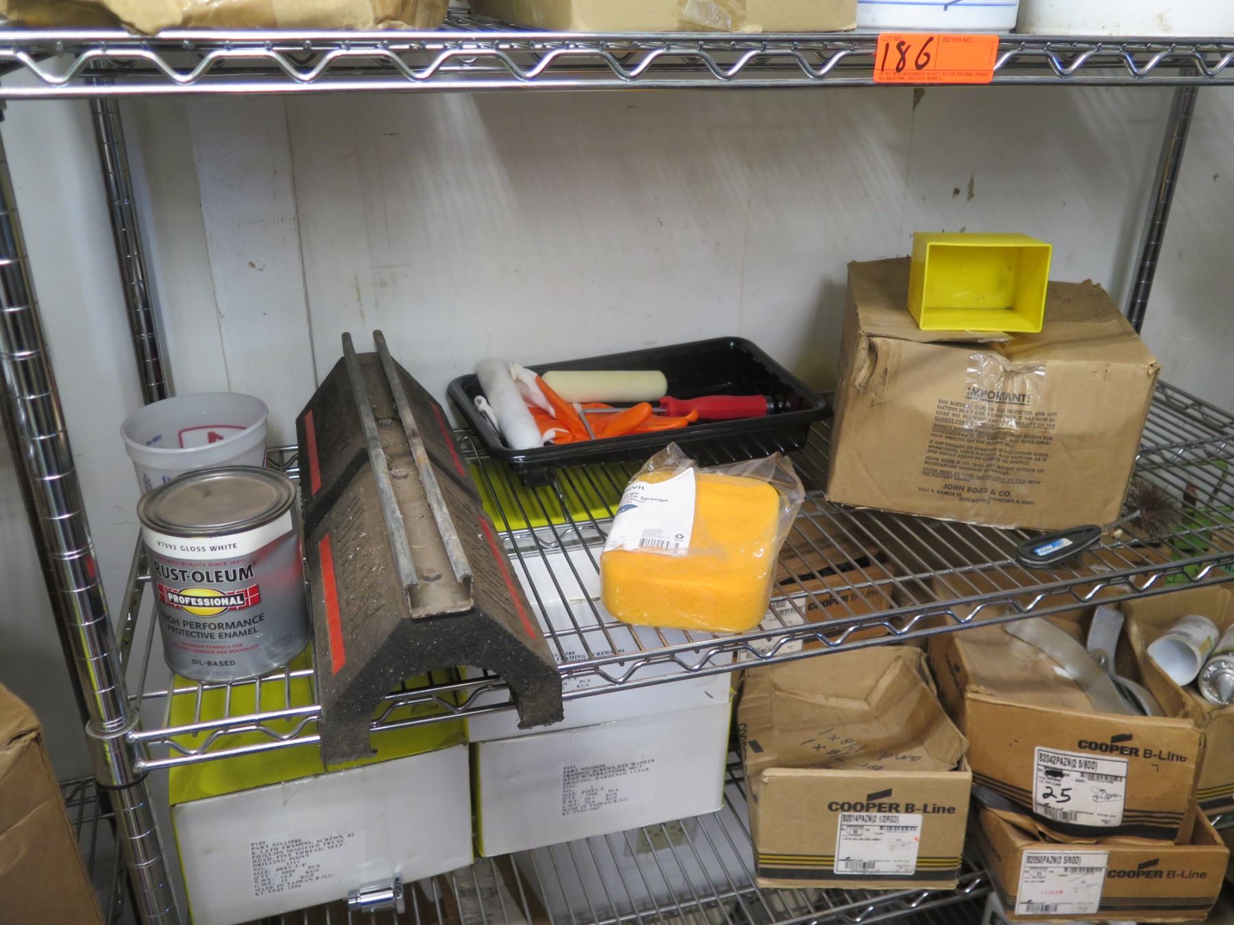 Contents of Shelf: Hardware, Caster Kit, Enamel, etc (Shelf not included)
