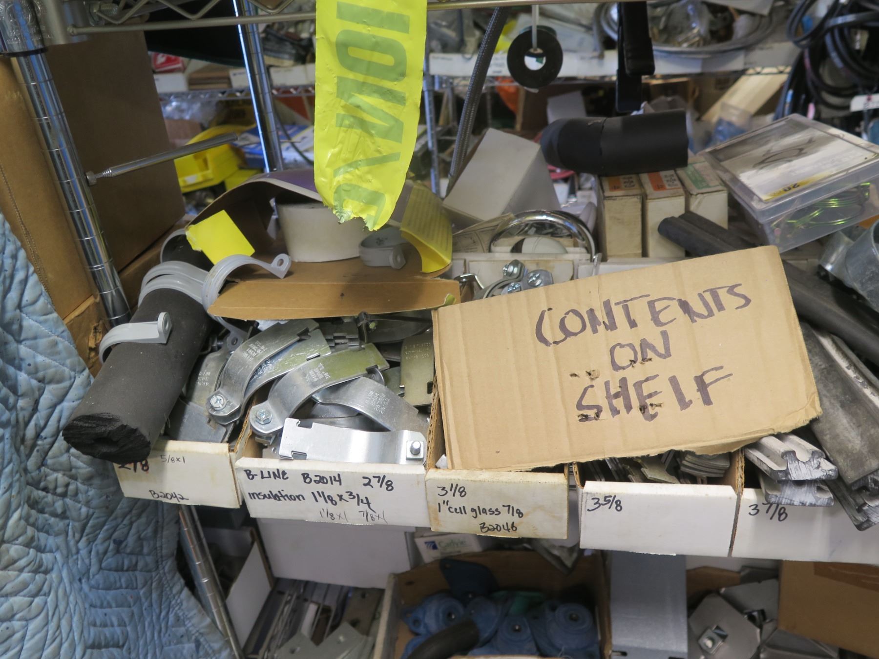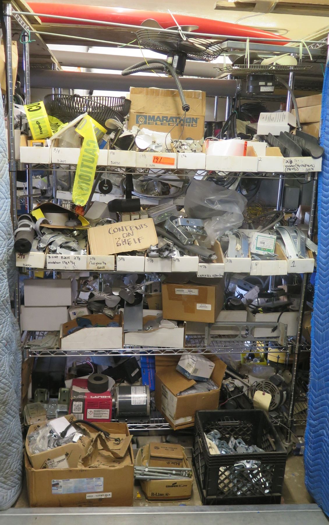 Contents of Shelf: Hardware, Clamps, Marathon Motor, Hilti Putty Pad, etc (Shelf not included)