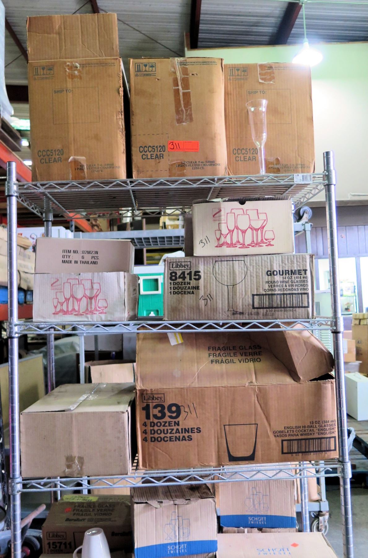 Contents of Shelf - Libbey 139 Glasses, Champagne Flutes, Coffee Cups etc
