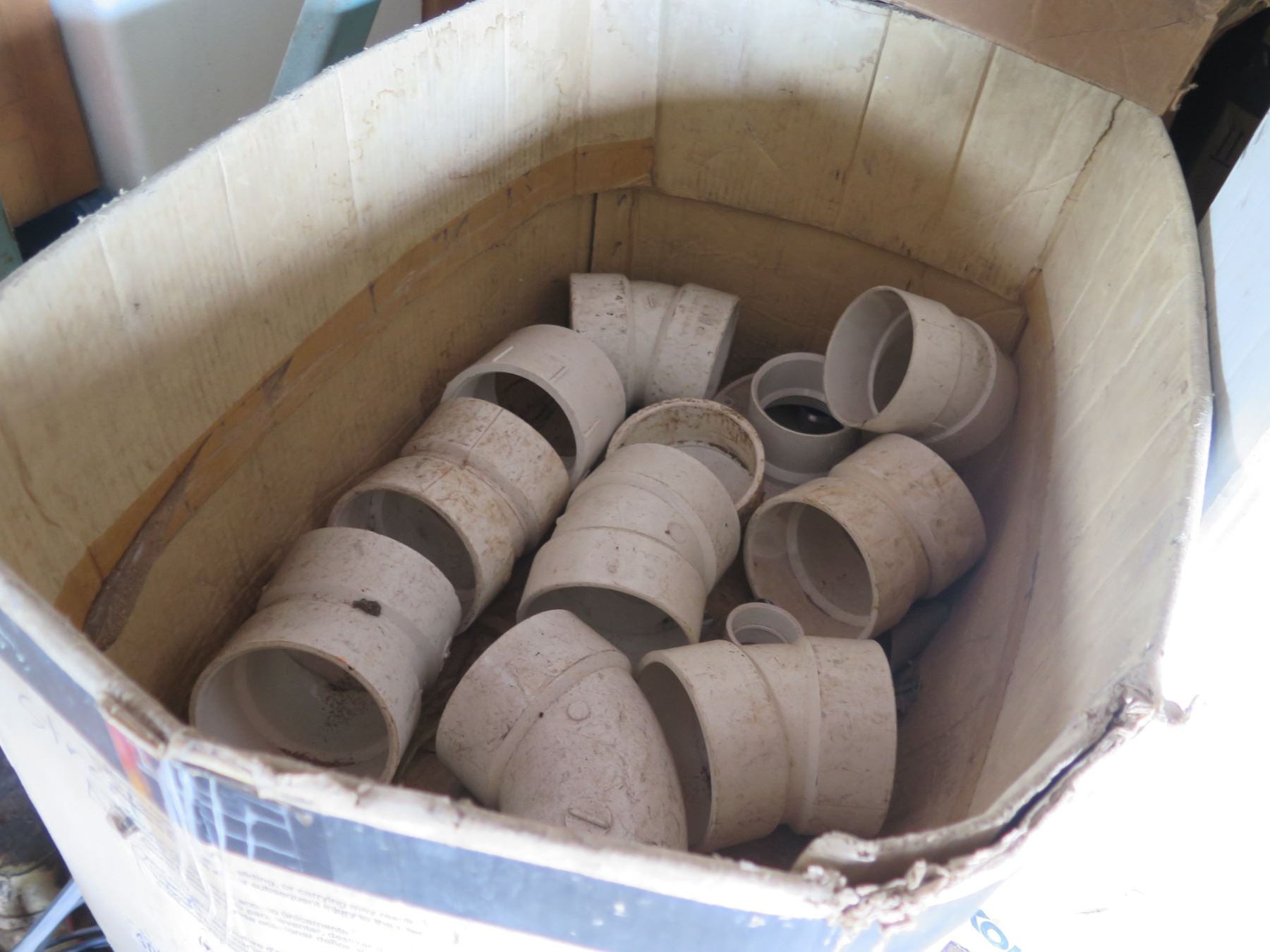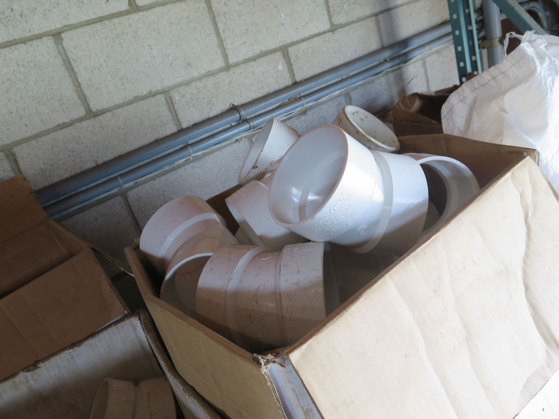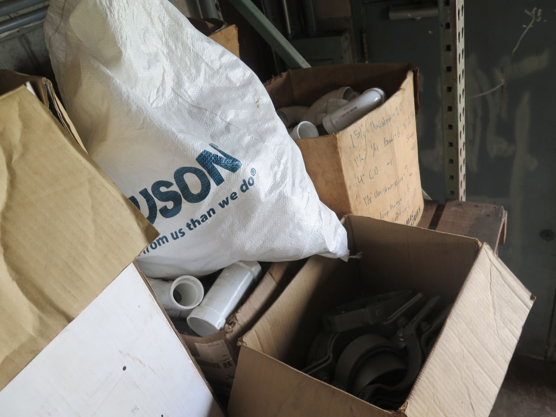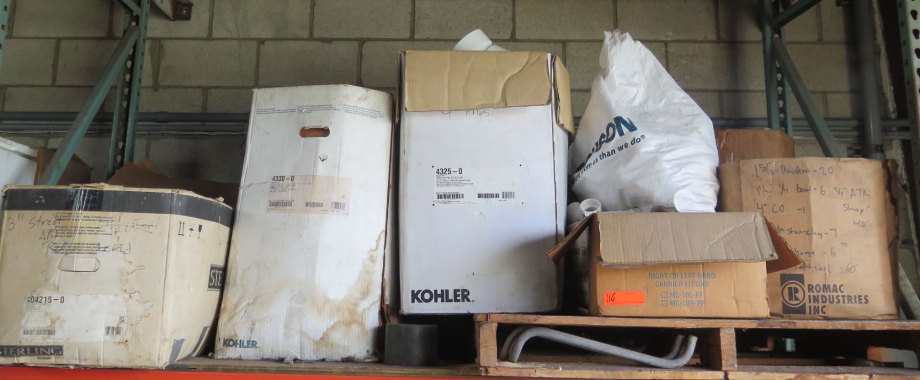 Contents of Shelf: Pipe Lengths, Fittings, Elbows, etc. Everything will appear the way they do in these pictures, so buyer must bring boxes or containers for these items, as well as helpers to assist in the physical handling of the various parts and components.