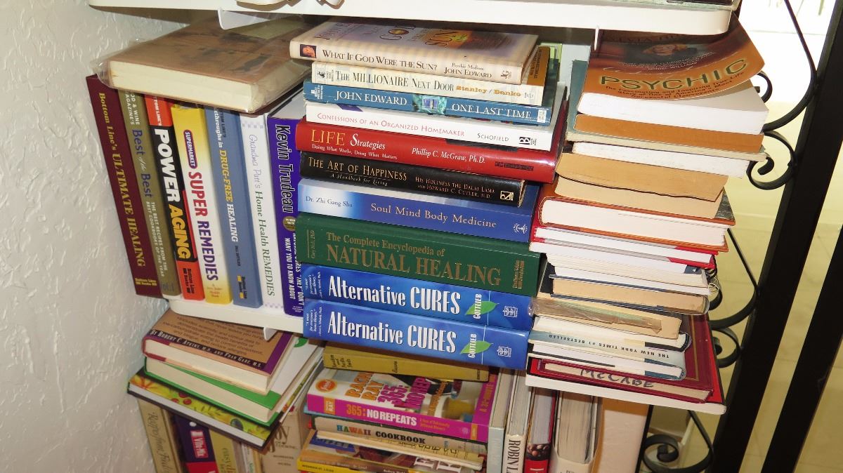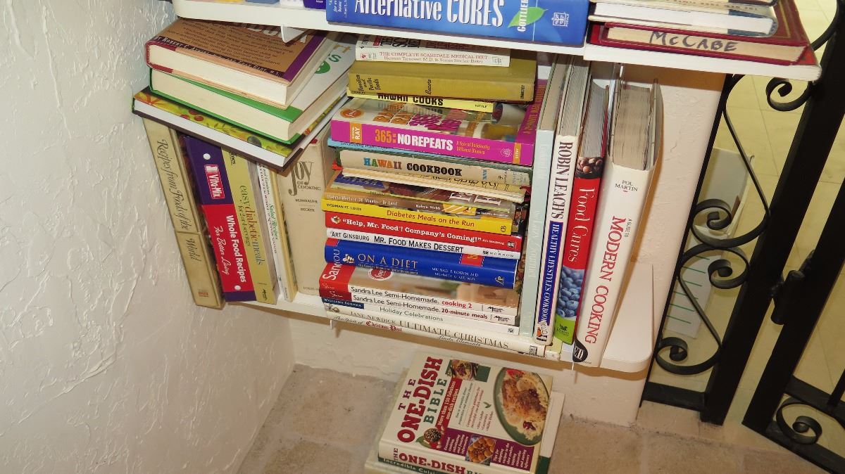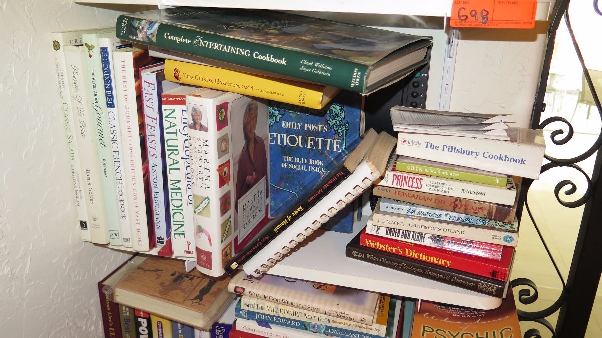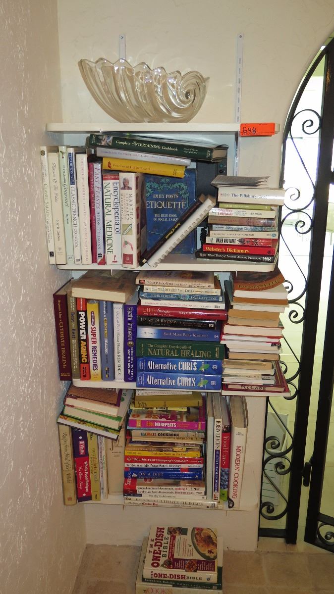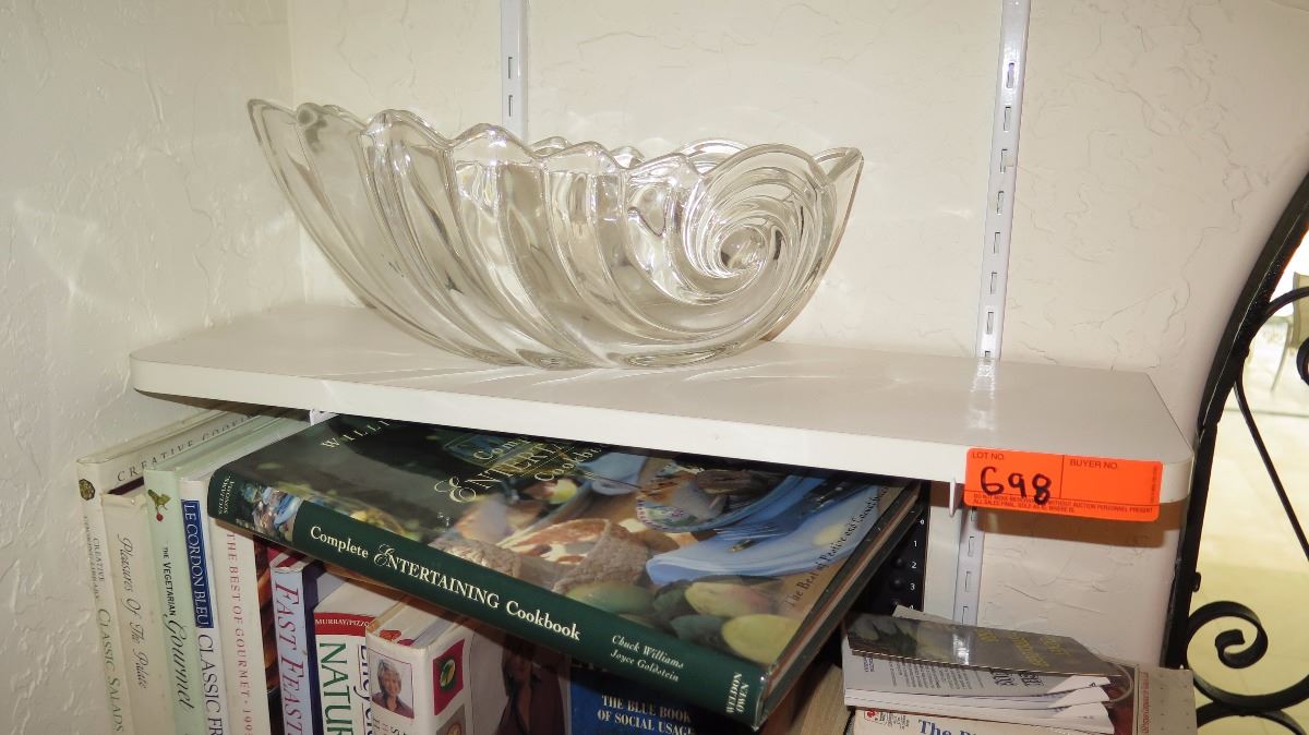 Contents of Shelves: Misc. Books, Glass Bowl, etc.