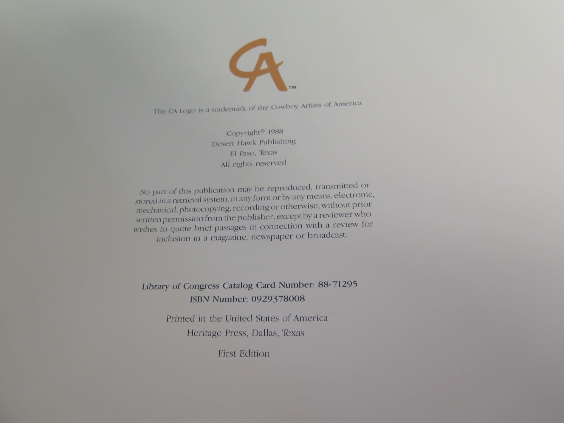 Cowboy Artists of America Book w/ Dedication to Jim Nabors