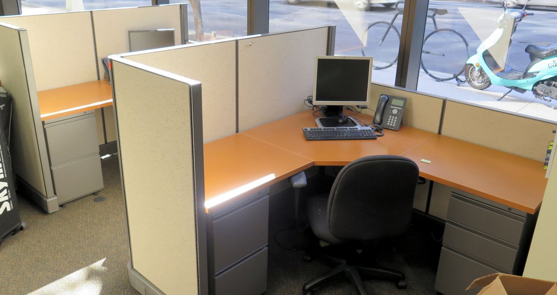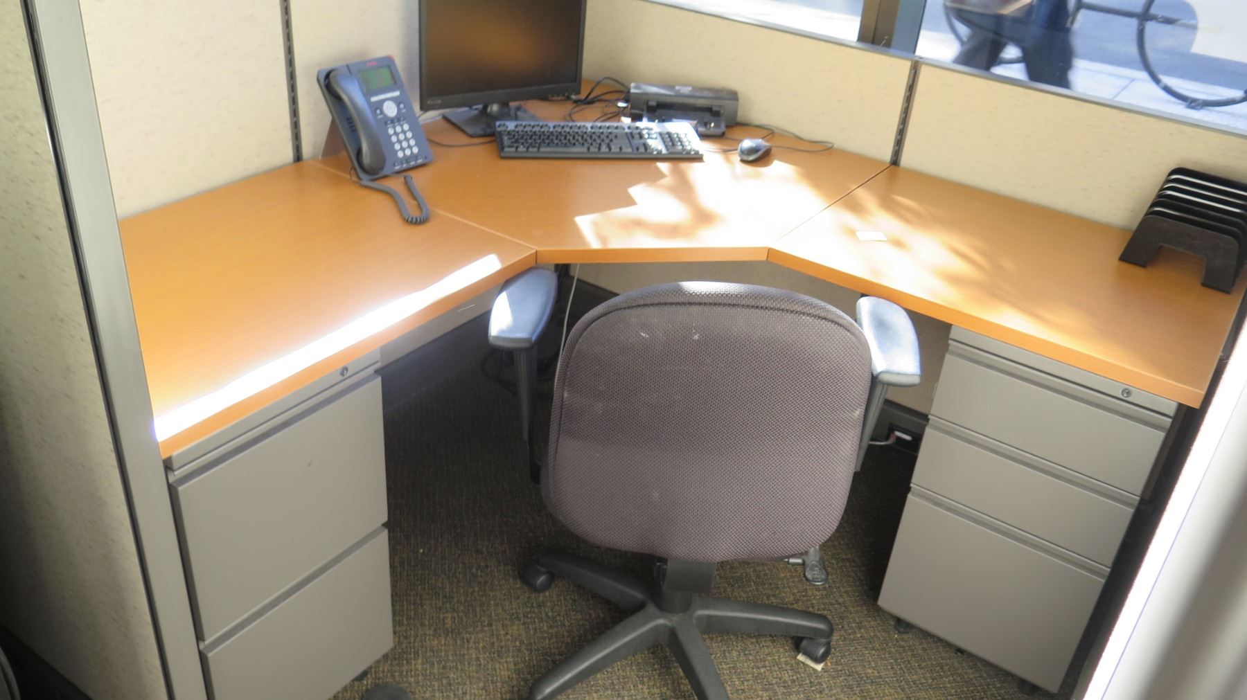 Cubicle System w/ 2 Desks, File Cabinets, 2 Office Chairs. Buyer will be responsible for disassembling and removing all purchased items in this auction. Buyer must bring own tools, carts, etc. Loadout Thursday, May 9 to Saturday May 11. Detailed directions to building’s loading zone and designated load-out areas will be provided.