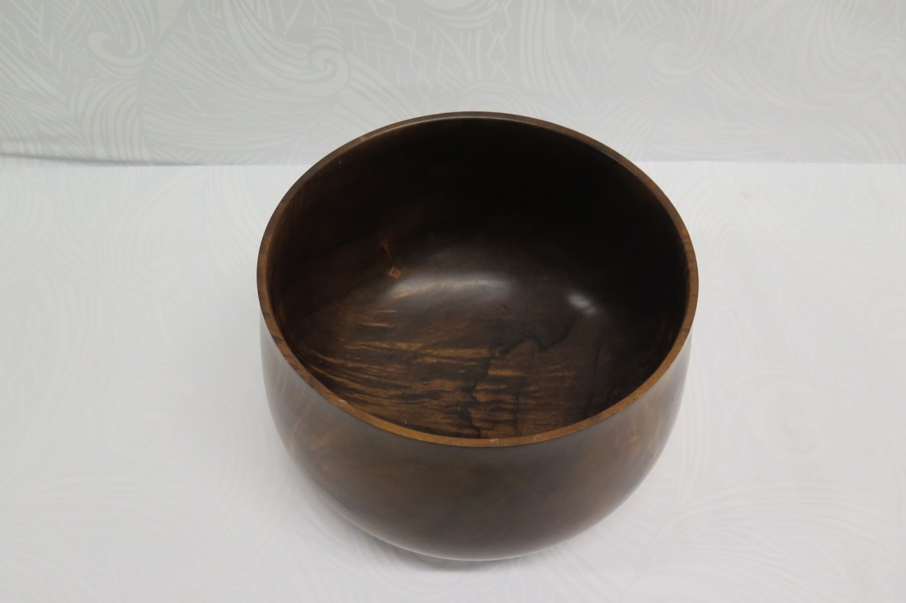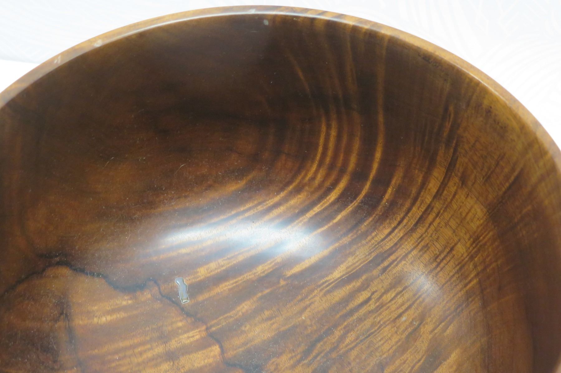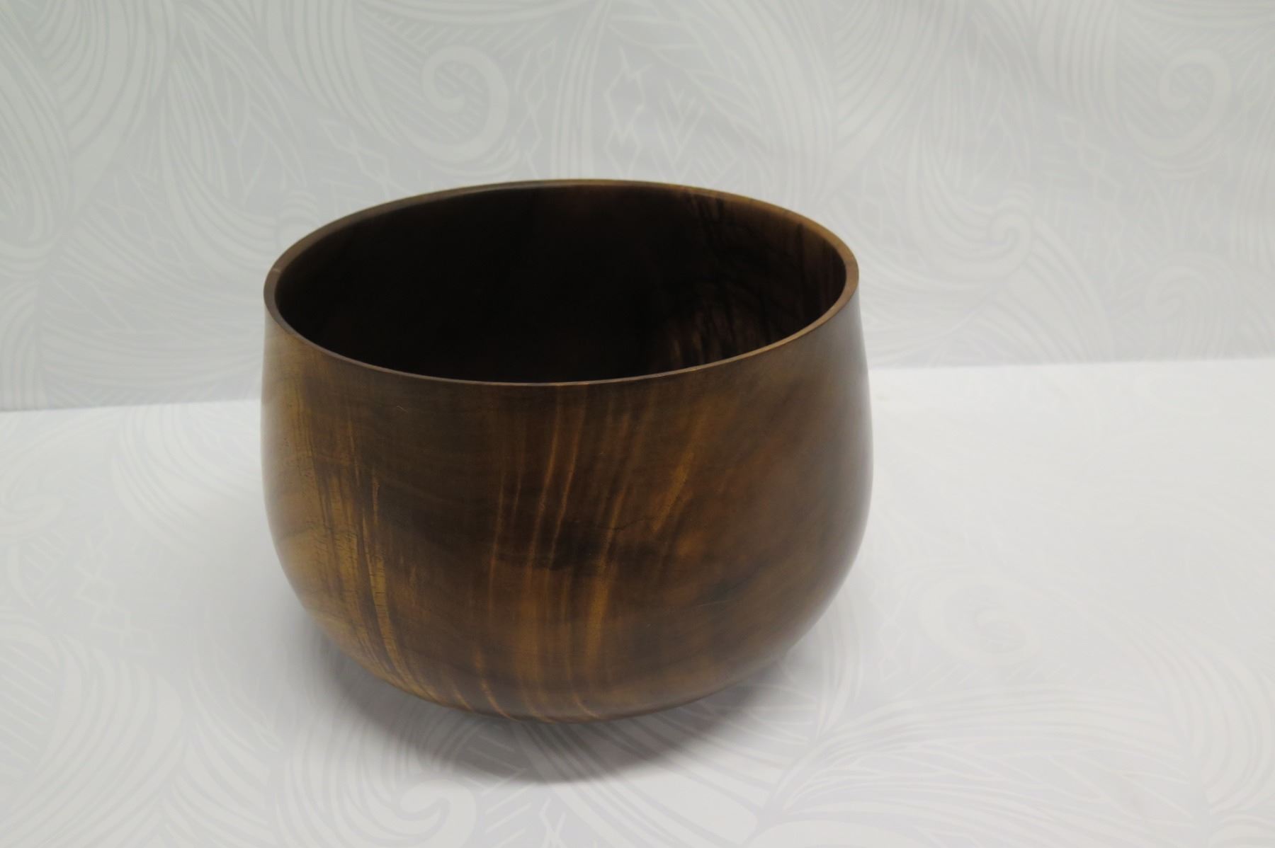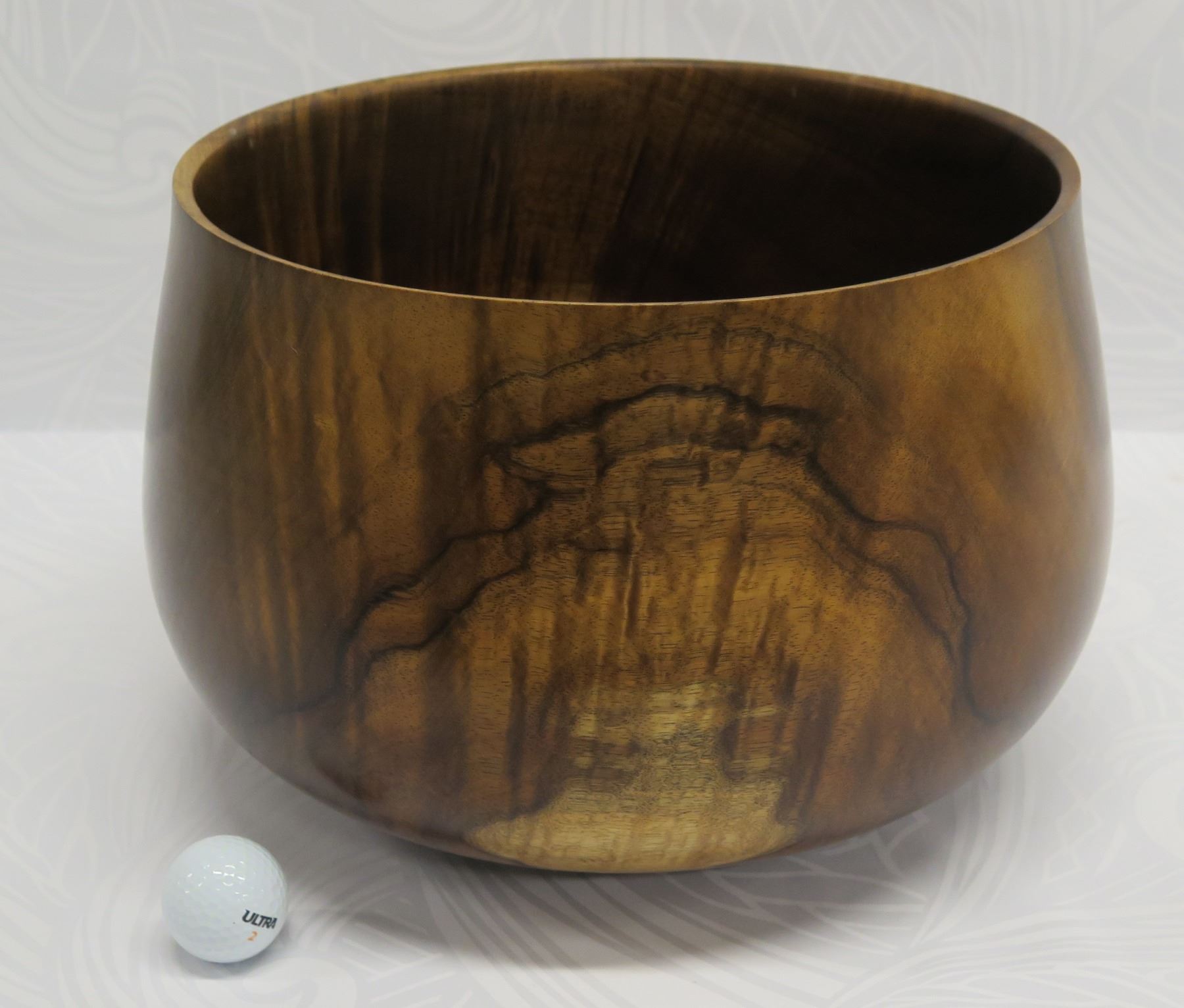 Curly Koa Wood Bowl, Artist Robert W. Butts, Approx. 13" Dia (top), 9.5" Tall