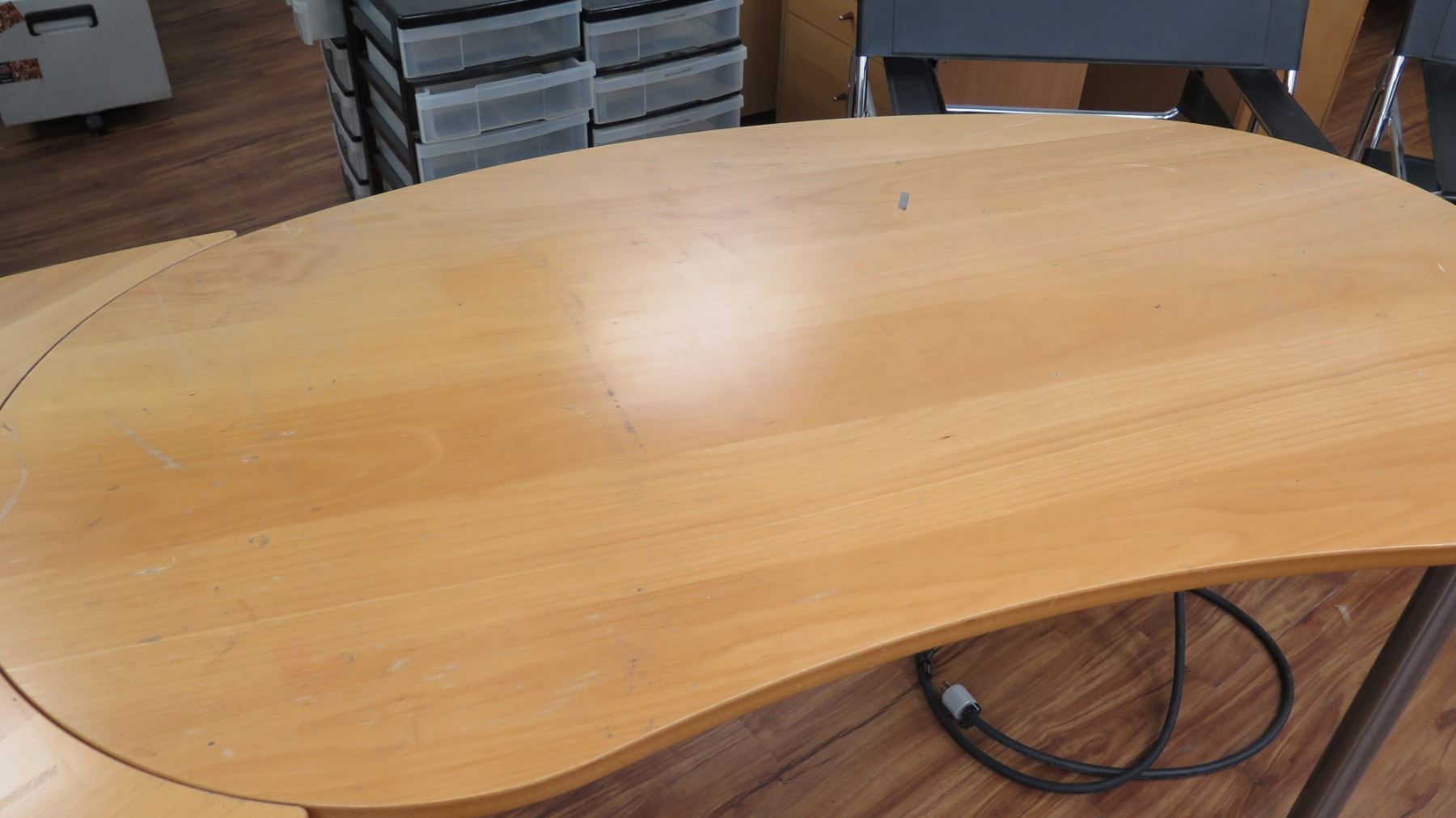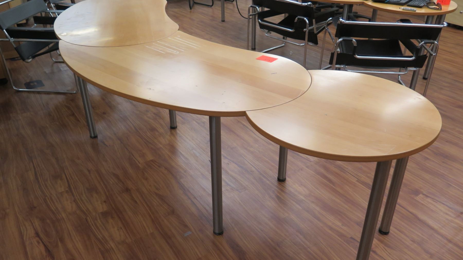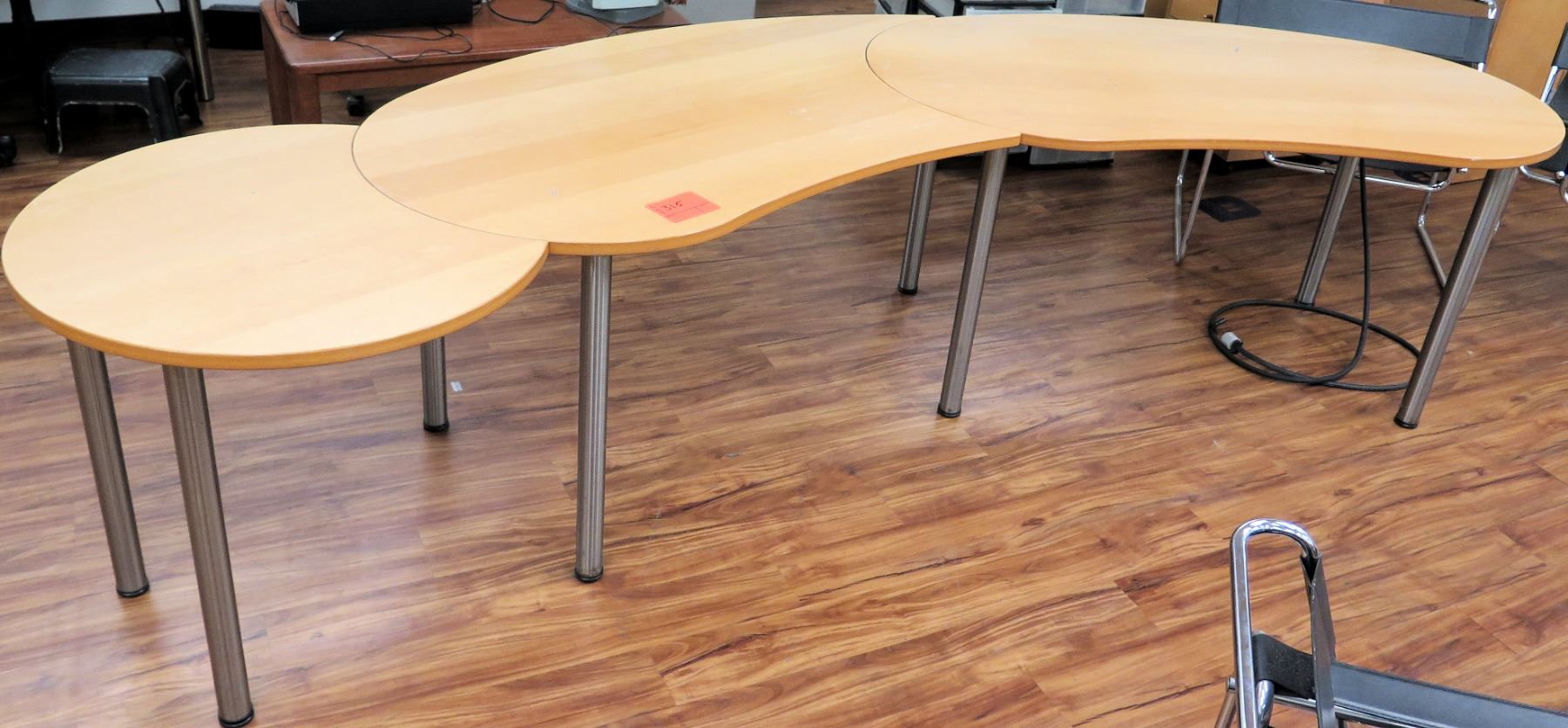 Curved Wood Shop Wooden Table w/ Metal Legs 3 Sections