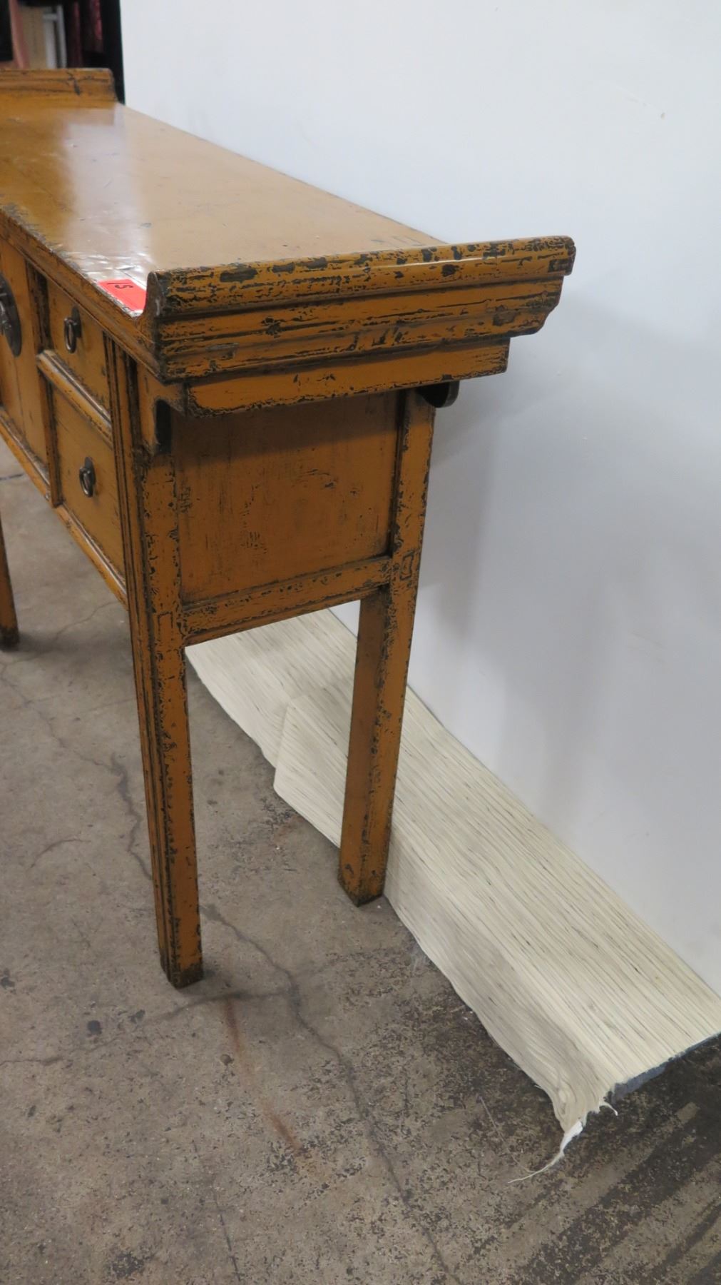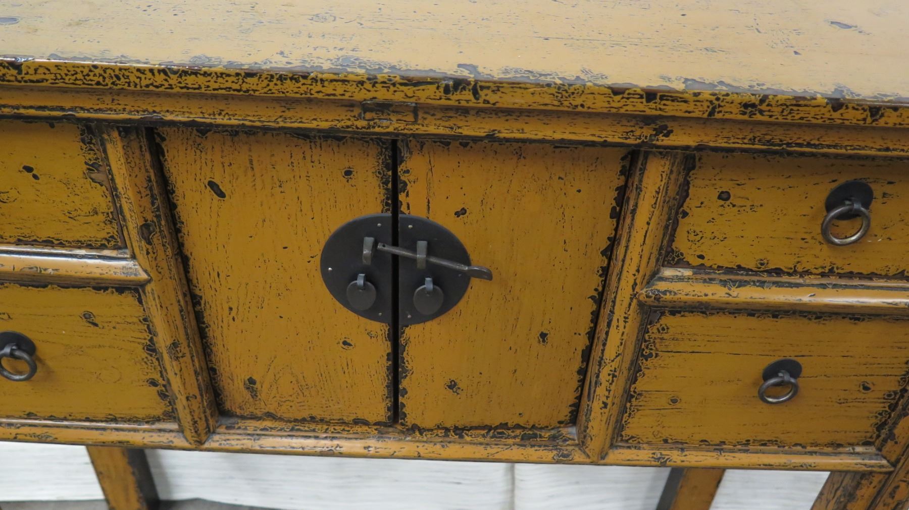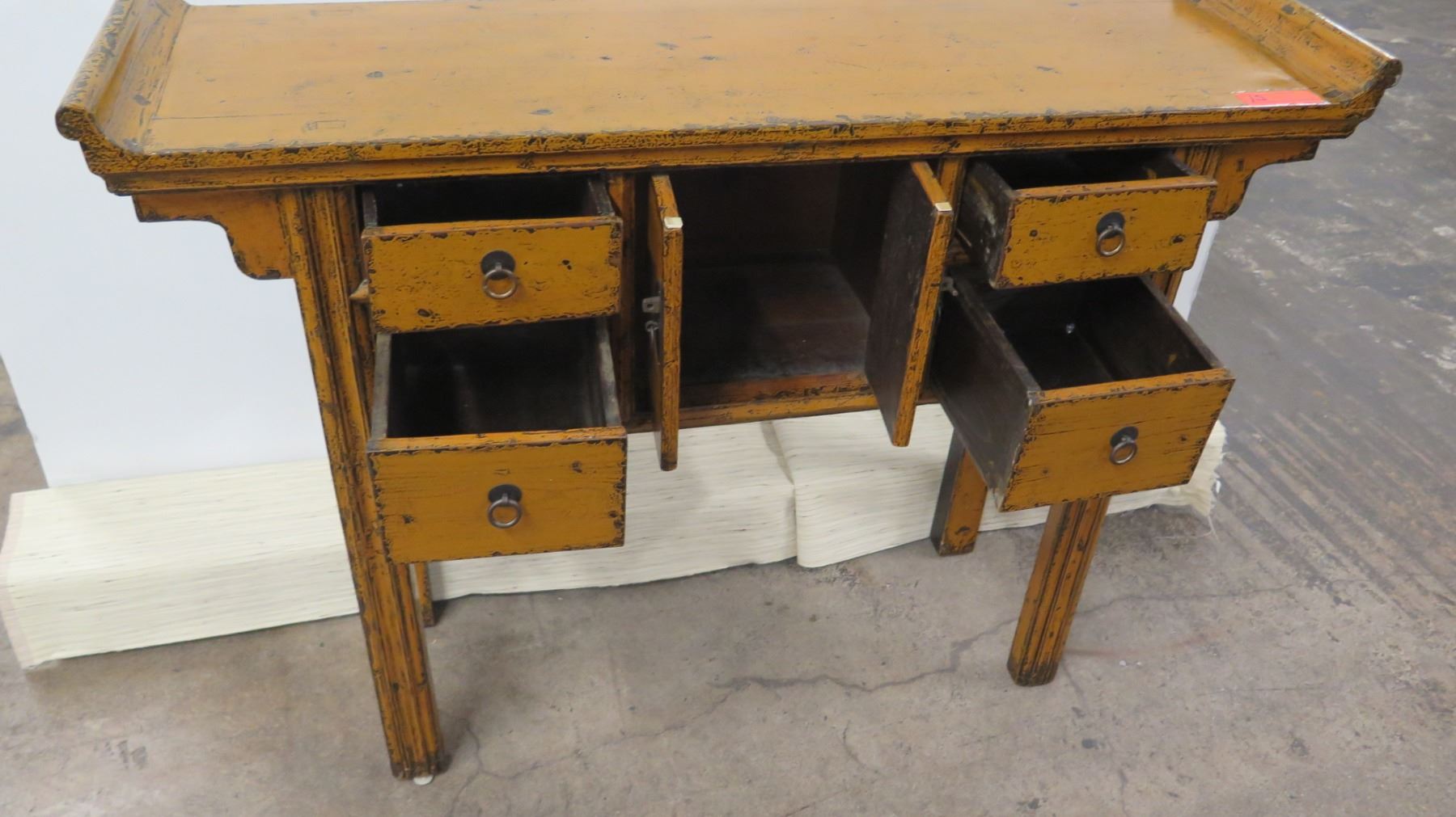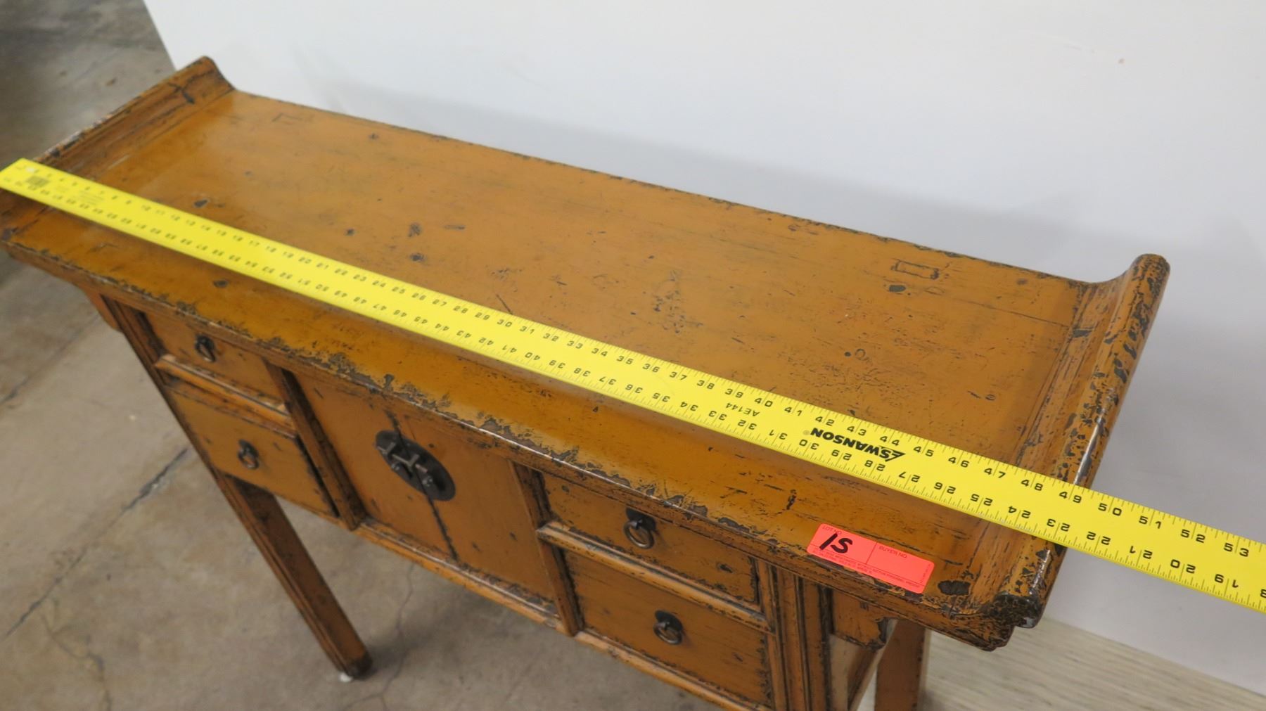 Curved Wooden Asian Entry Table w/ 2 Door Cabinet & 4 Drawers 49" x 15" x 37" Tall