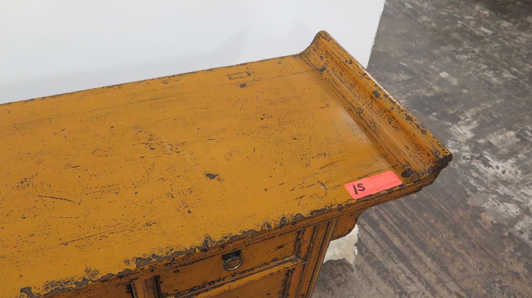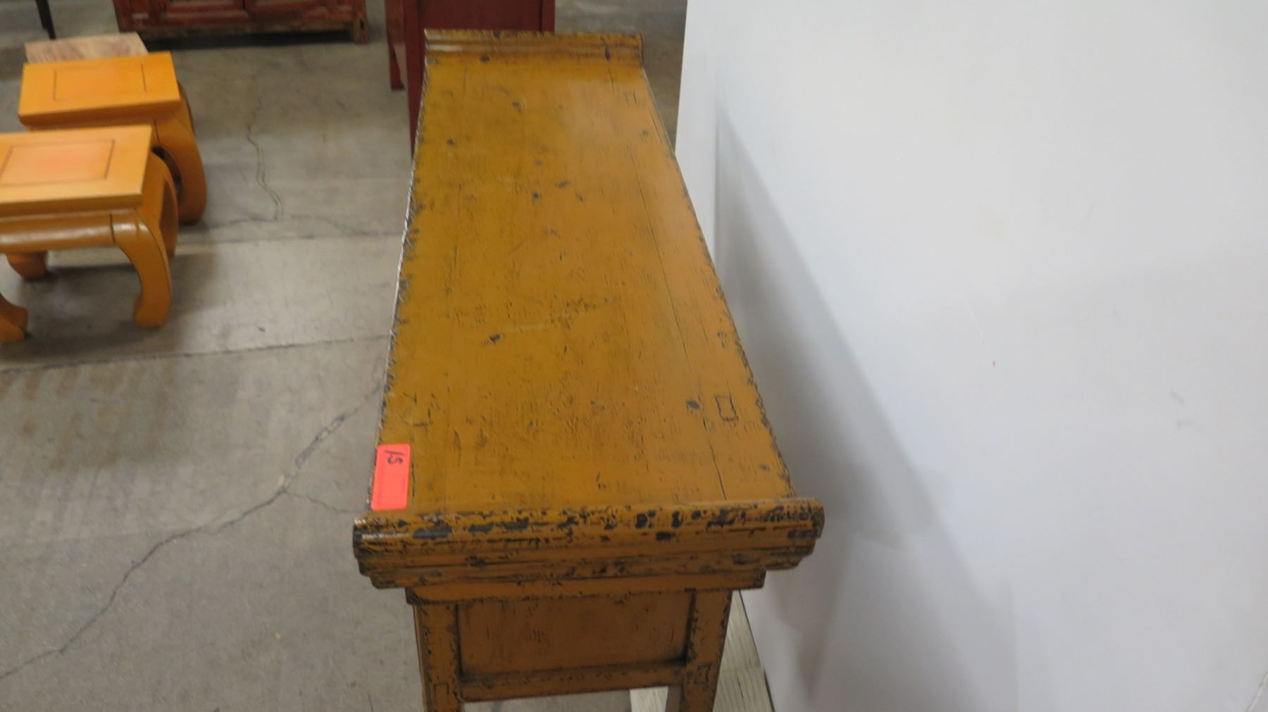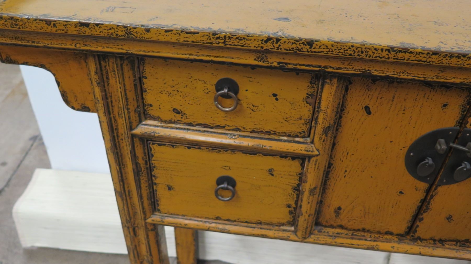 Curved Wooden Asian Entry Table w/ 2 Door Cabinet & 4 Drawers 49" x 15" x 37" Tall