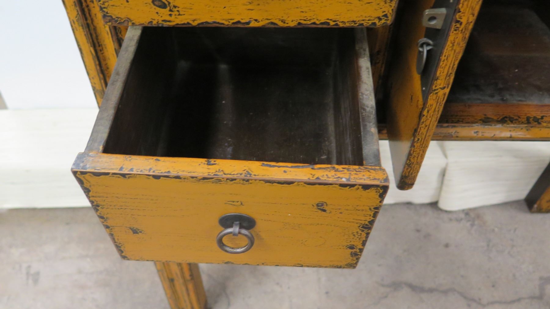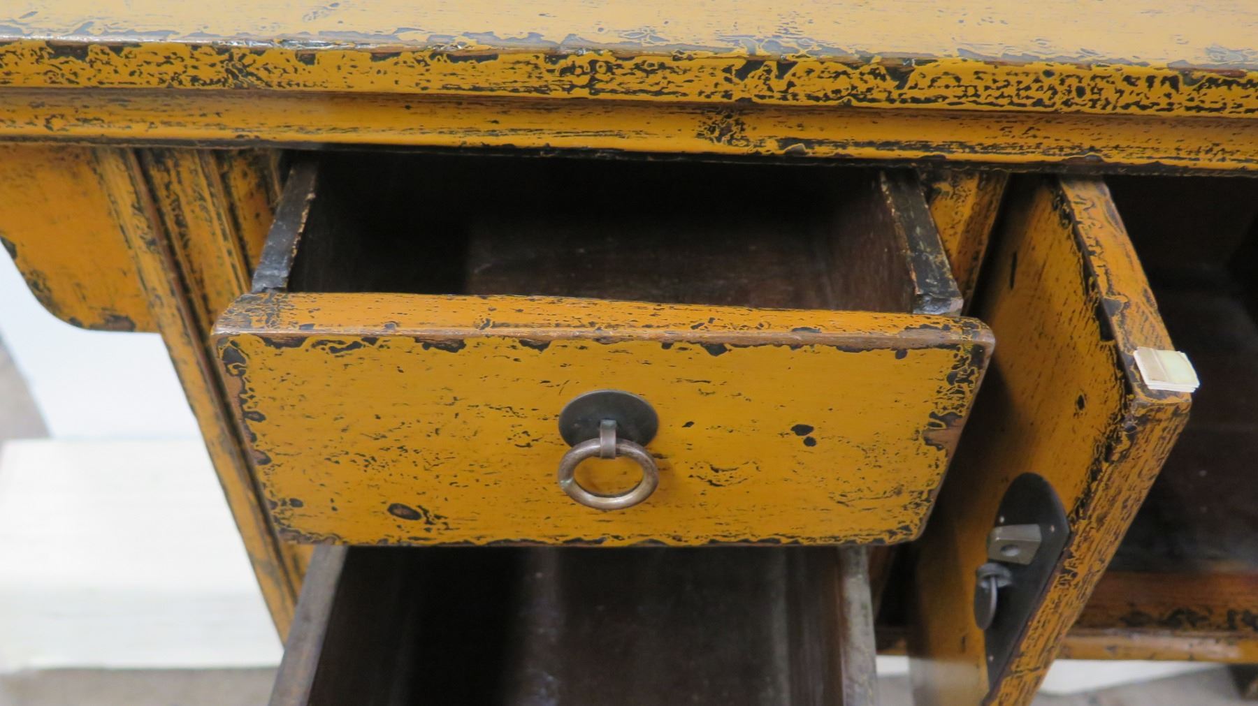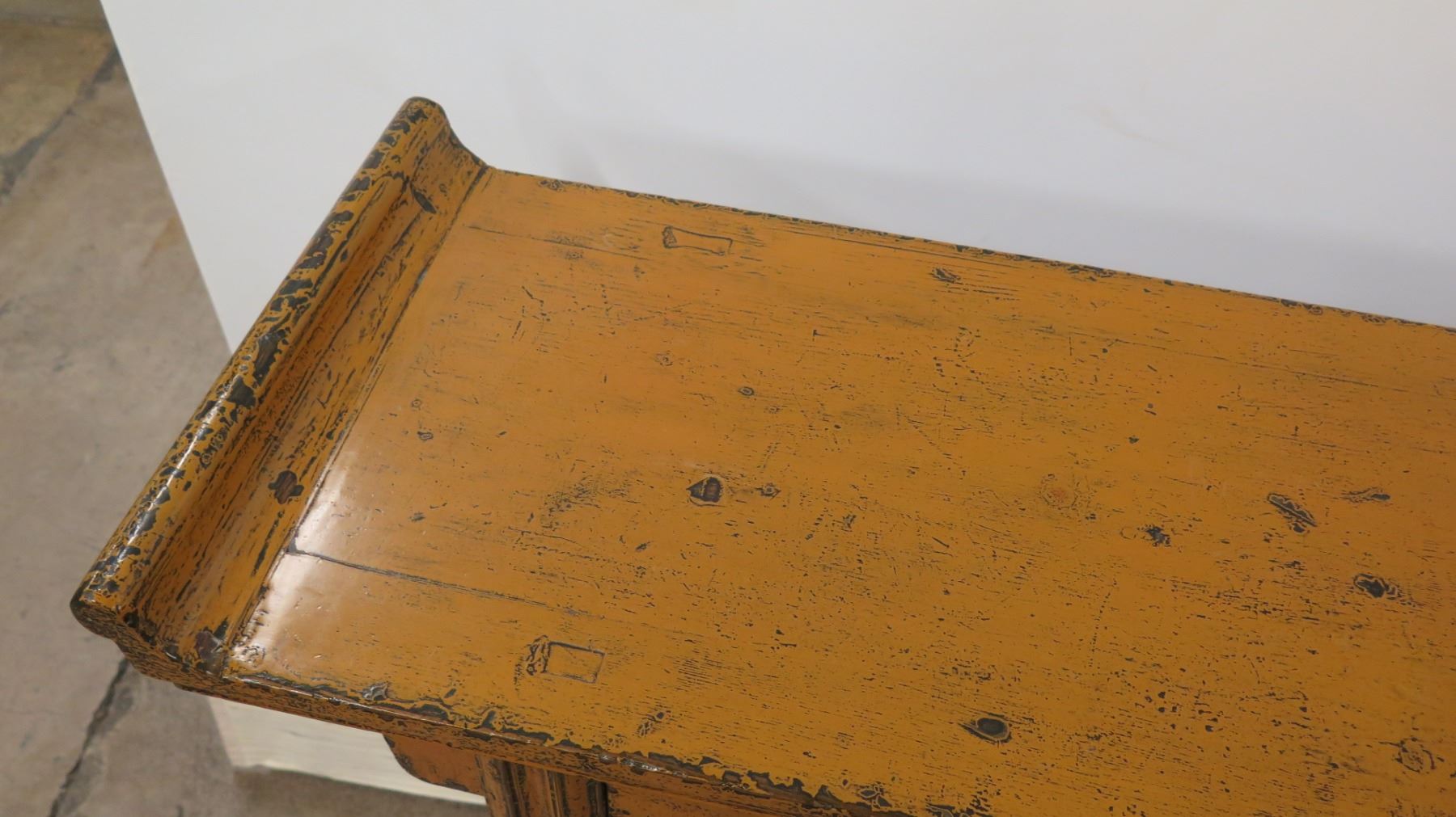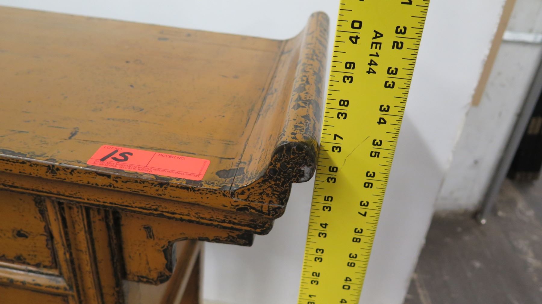 Curved Wooden Asian Entry Table w/ 2 Door Cabinet & 4 Drawers 49" x 15" x 37" Tall