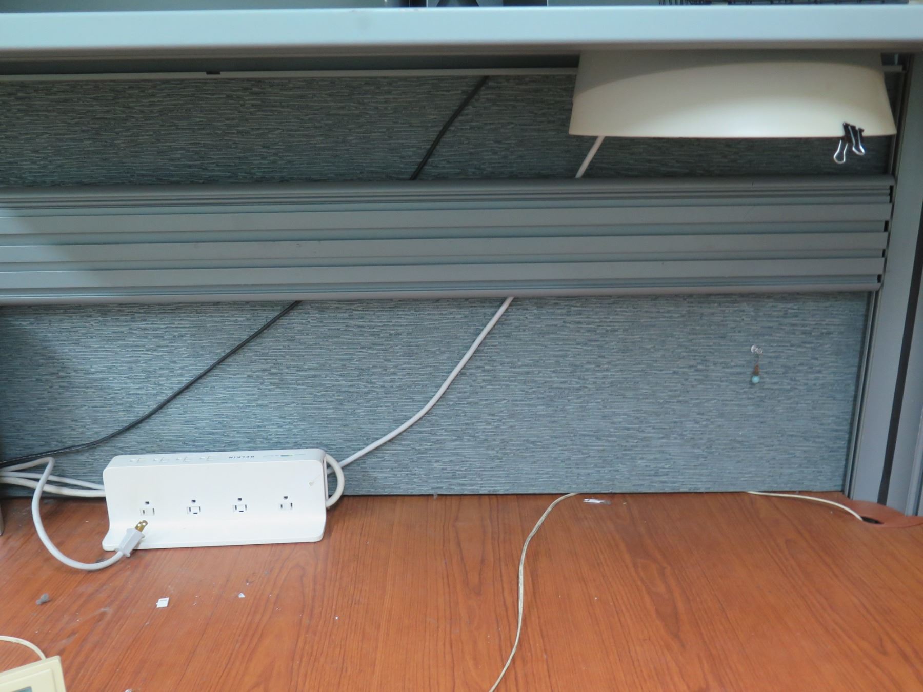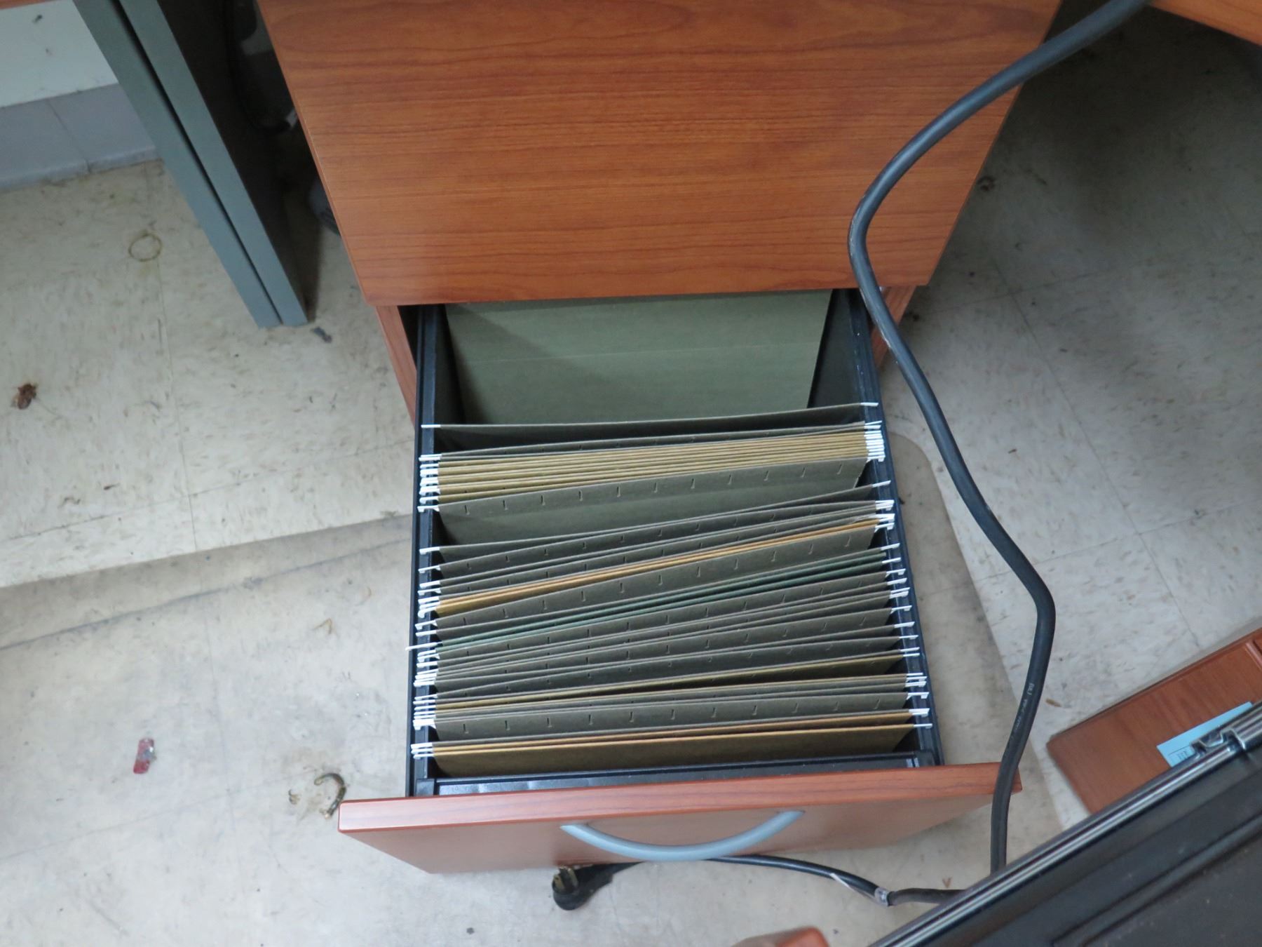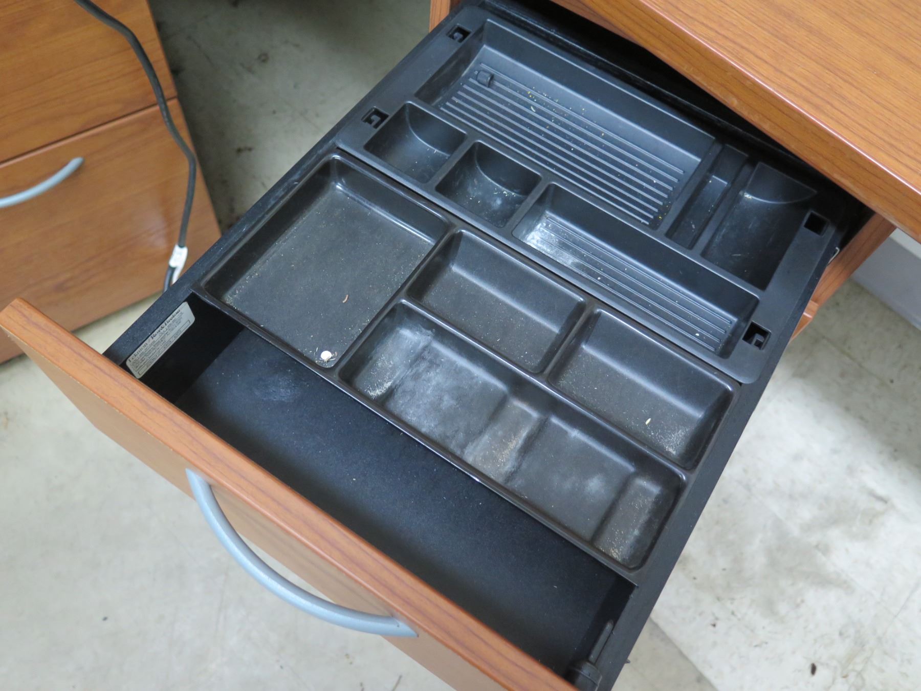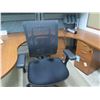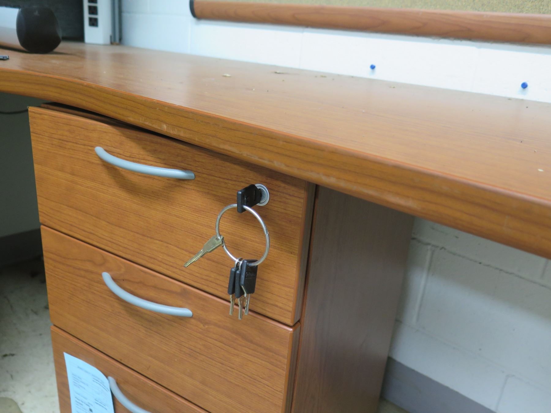 Curved Wooden Desk 83" x 108" x 29"H w/ Top Hutch Shelf, Undercabinets & Chair