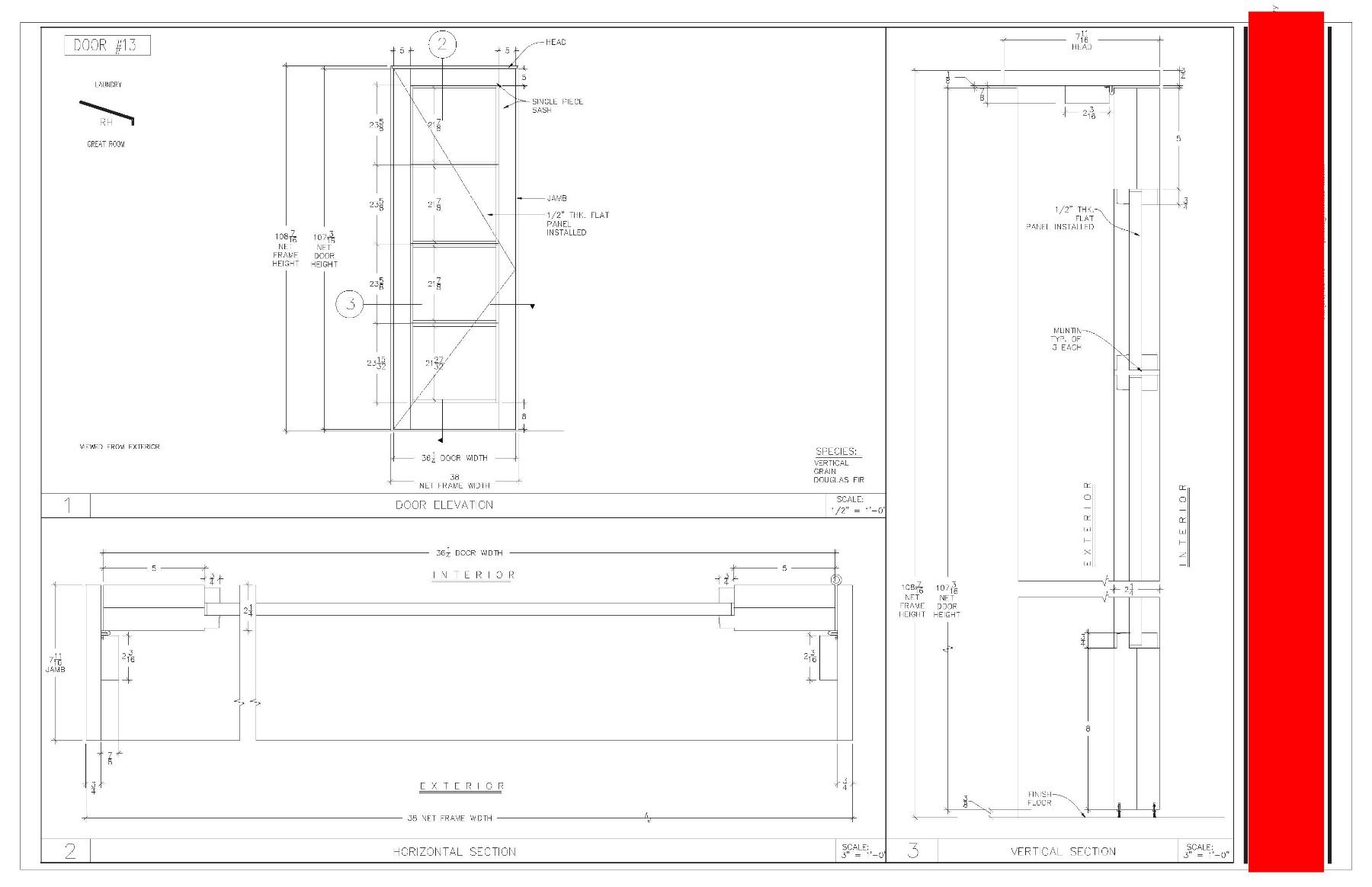 Door Group 13 consists of 1 panel. Sizes are approximate. See photos of drawings.