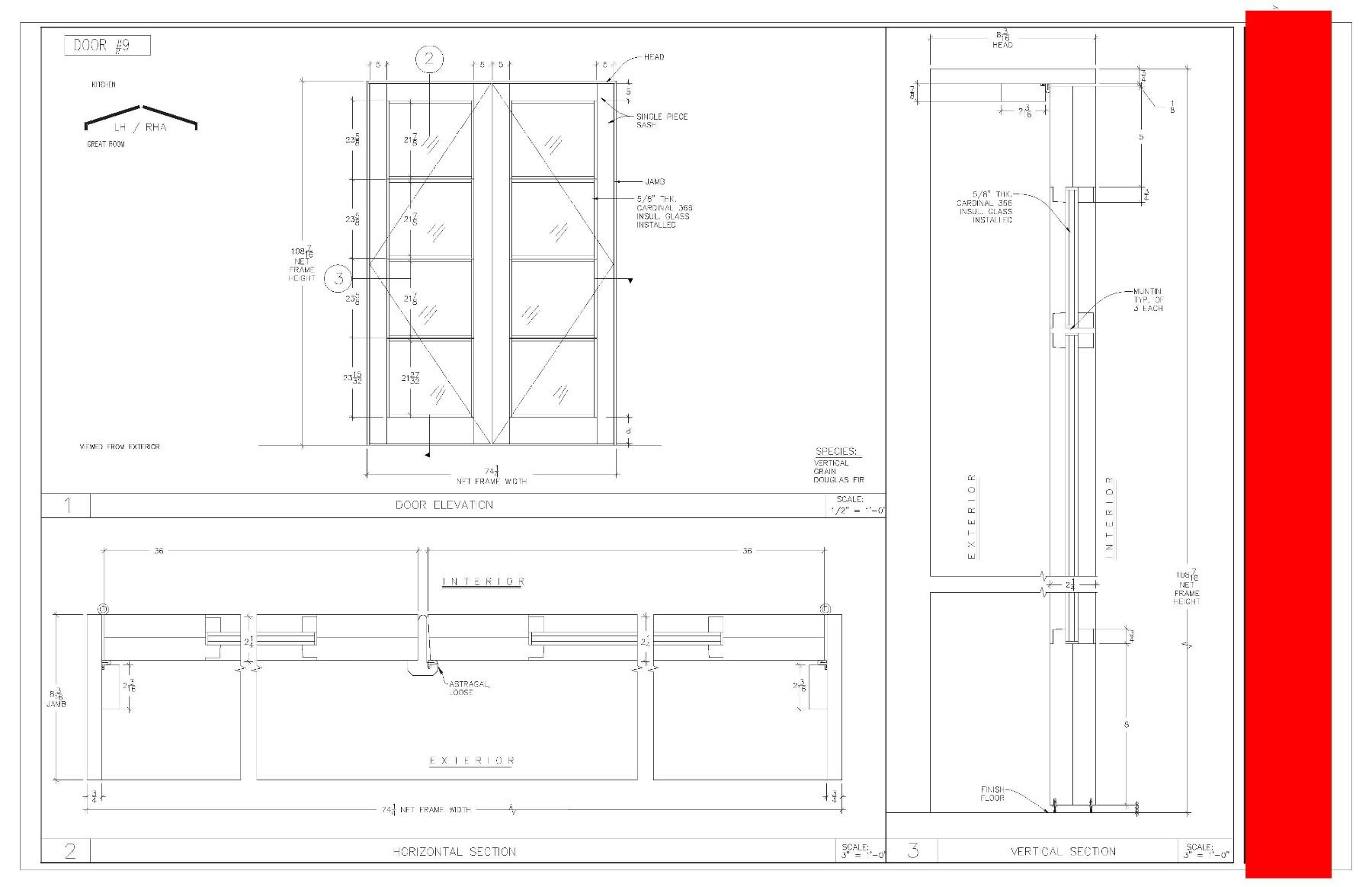 Door Group 9 consists of 2 panels. Sizes are approximate. See photos of drawings.