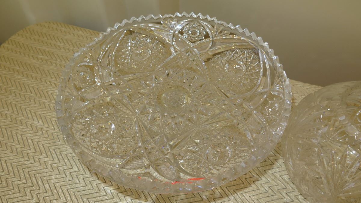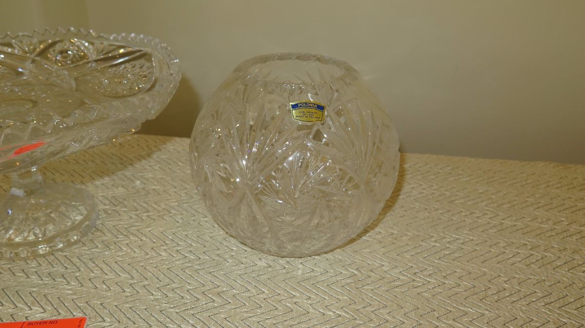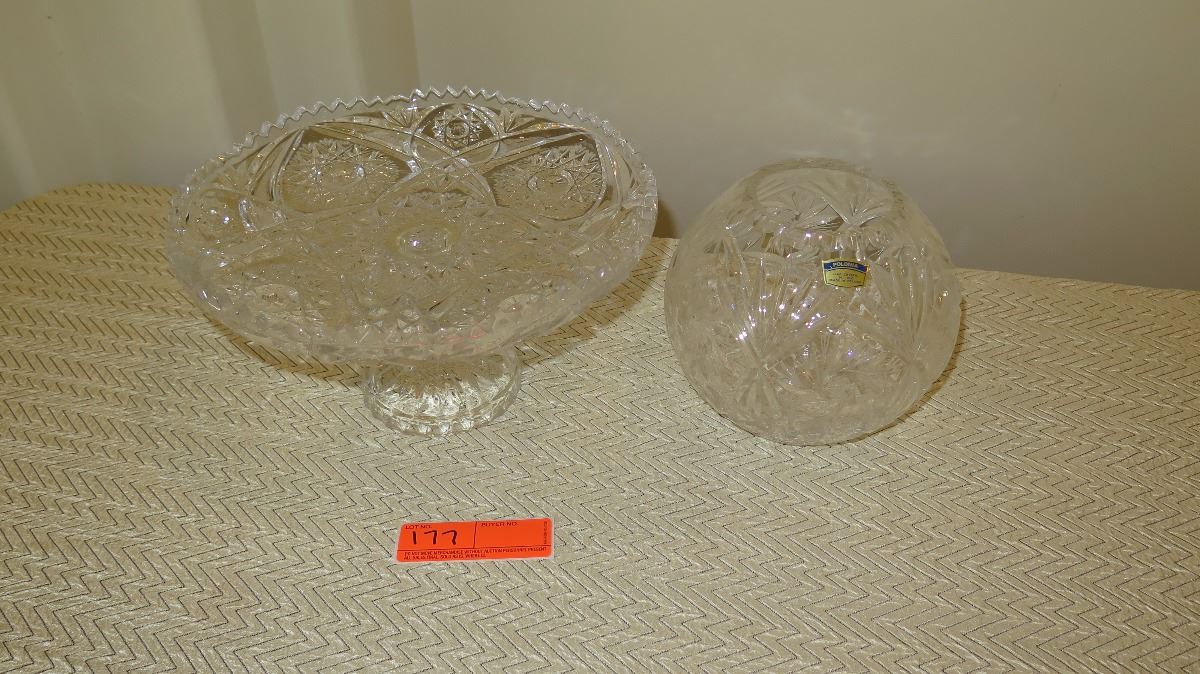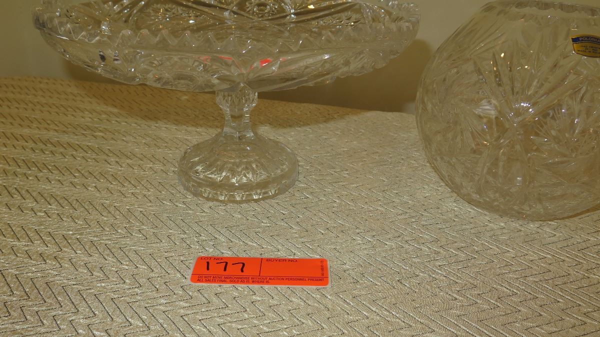 Cut Crystal Stemmed Dessert Tray (approx. 11" dia) and Round Bowl (approx. 6" H)