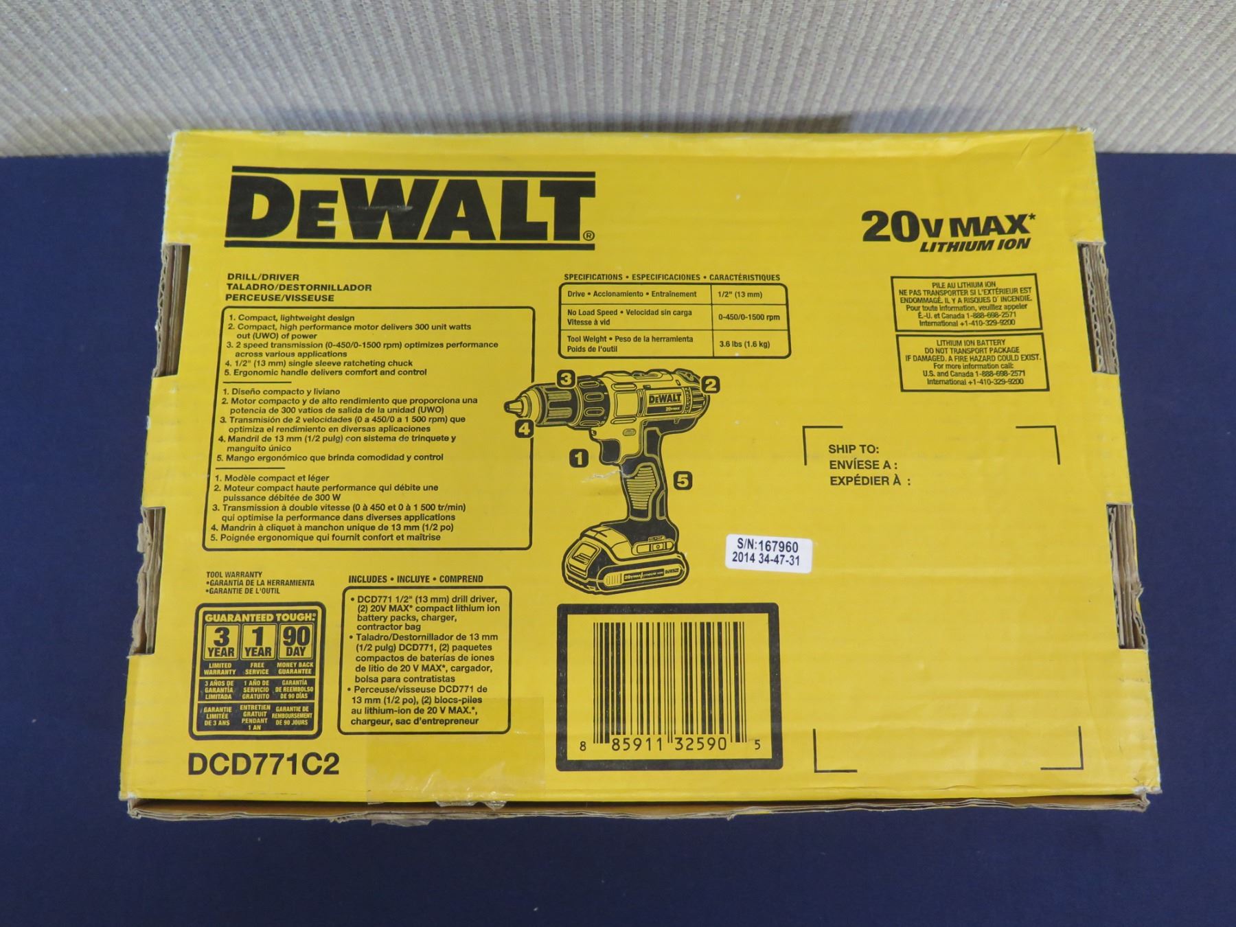 DeWalt DCD771C2 Compact Drill/Driver Kit in Box