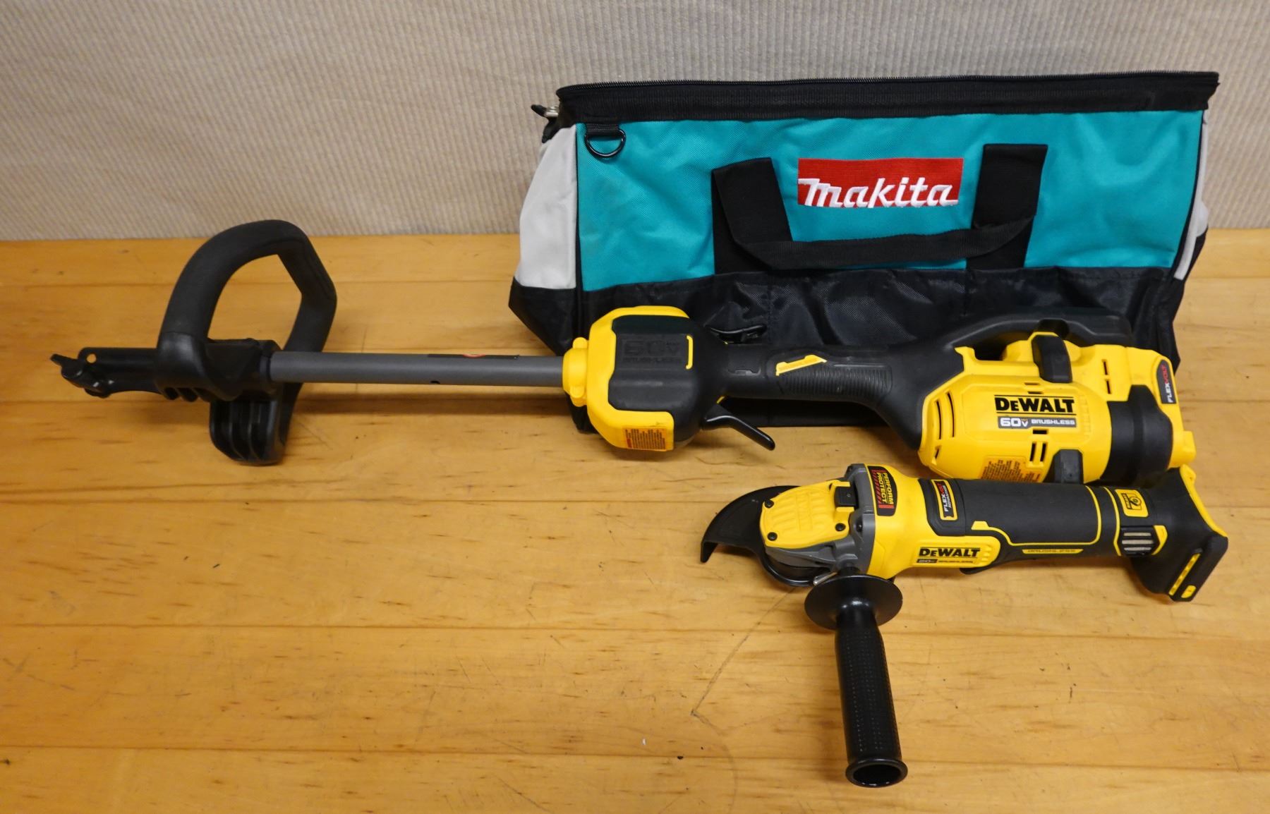 DeWalt DCG416 Grinder, DCST972 Power Head & Makita Bag (condition unknown)