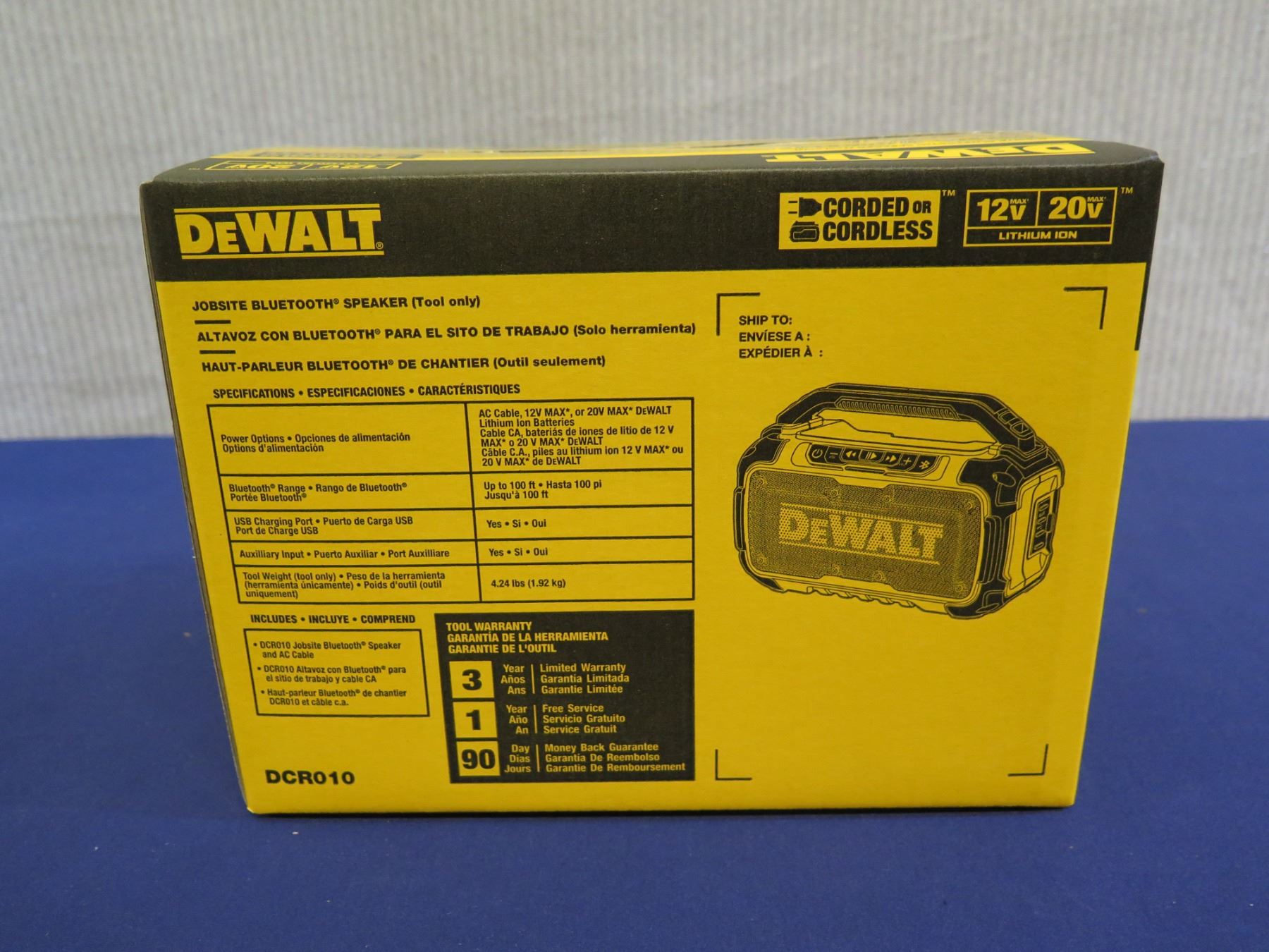 DeWalt DCR010 Jobsite Bluetooth Speaker in Box (Tool Only)