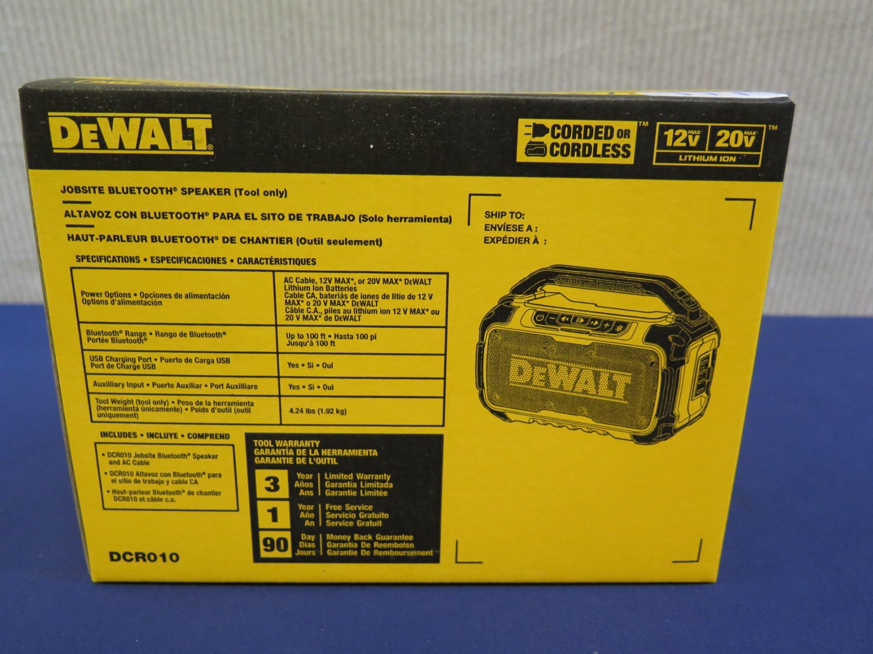 DeWalt DCR010 Jobsite Bluetooth Speaker in Box  (Tool Only)
