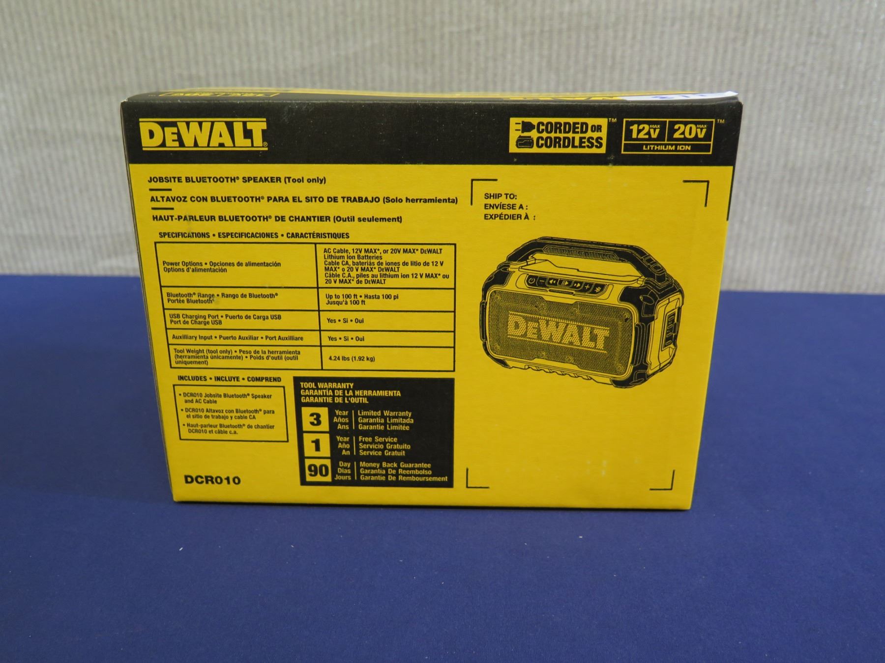 DeWalt DCR010 Jobsite Bluetooth Speaker in Box (Tool Only)