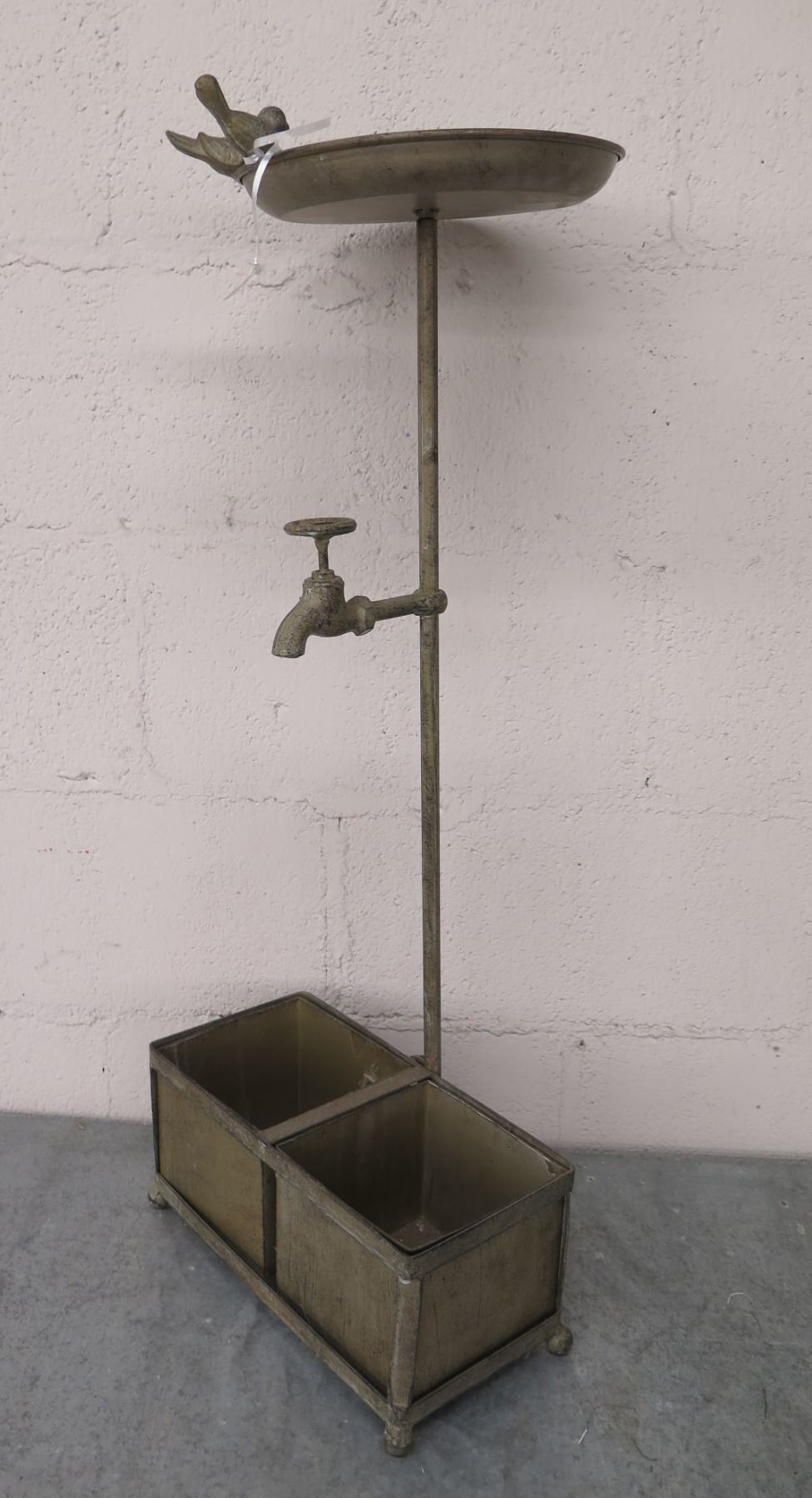 Decorative Bird Bath Display w/ 2 Birds, Spout & Double-Square Base 32" Tall
