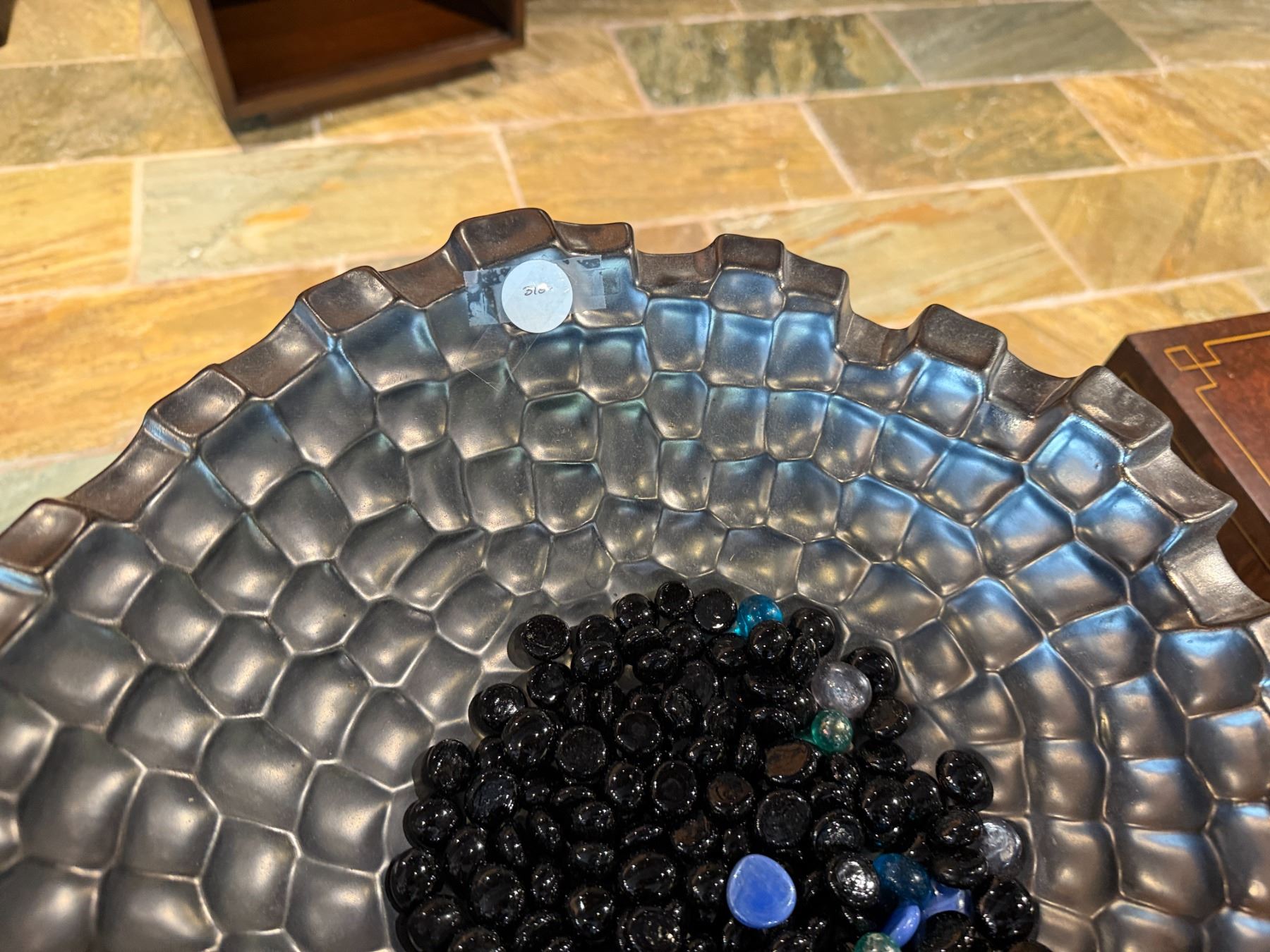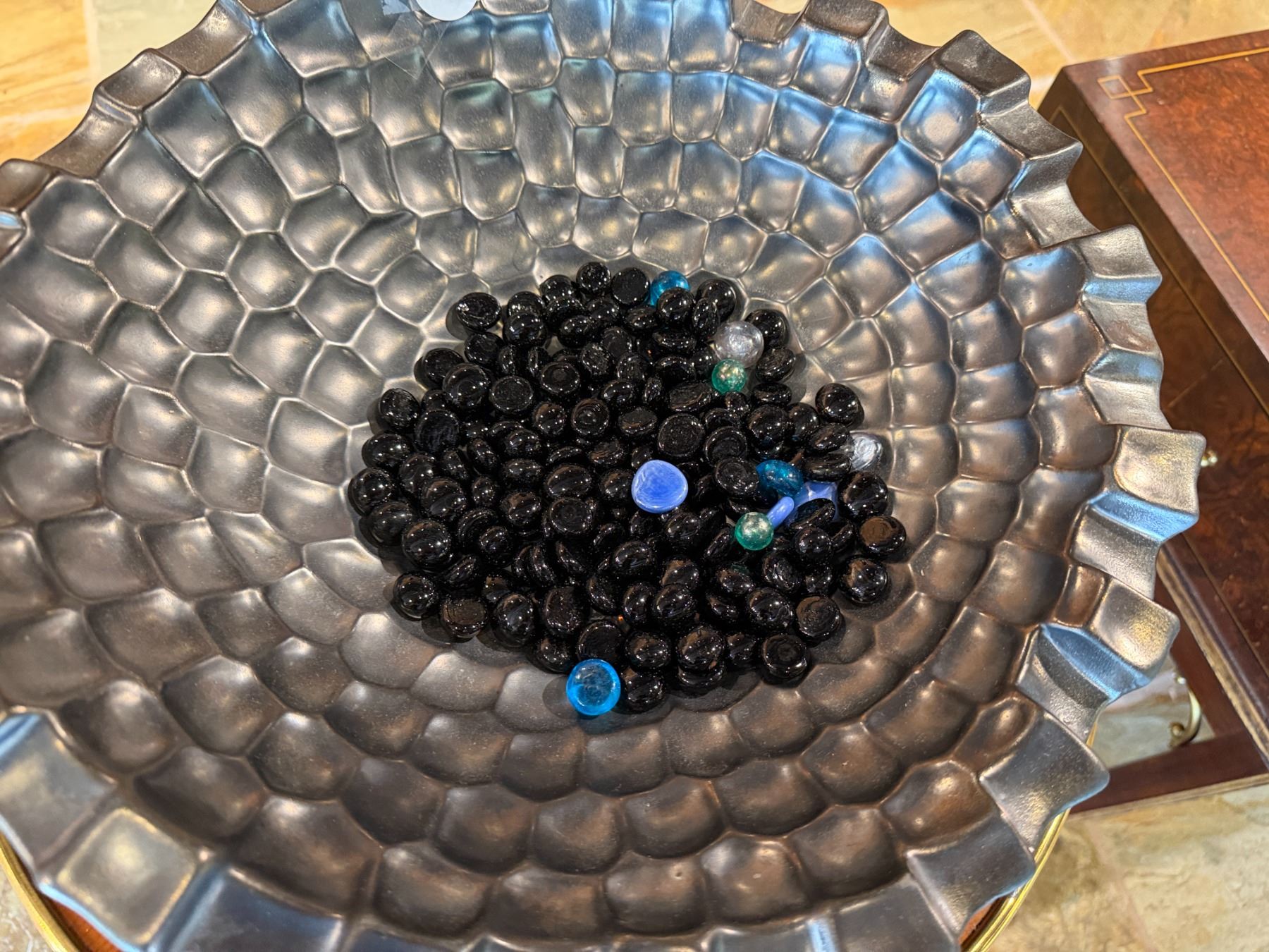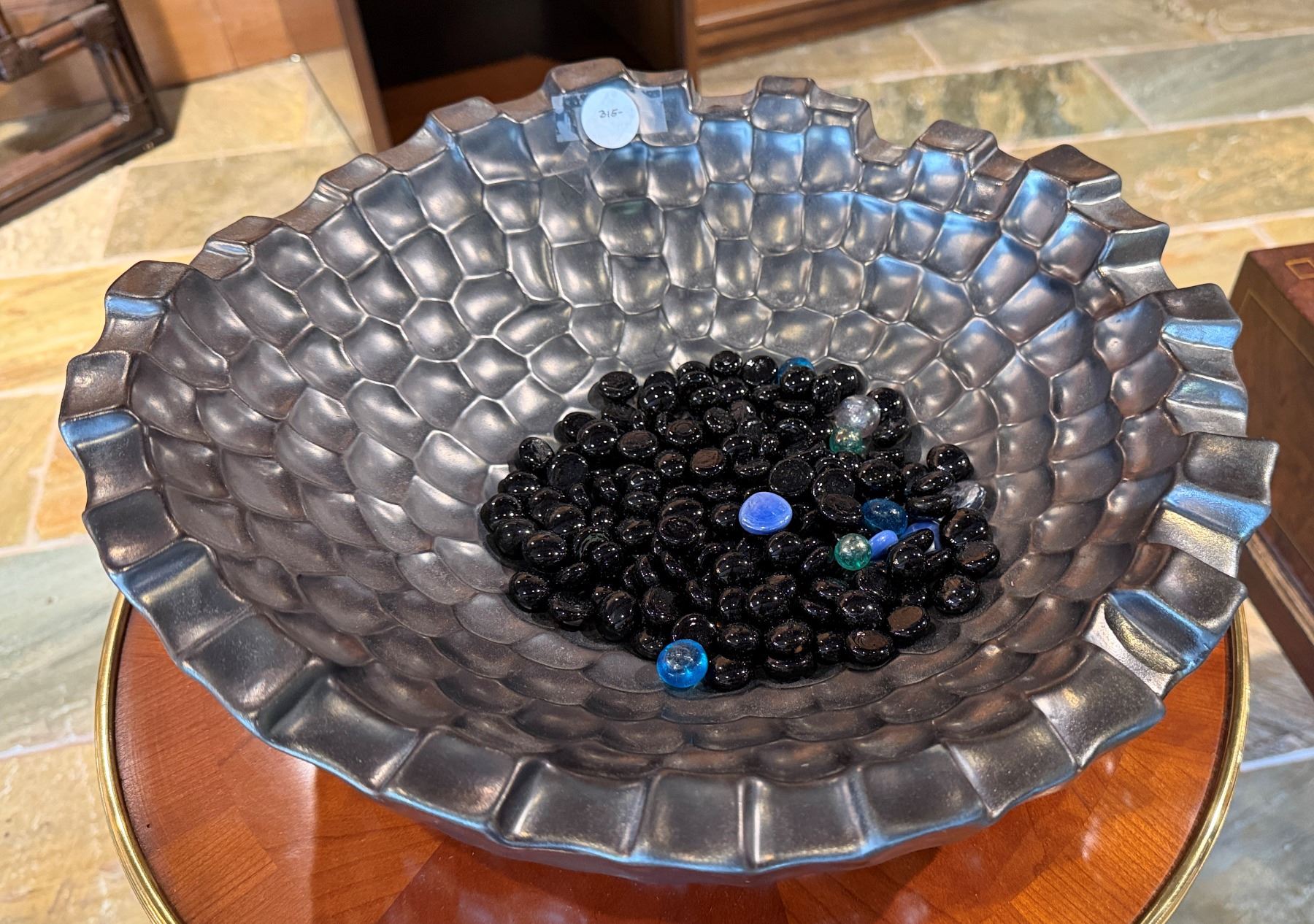 Decorative Bowl w/ Scalloped Design & Multiple Glass Marbles 15" Dia, 5"H