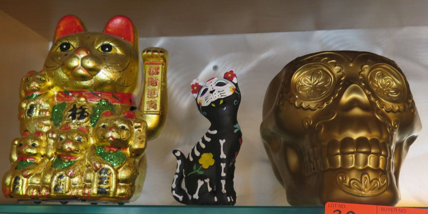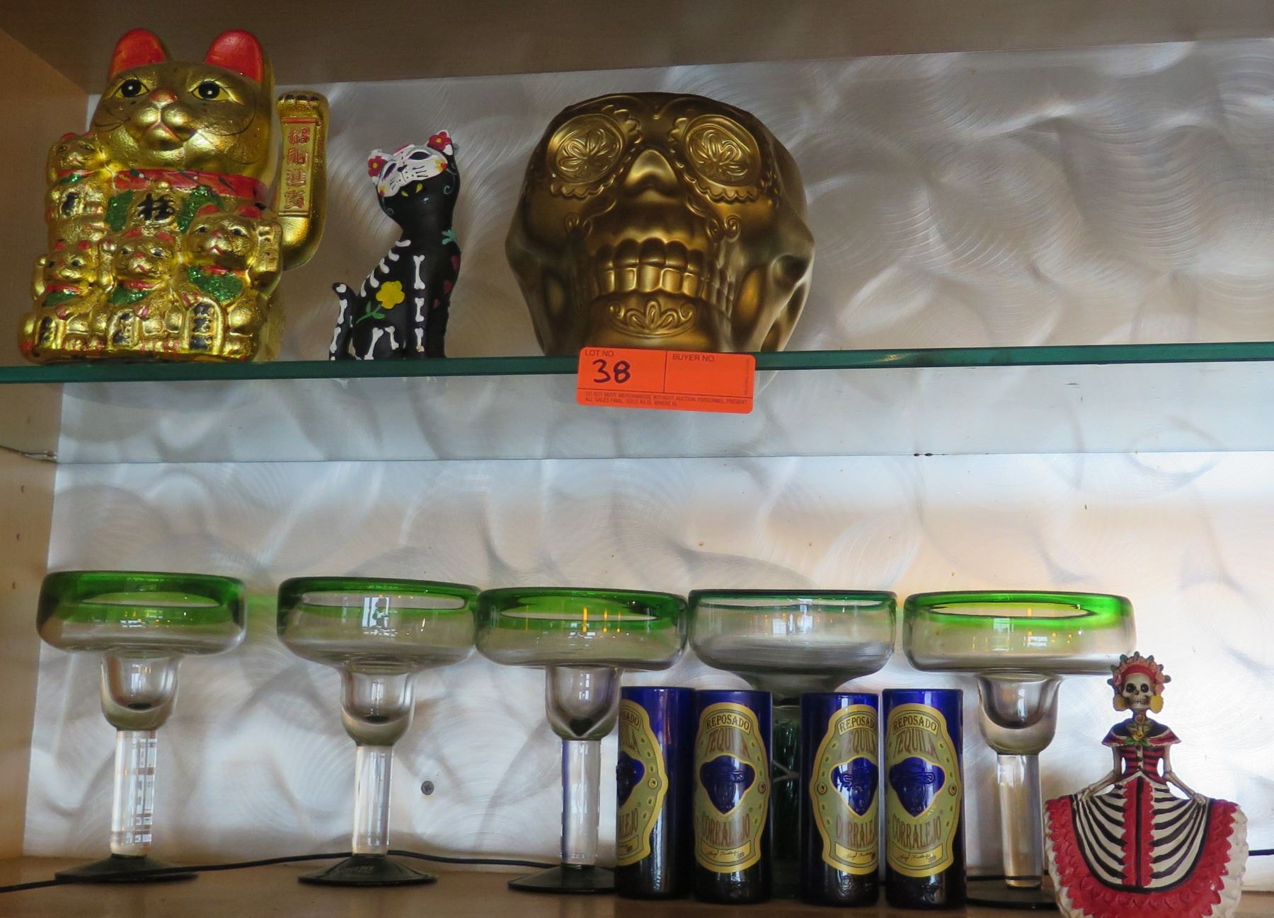 Decorative Cats, Skull, Margarita Glasses, Misc. Plastic Containers, 2 Qt Containers, Shakers, Misc. Barware