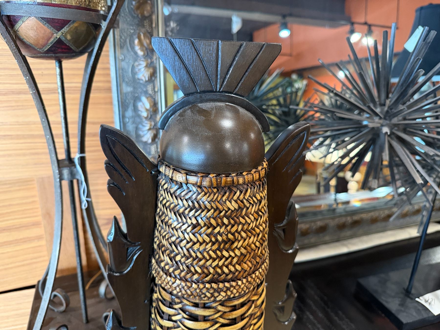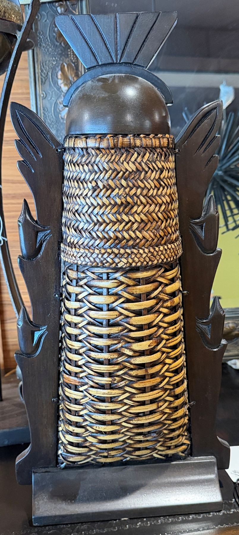 Decorative Wooden & Wicker Container made in the Philippines 22"H