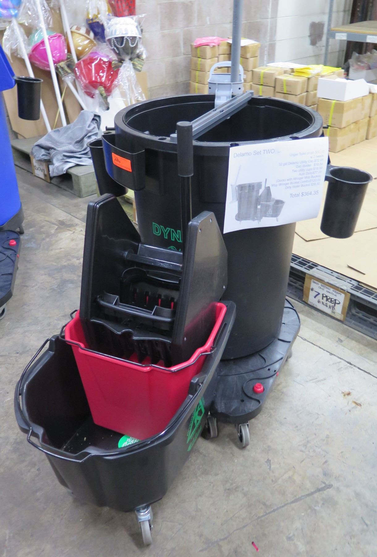 Delamo Set Two Auto Dolly Mop Wringer Bucket Combo Retail $364