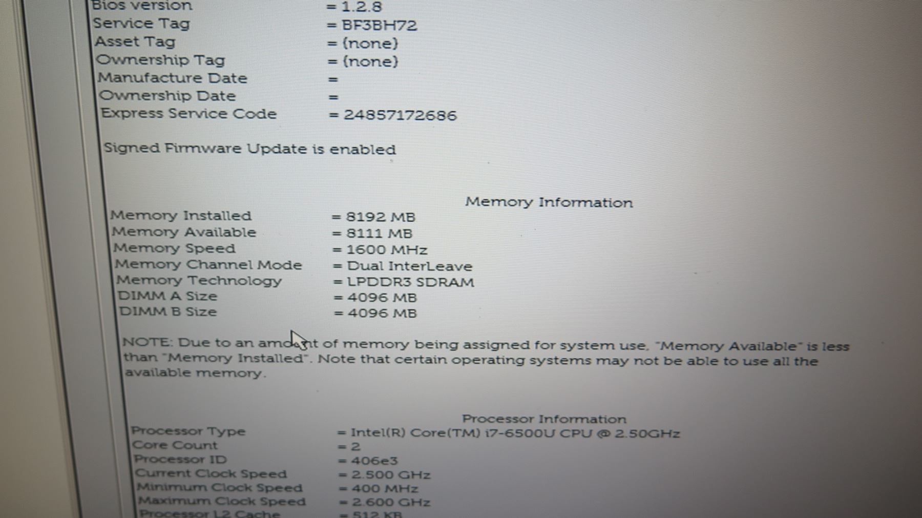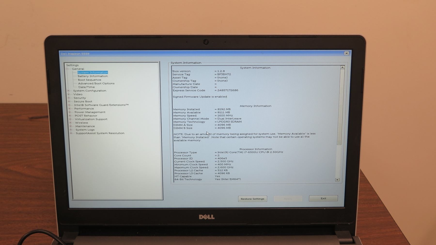 Dell Inspiron 5559 Laptop Core i7 2.5 GHz 8192 MB RAM w/ A/C Adapter (No hard drive)