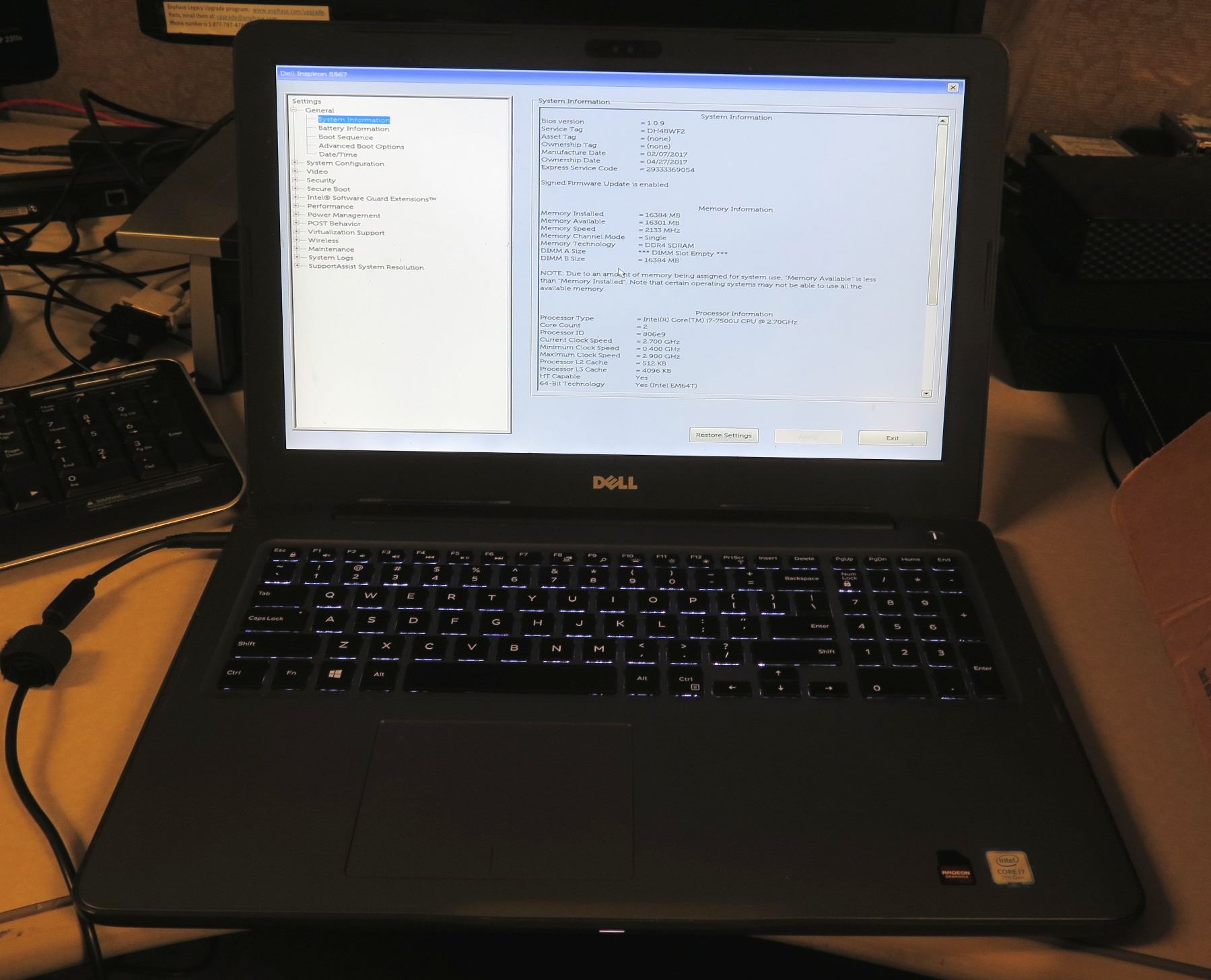 Dell Inspiron 5567 2.7GHz 16384 MB Laptop w/ AC Adapter (no hard drive)