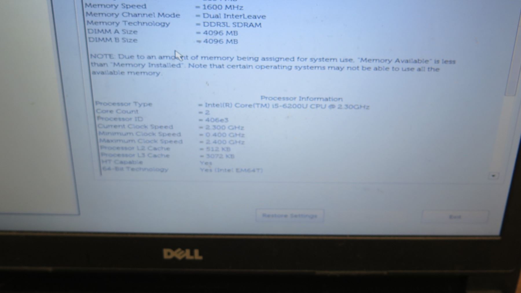 Dell Latitude 3570 Laptop Intel Core i5 2.3 GHz 8192 MB RAM Memory w/ A/C Adapter (No hard drive)