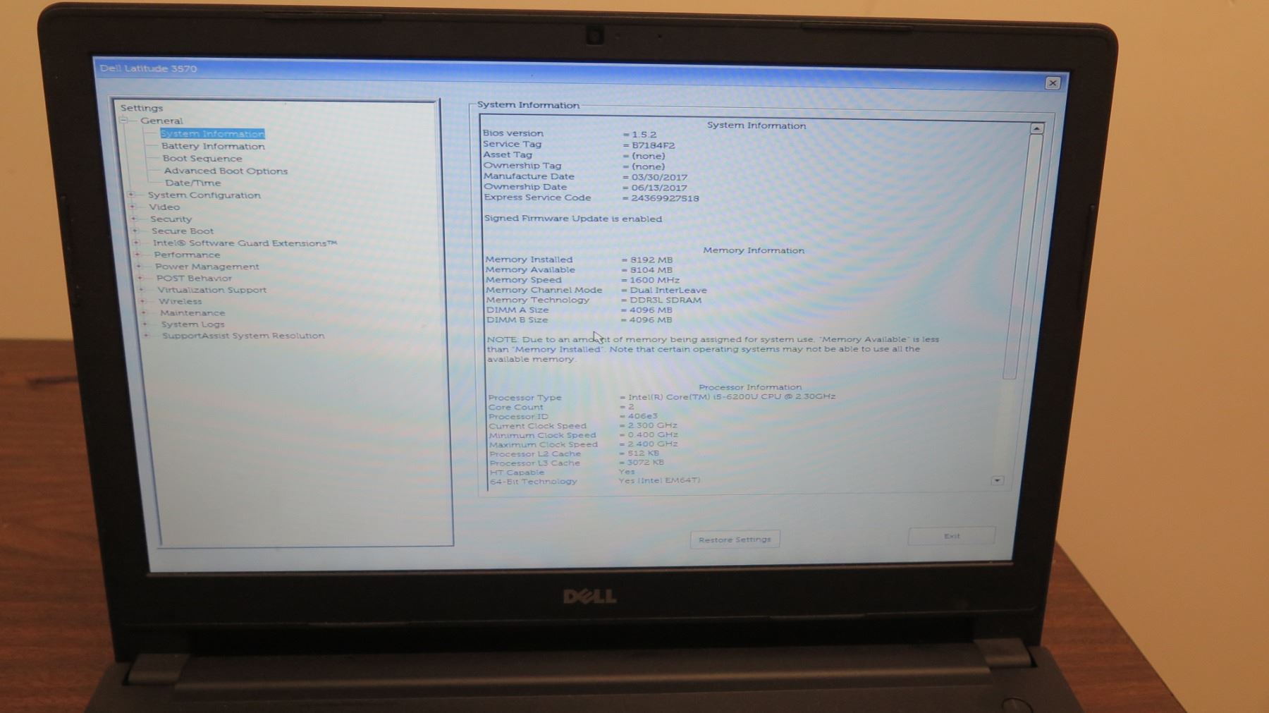 Dell Latitude 3570 Laptop Intel Core i5 2.3 GHz 8192 MB RAM (No A/C Adapter, no hard drive)