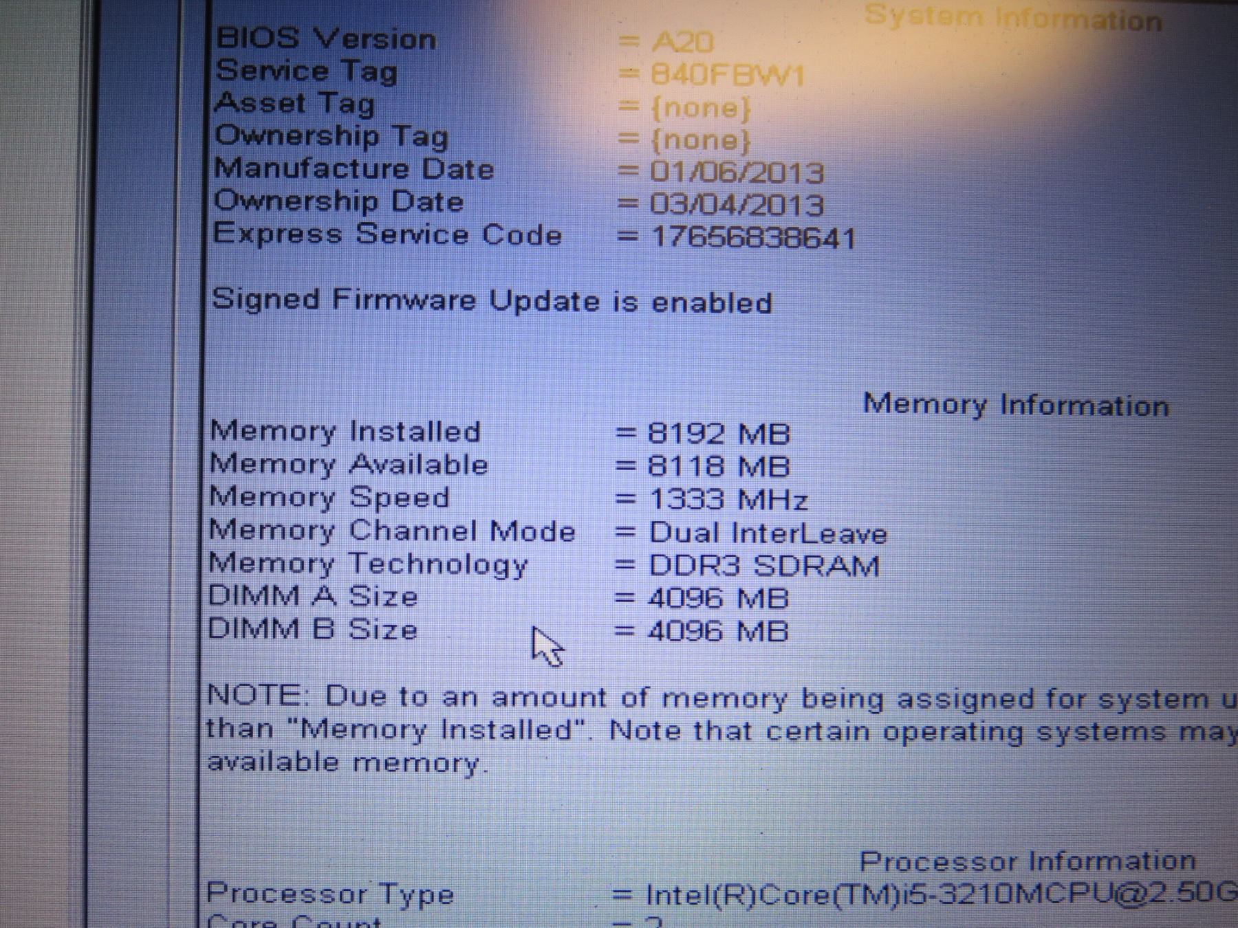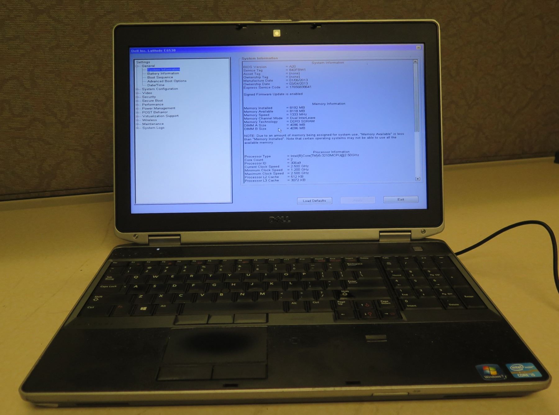 Dell Latitude E6530 2.5GHz 8192 MB Laptop w/ AC Adapter (no hard drive)