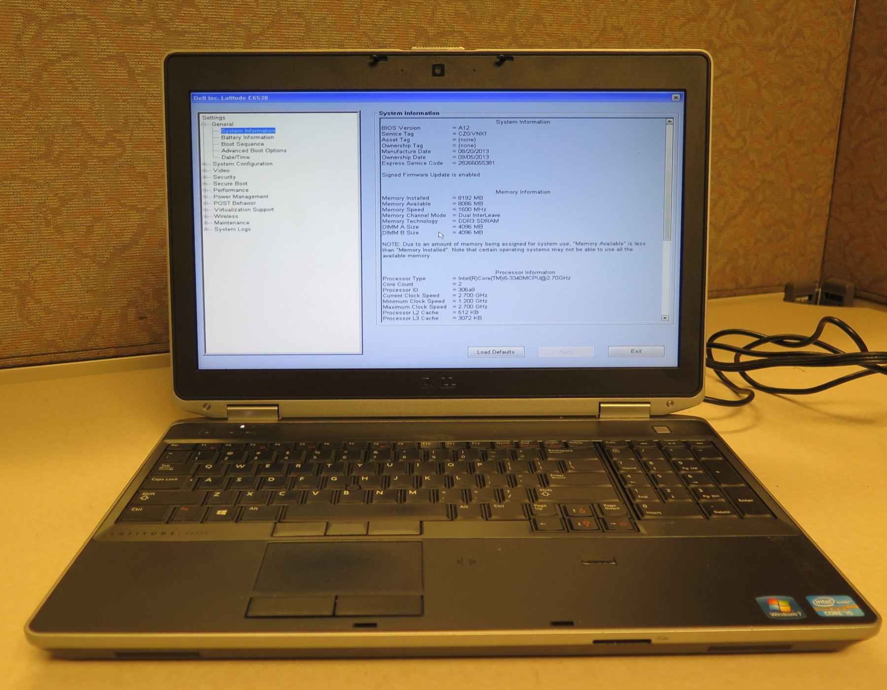 Dell Latitude E6530 2.7GHz 8192 MB Laptop w/ AC Adapter (no hard drive)