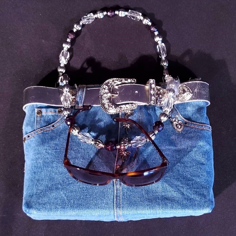 11" x 3" x 8 1/2" Jeans Purse with Belt and Inside Pocket