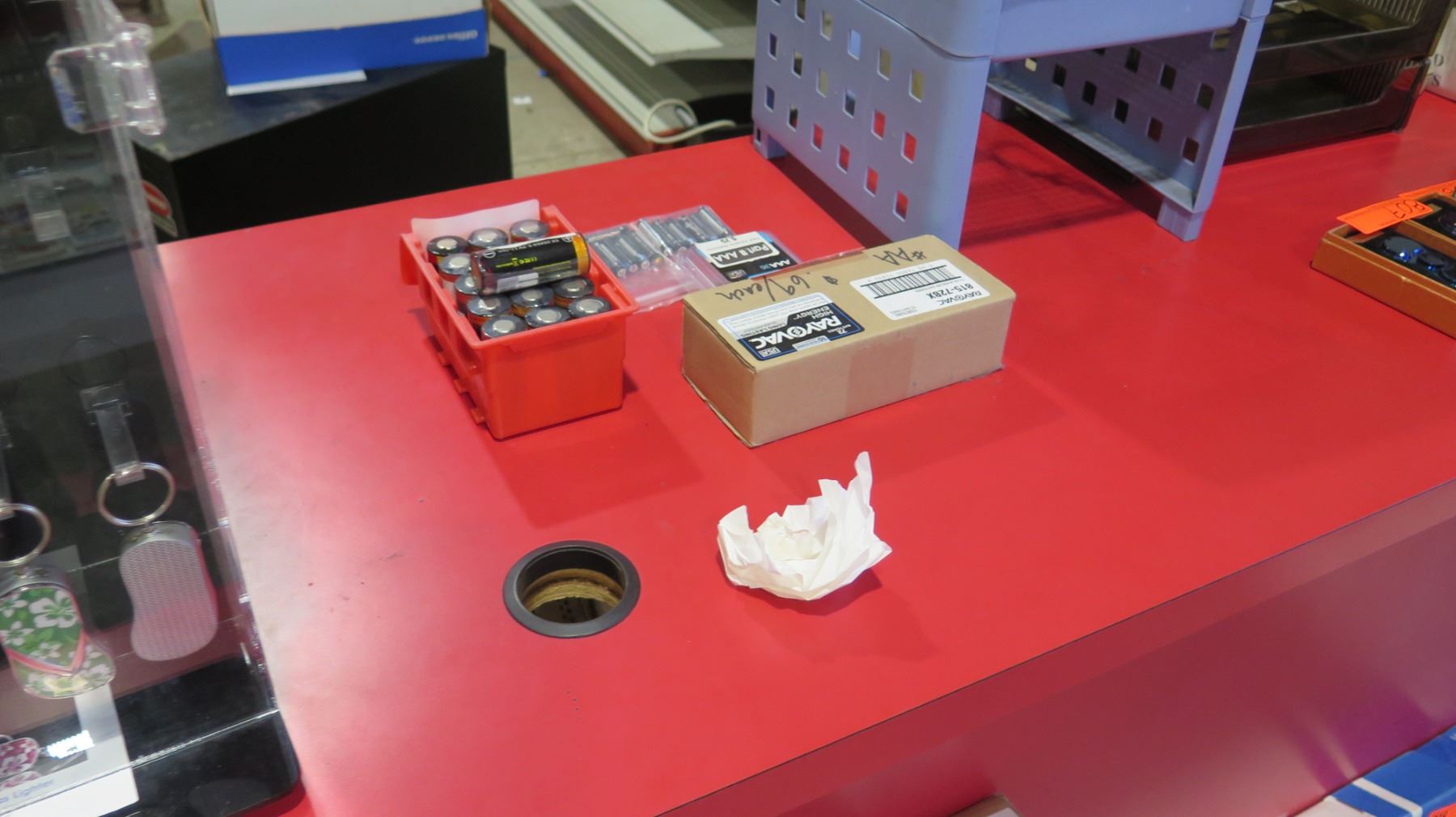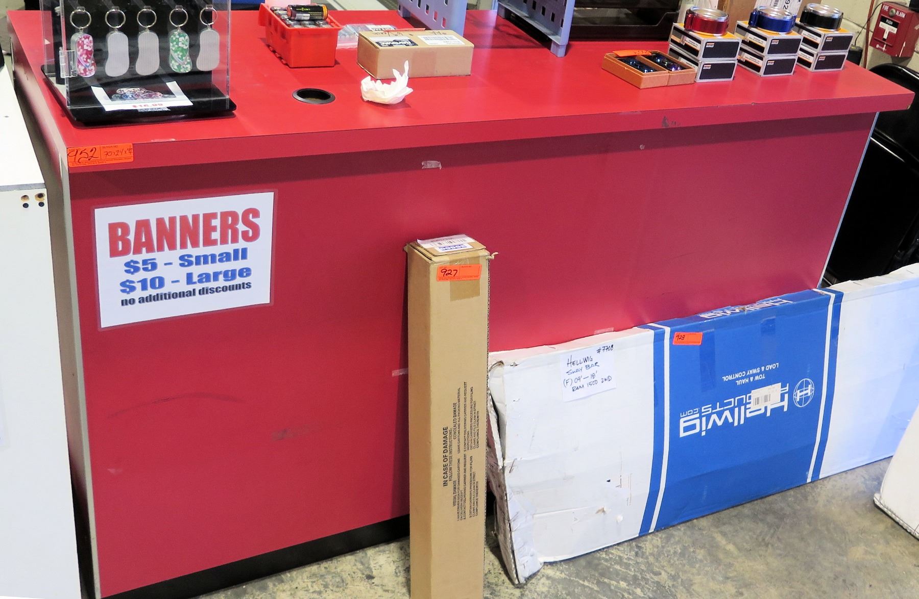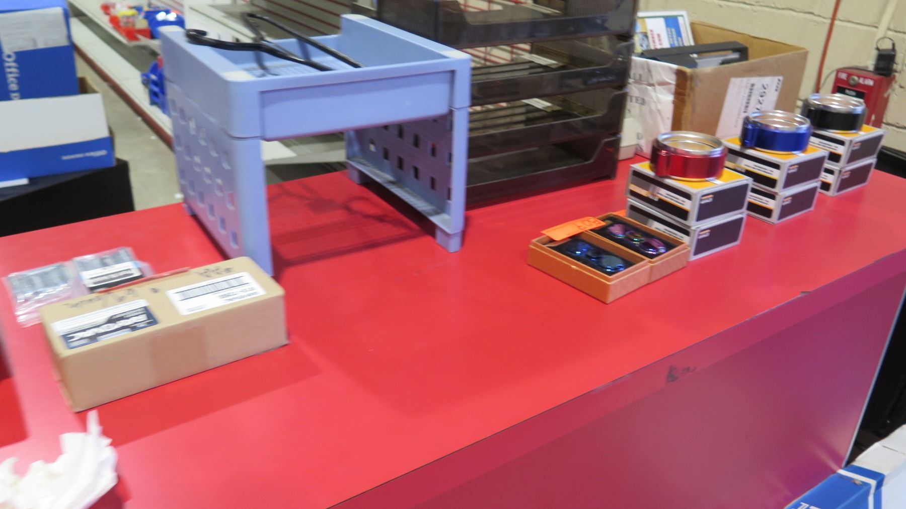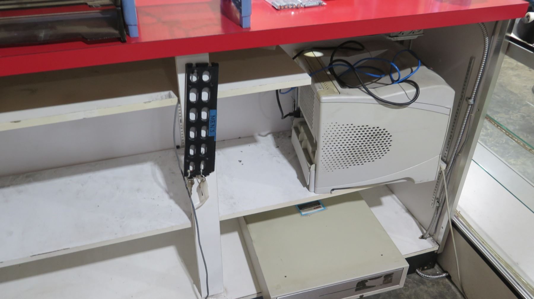 Display Counter ONLY - Red Desk w/ Adjustable Back Shelves 70" x 24" x 42"