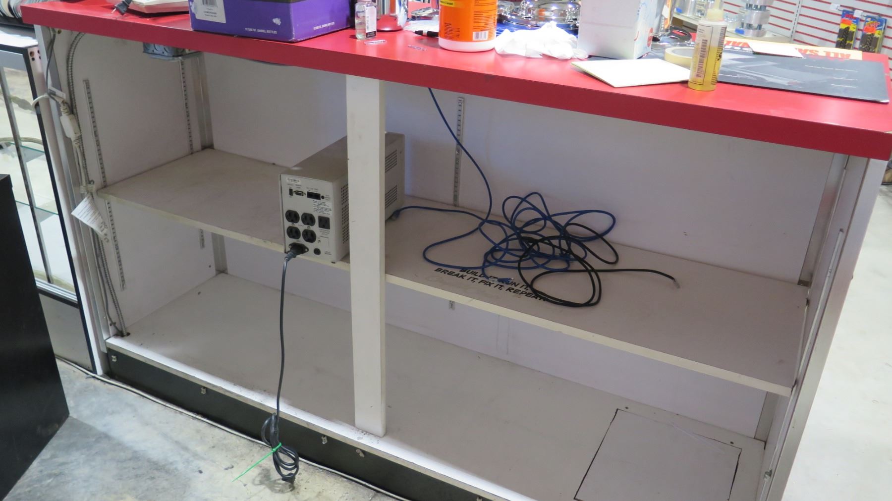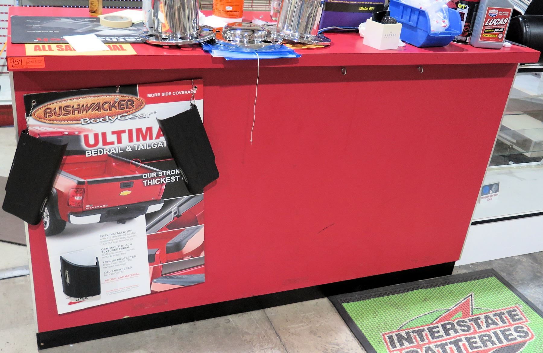Display Counter ONLY - Red Desk w/ Adjustable Back Shelves 70" x 24" x 42"