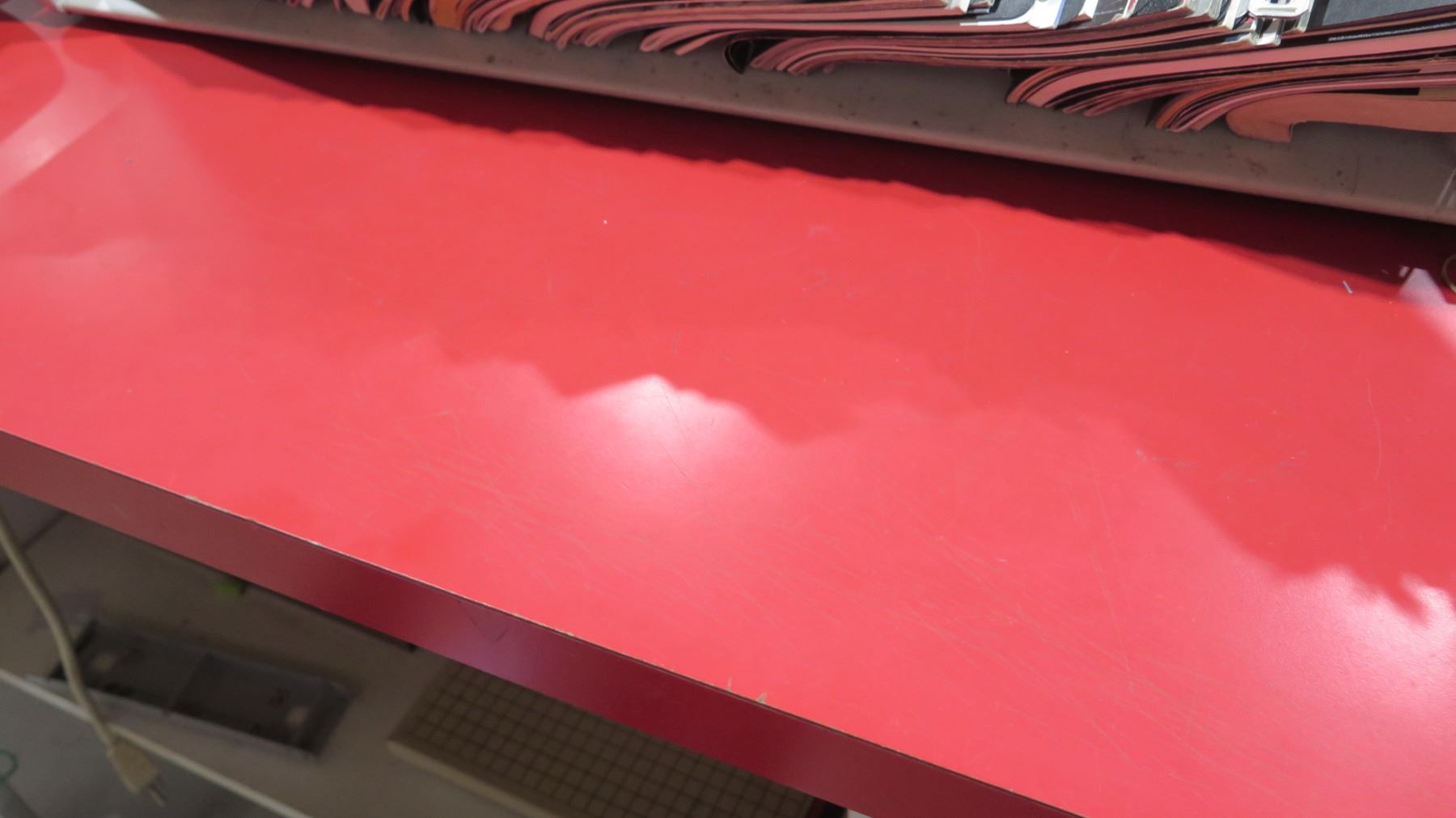 Display Counter ONLY - Red Desk w/ Adjustable Back Shelves 70" x 24" x 42"