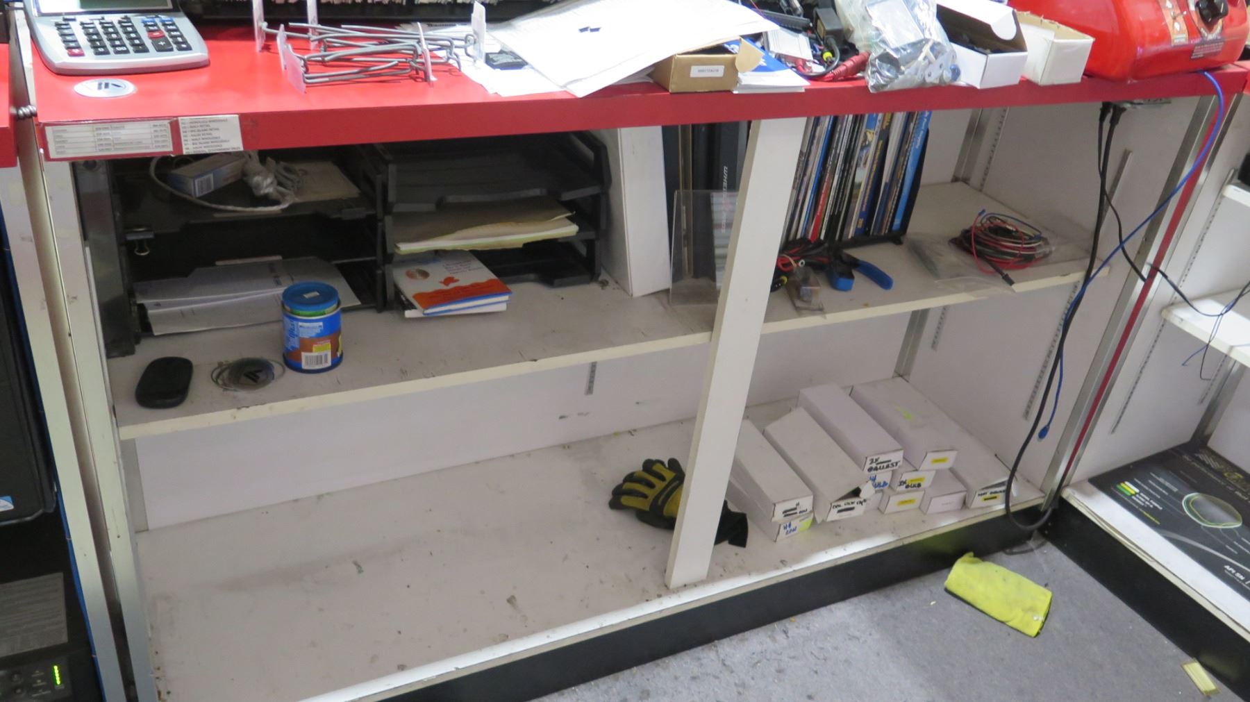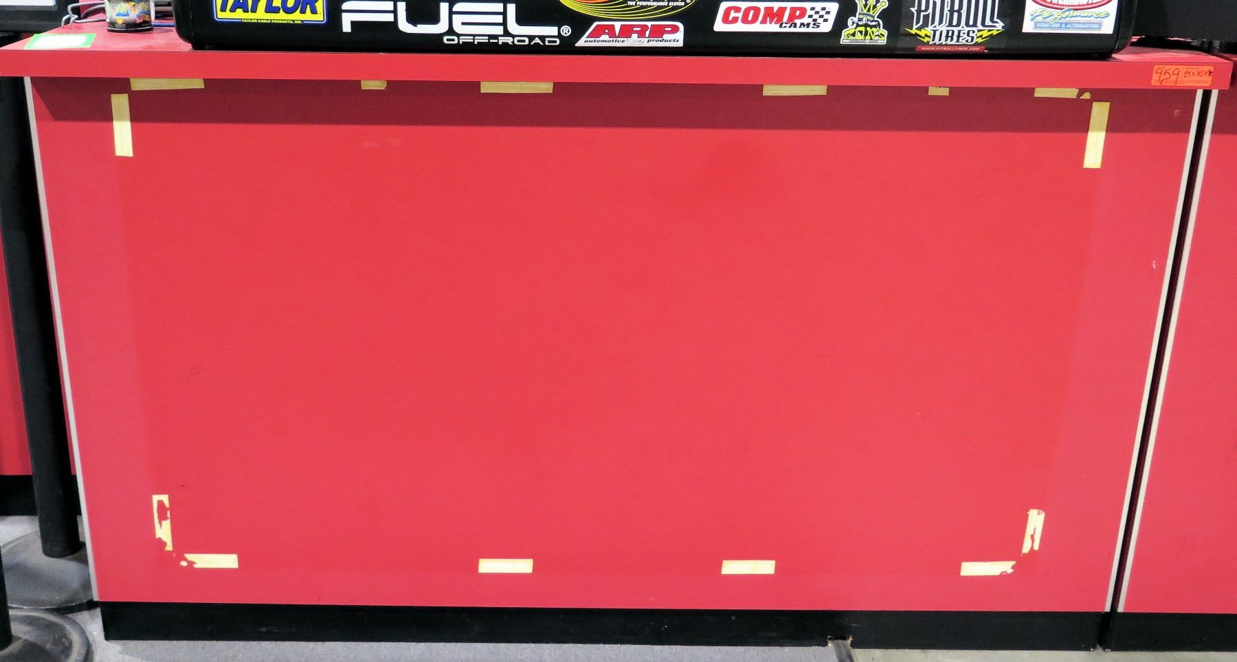 Display Counter ONLY - Red Desk w/ Adjustable Back Shelves 70" x 24" x 42"