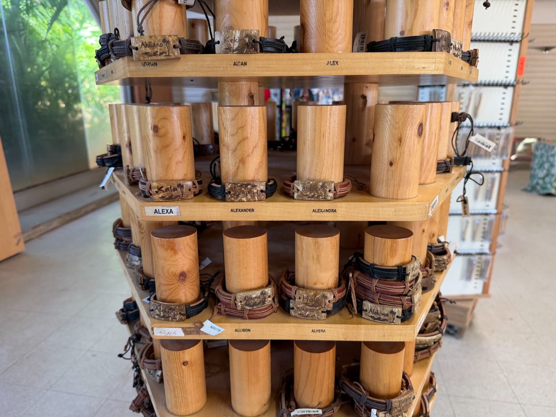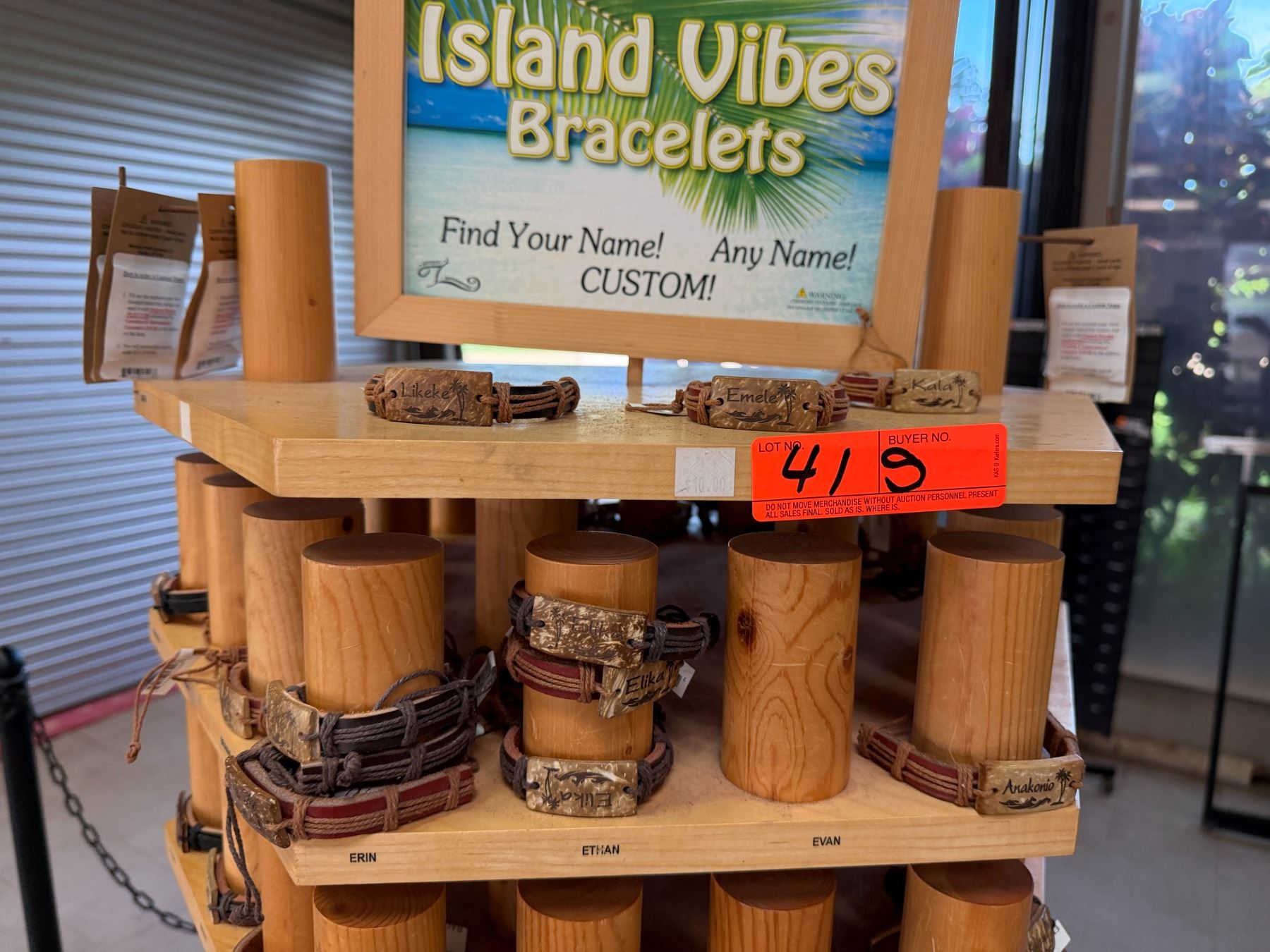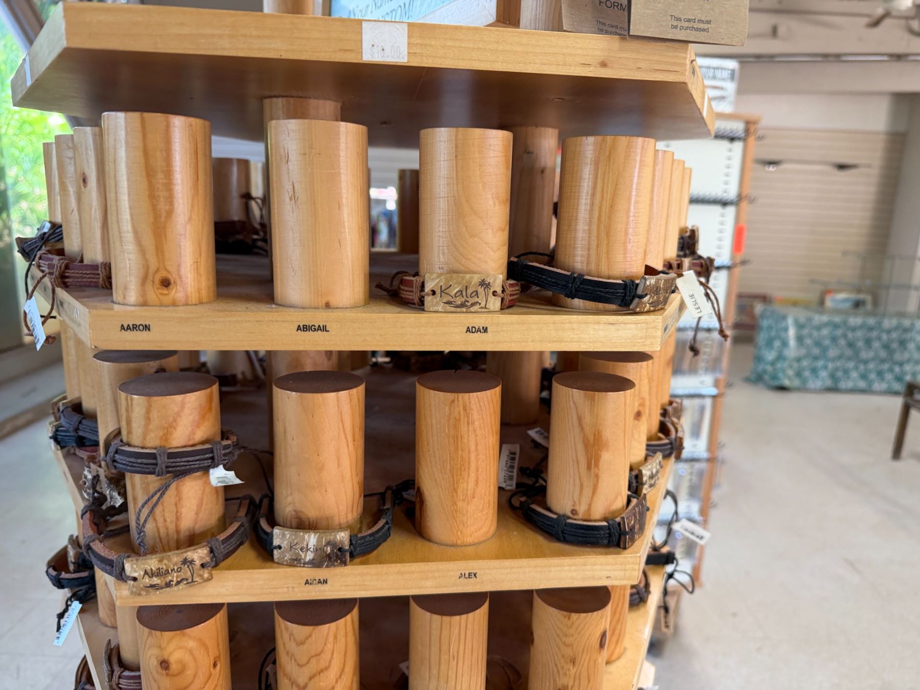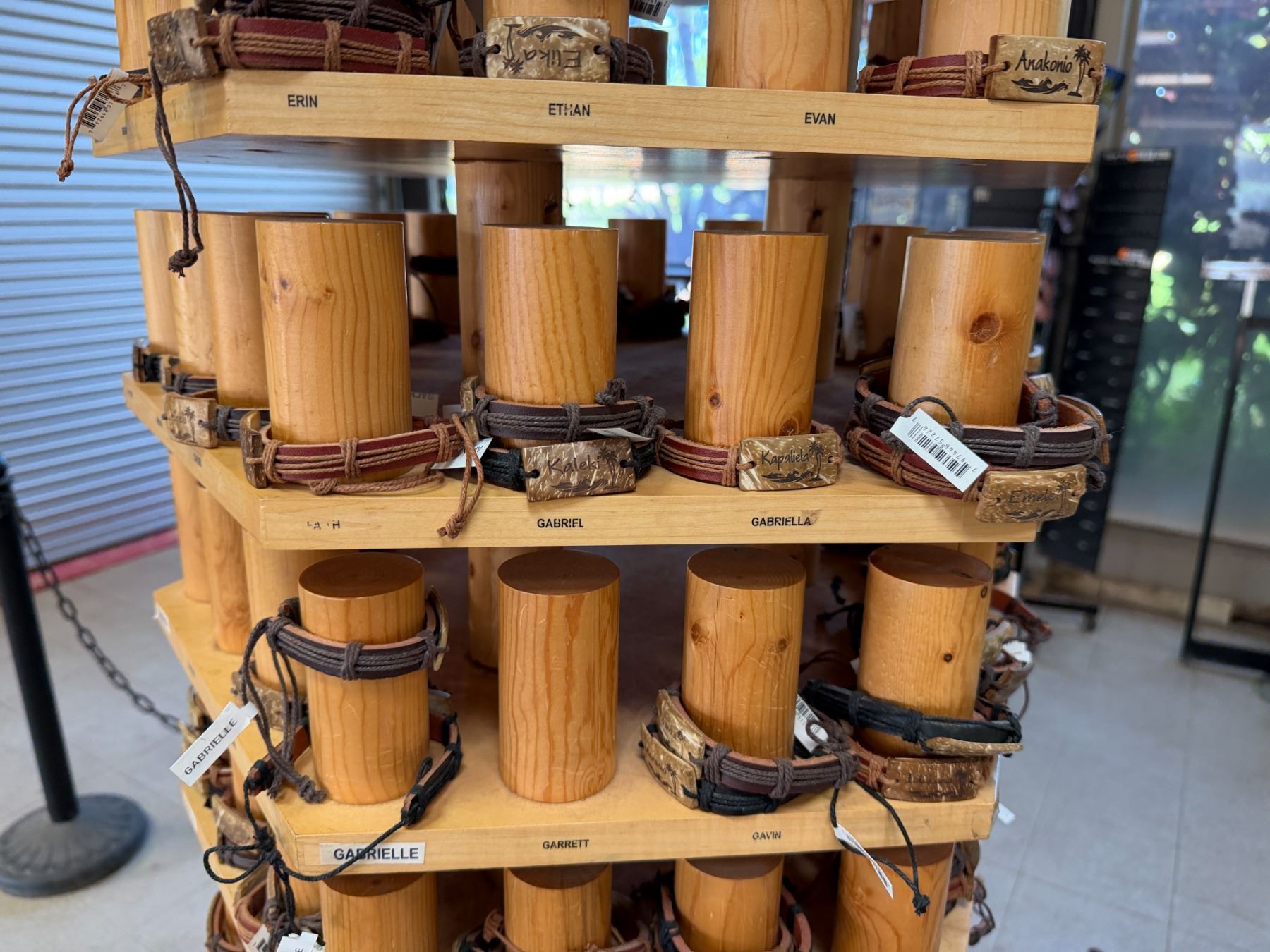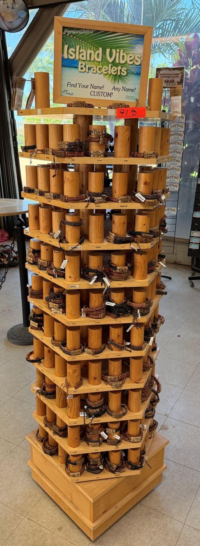 Display Rack w/ Multiple Island Vibes Hawaiian Name Bracelets