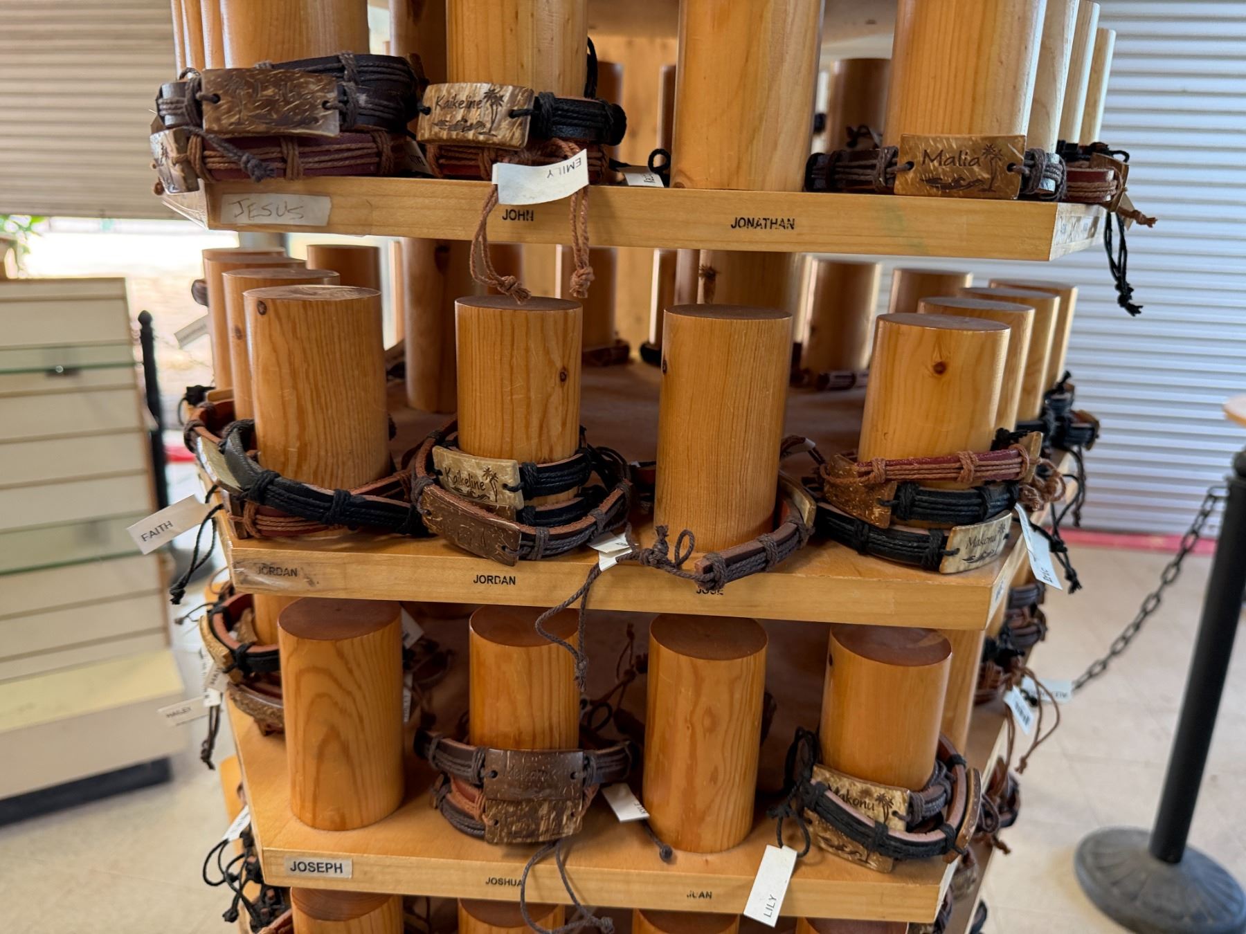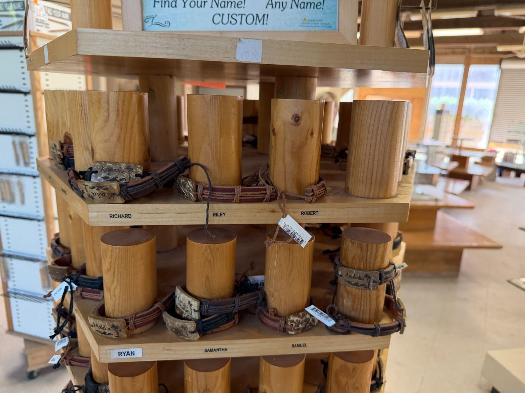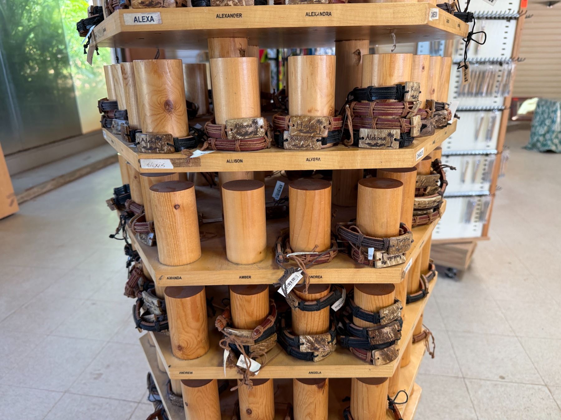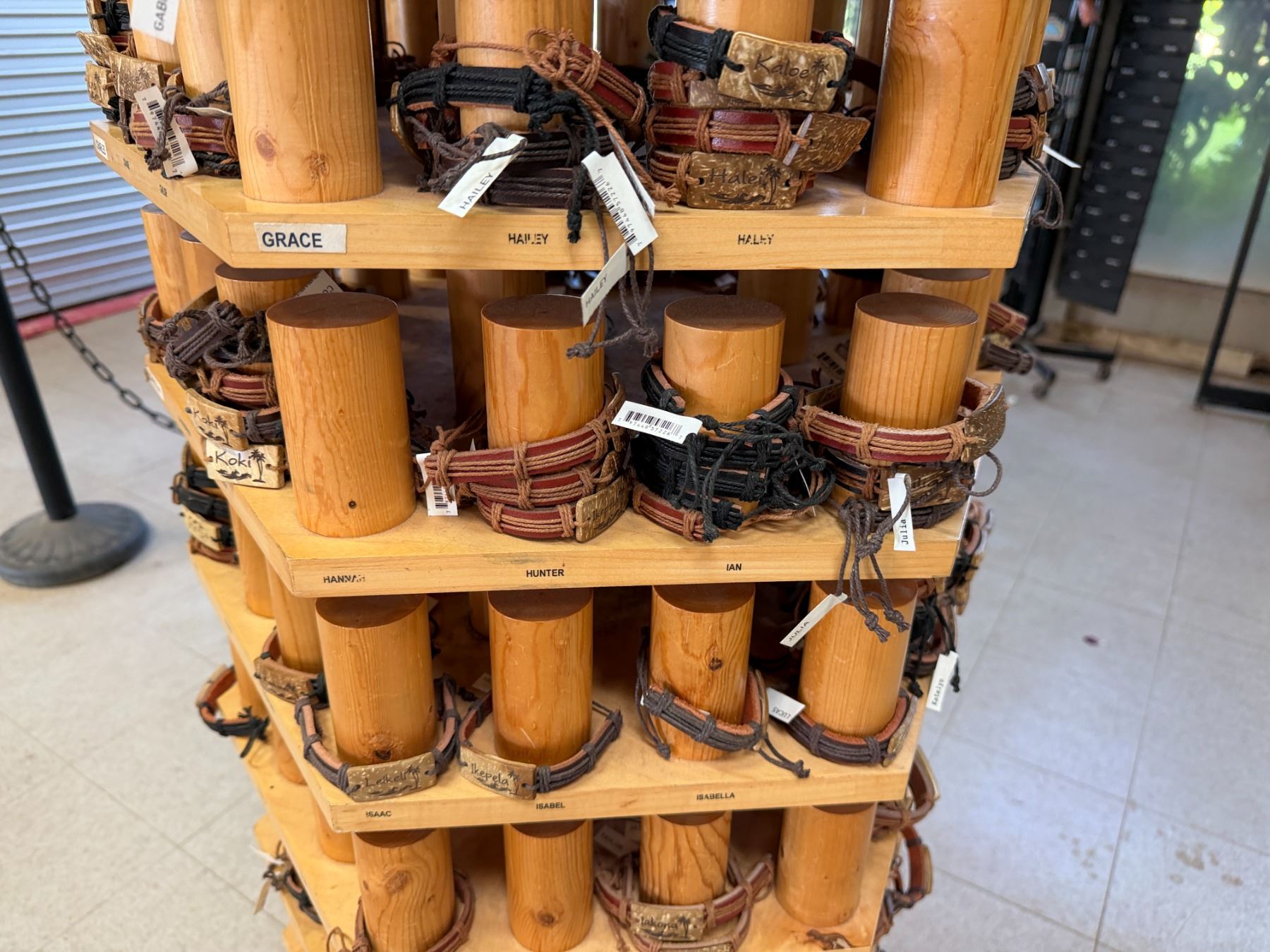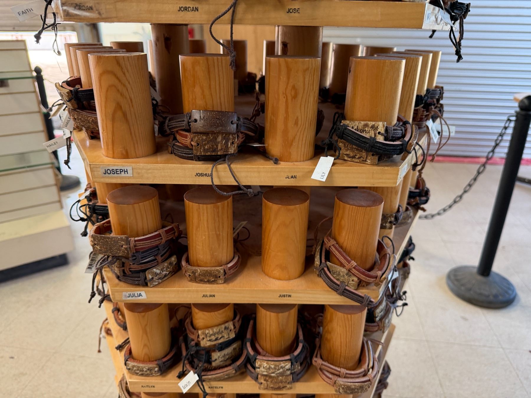 Display Rack w/ Multiple Island Vibes Hawaiian Name Bracelets
