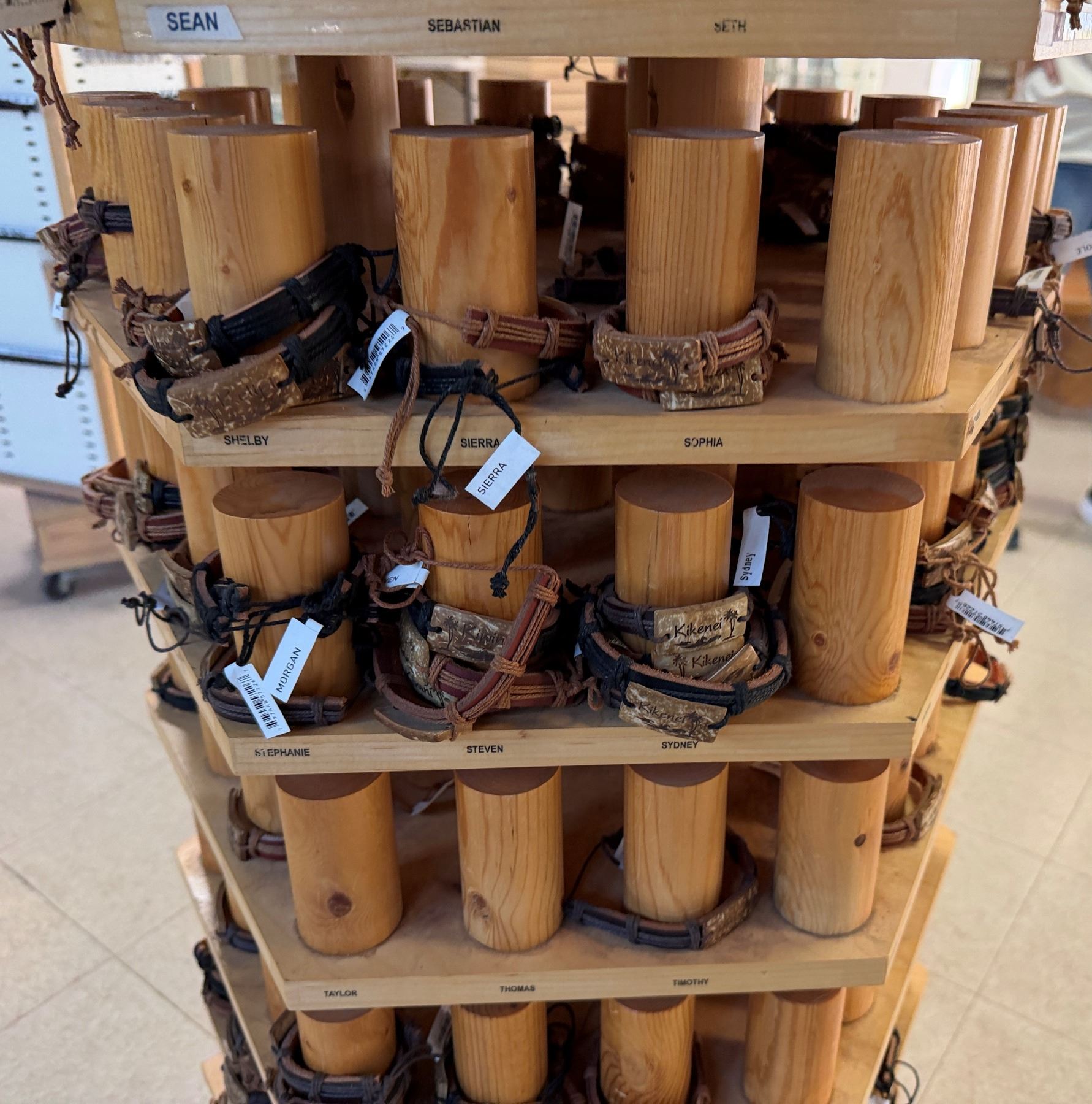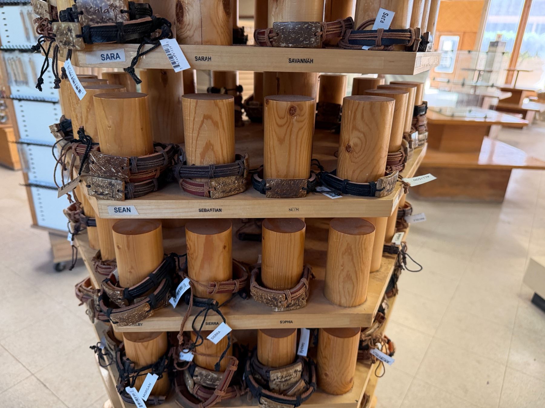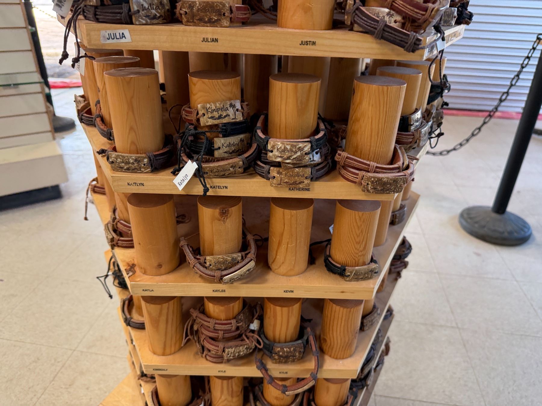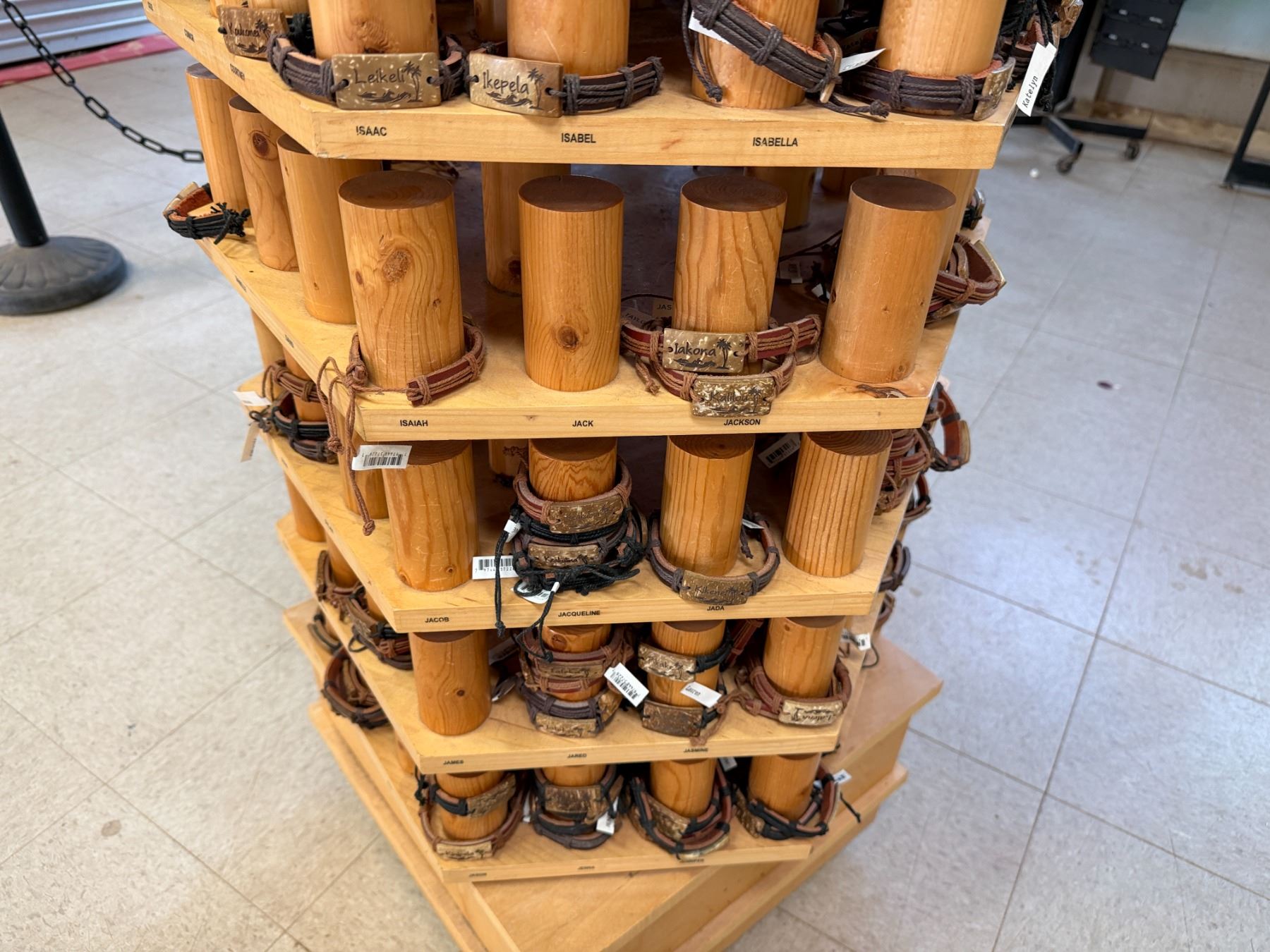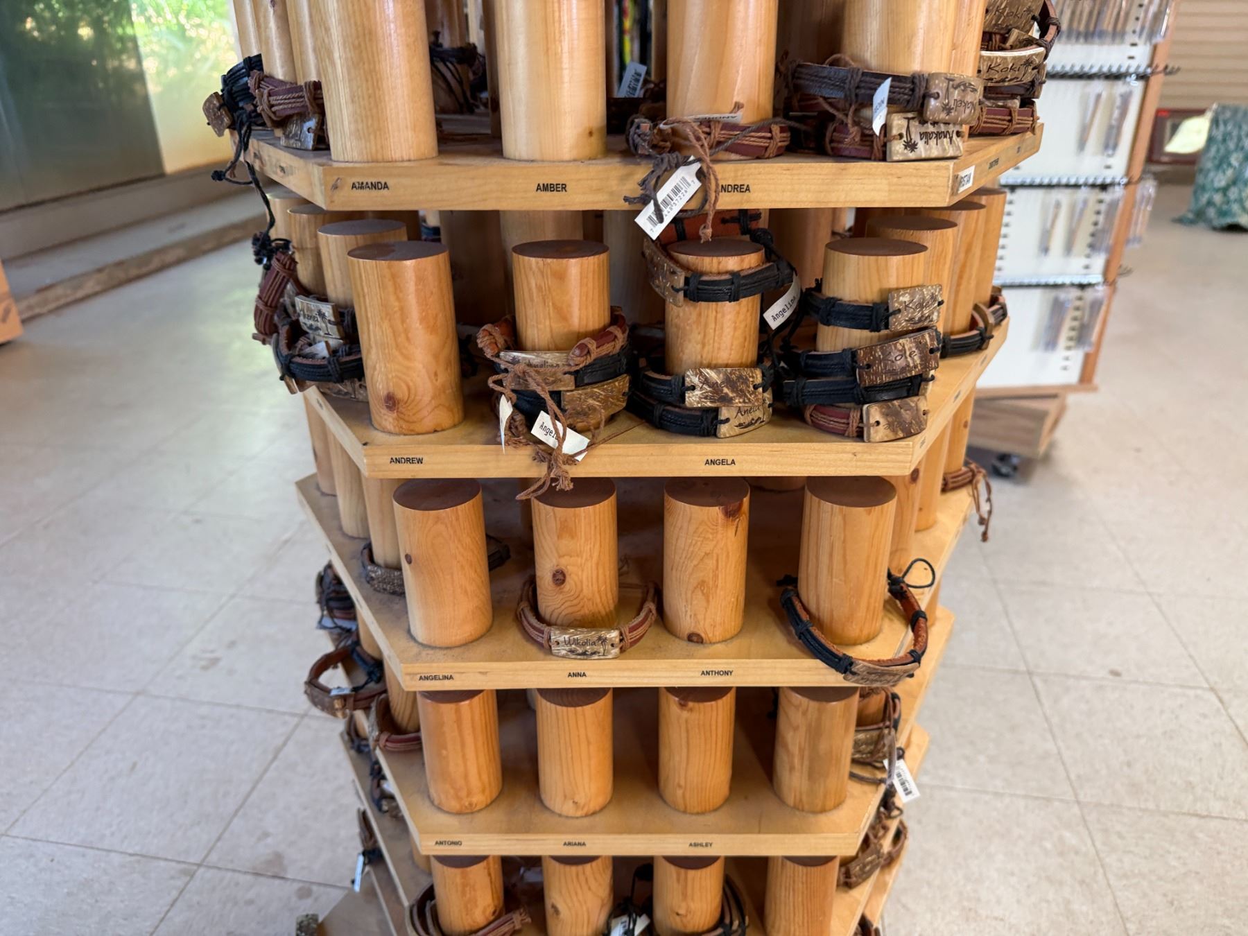 Display Rack w/ Multiple Island Vibes Hawaiian Name Bracelets
