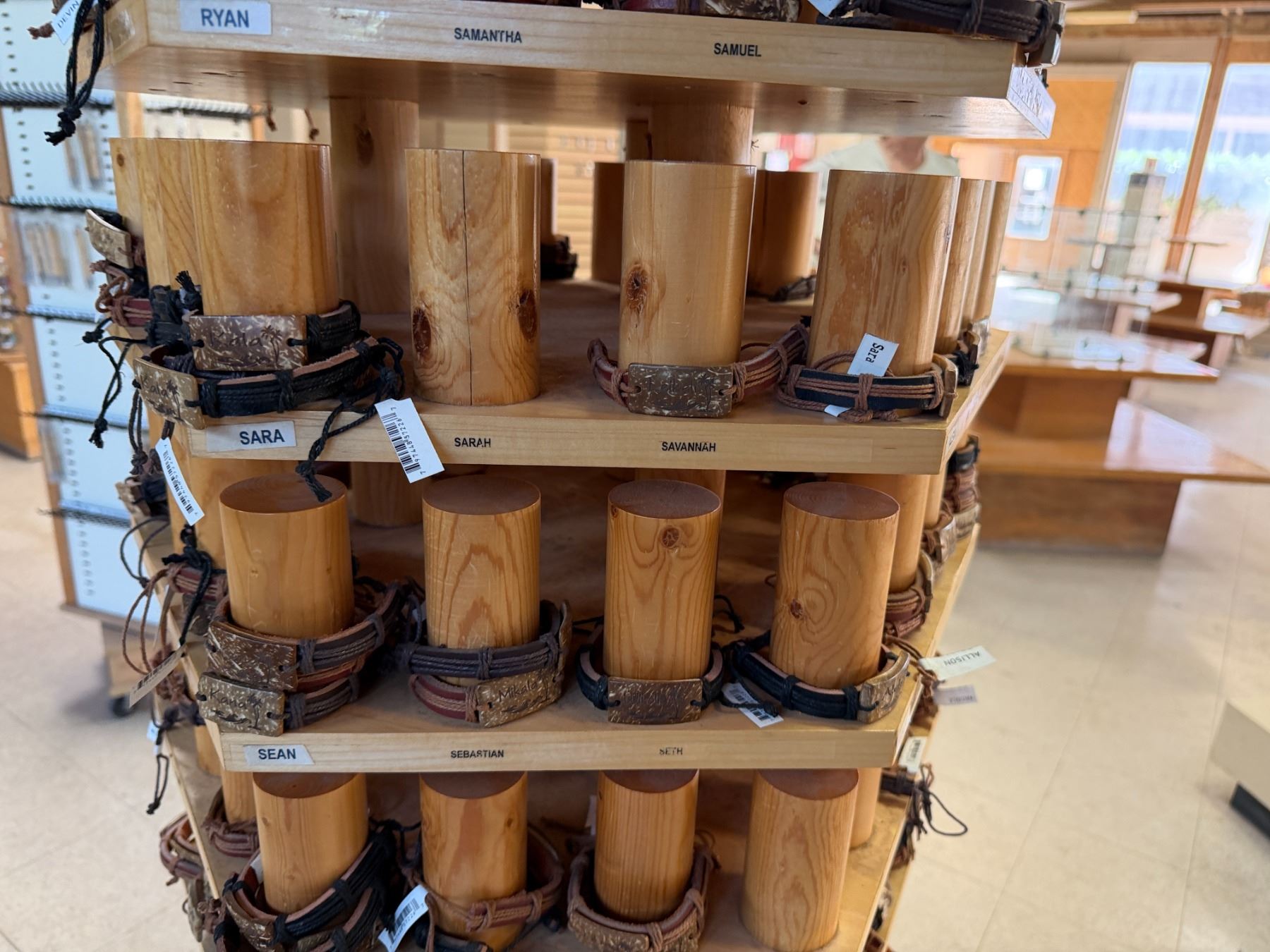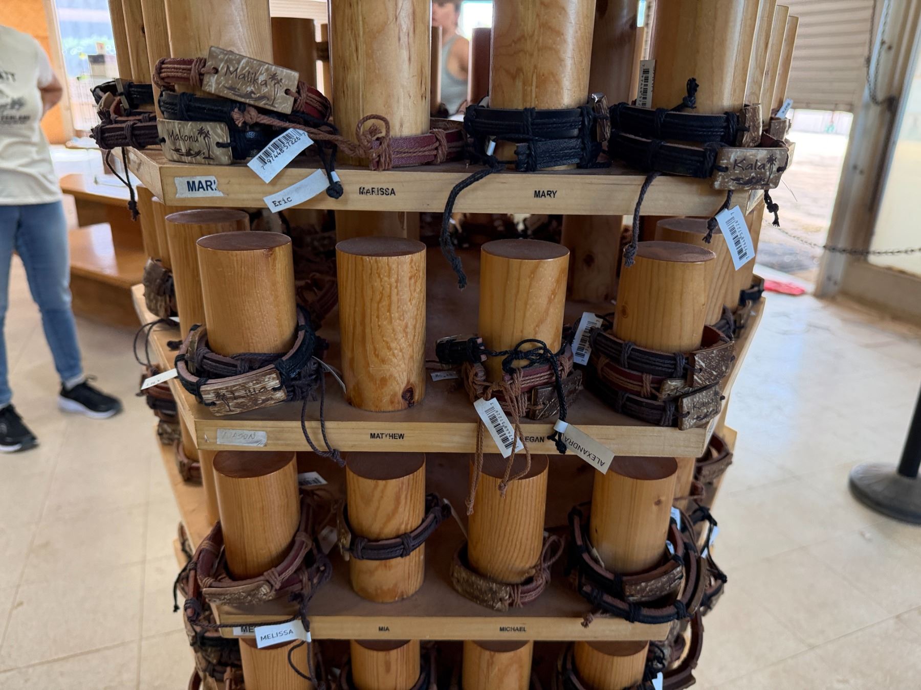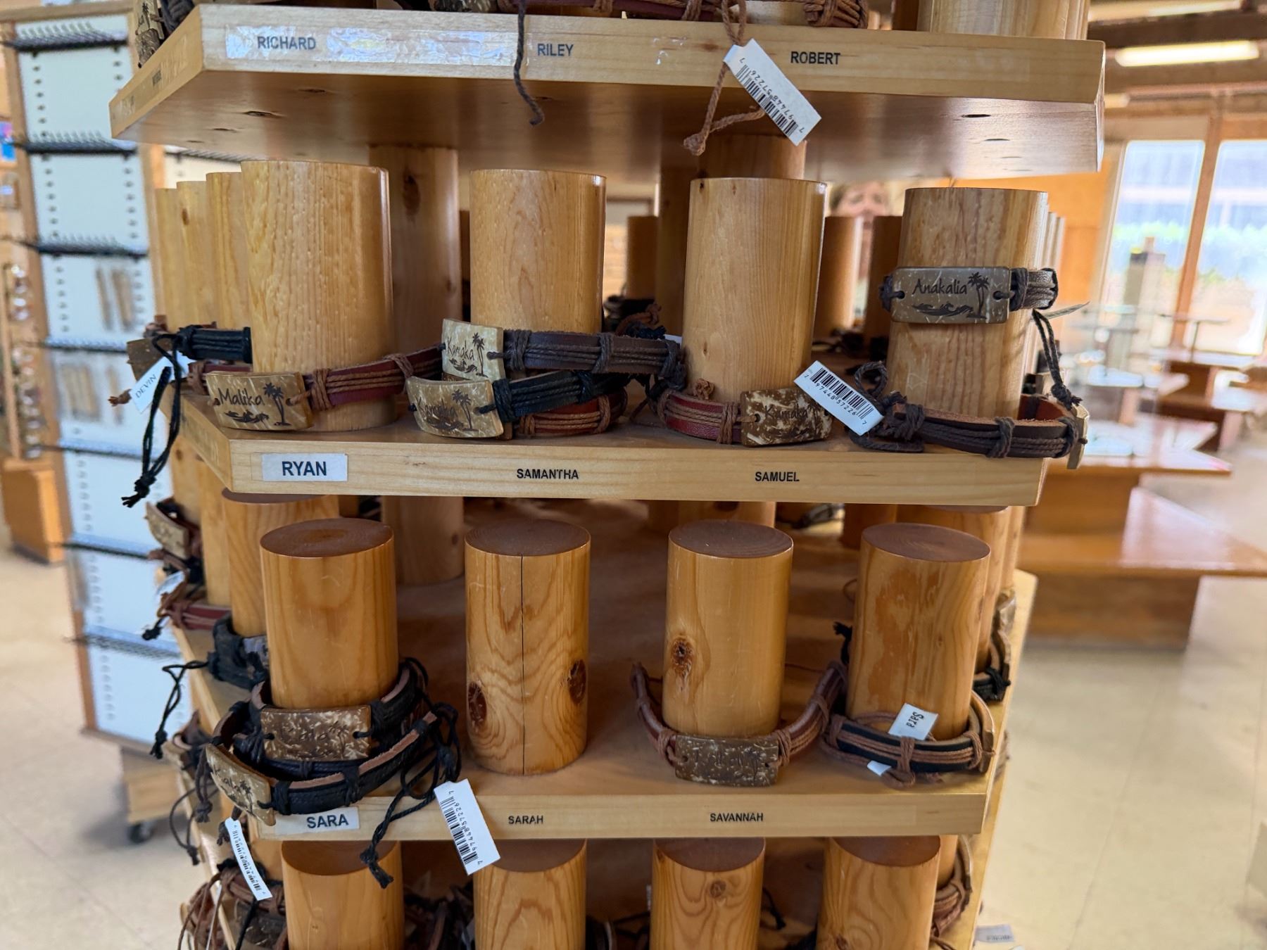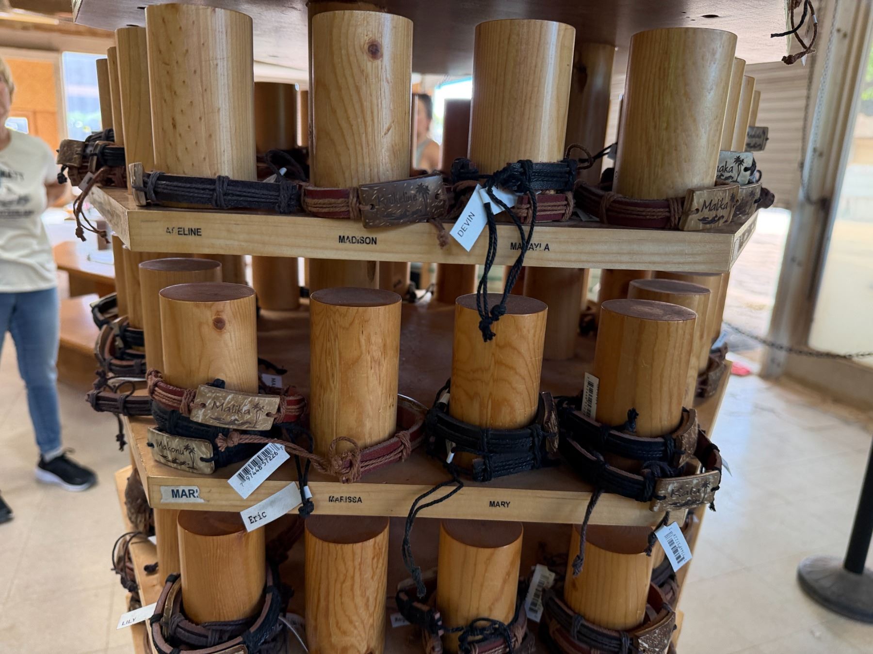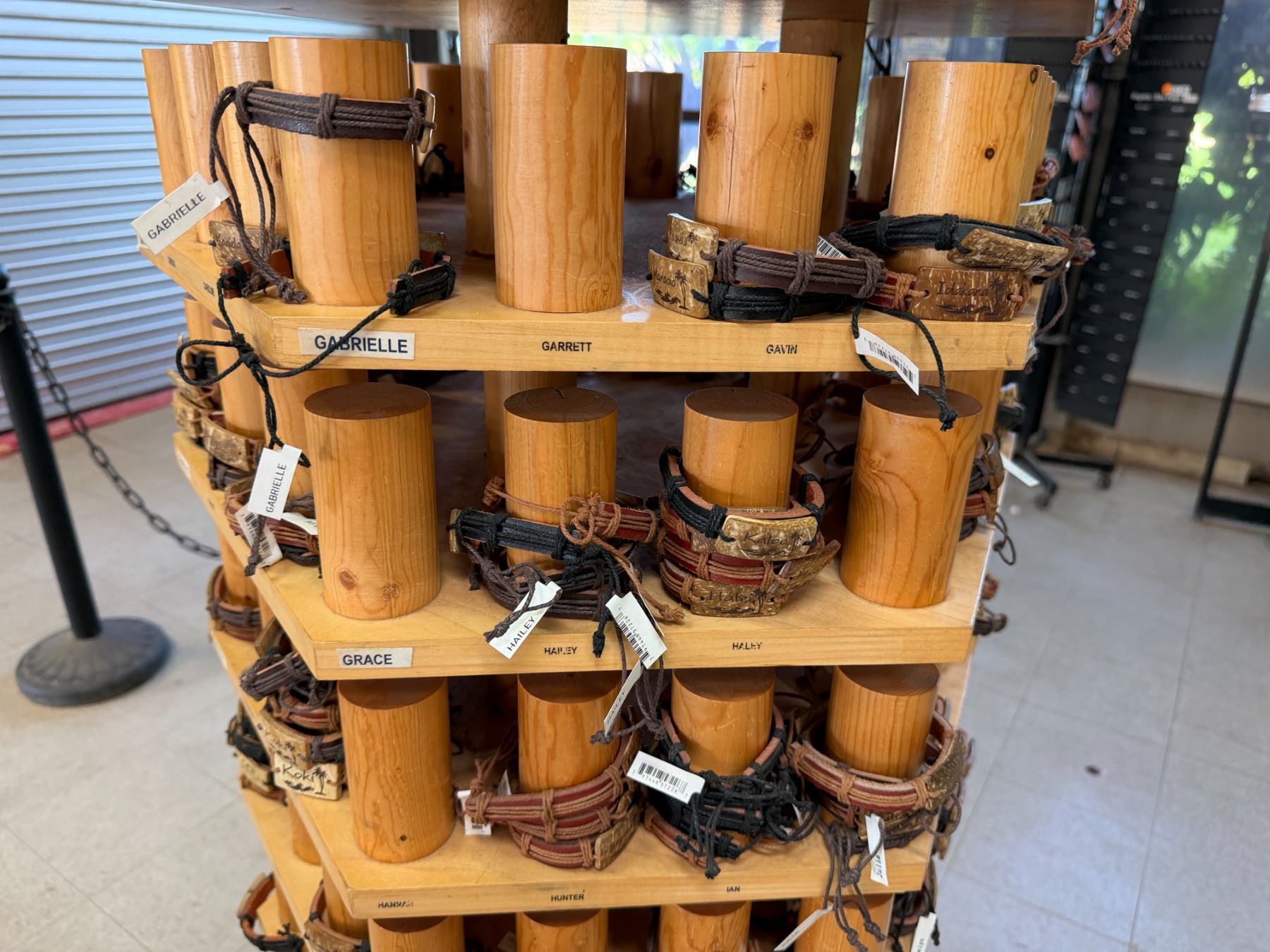 Display Rack w/ Multiple Island Vibes Hawaiian Name Bracelets