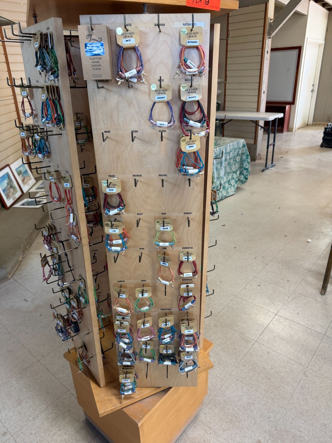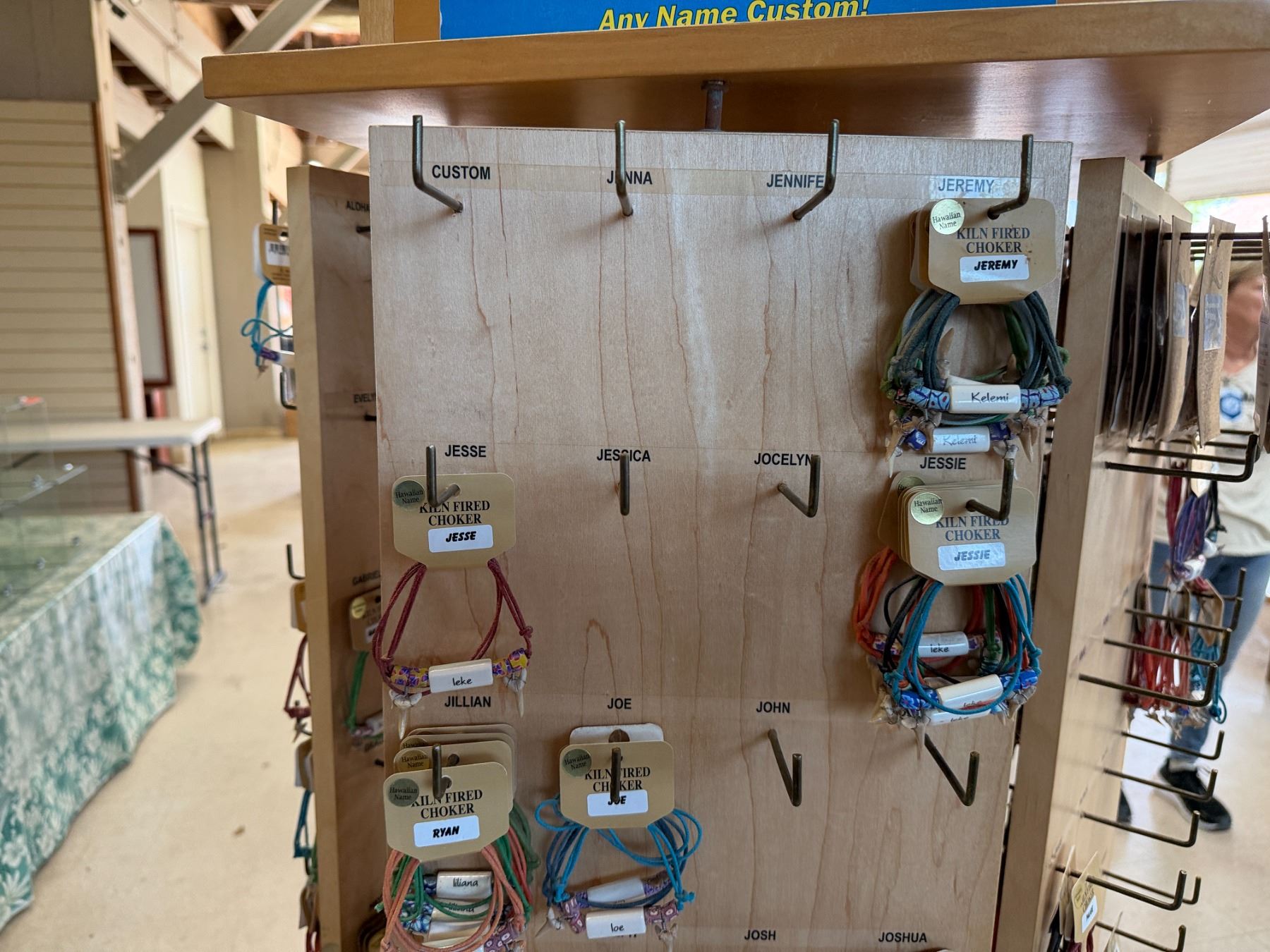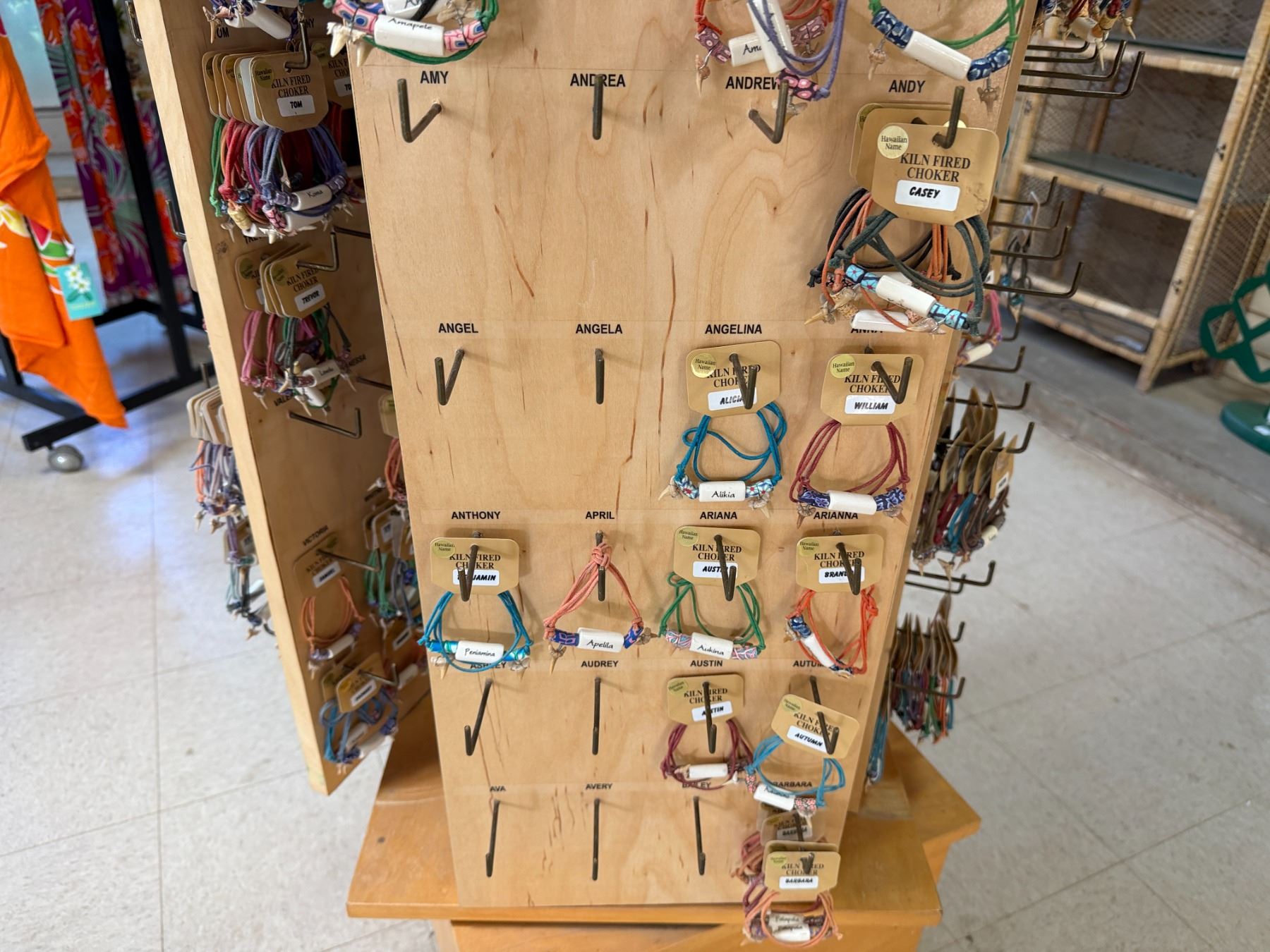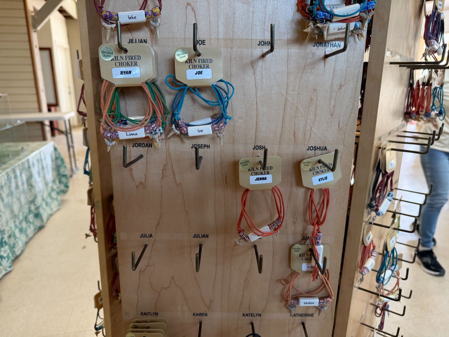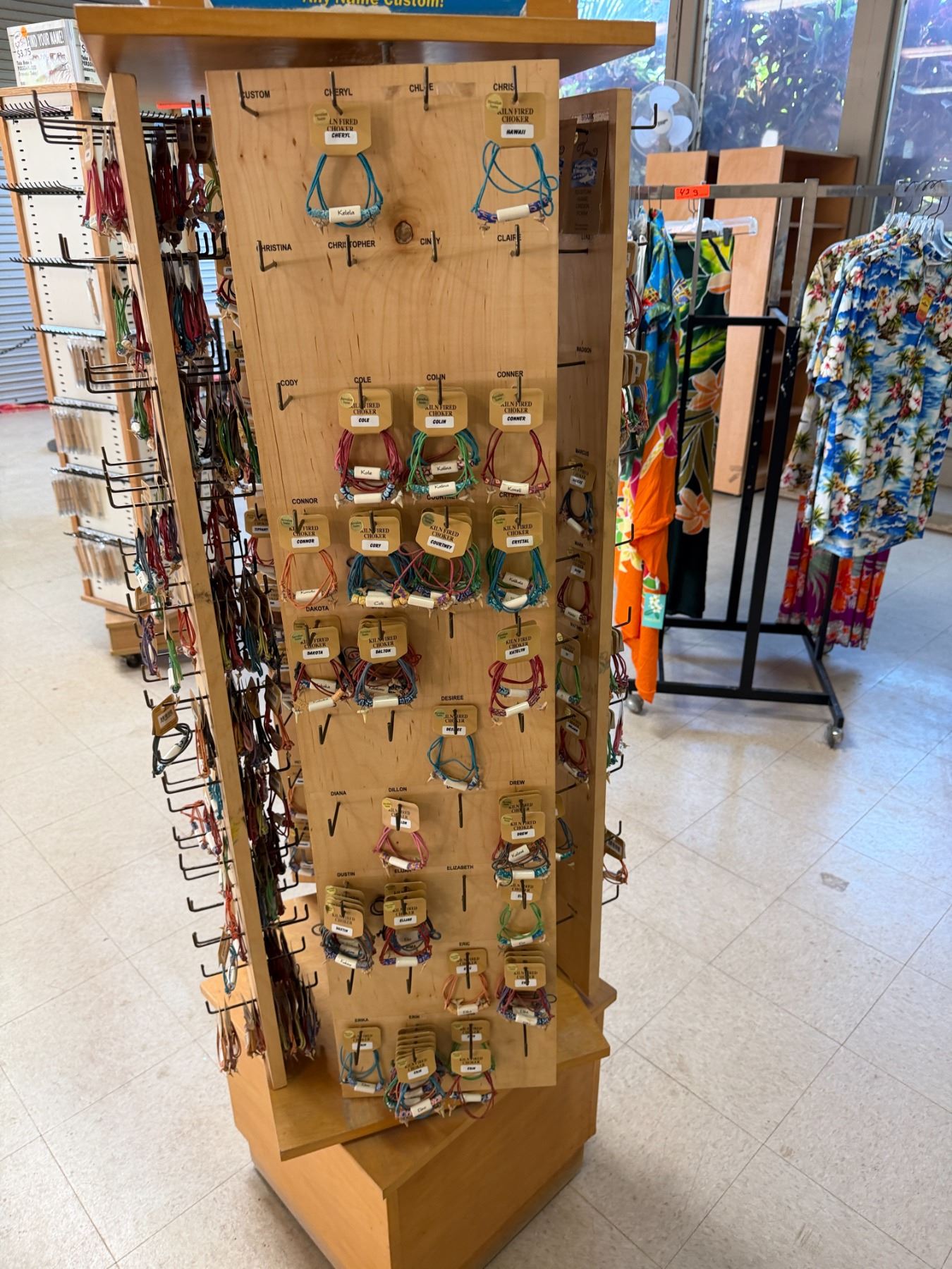 Display Rack w/ Multiple Your Name in Hawaiian Shark Wear Chokers