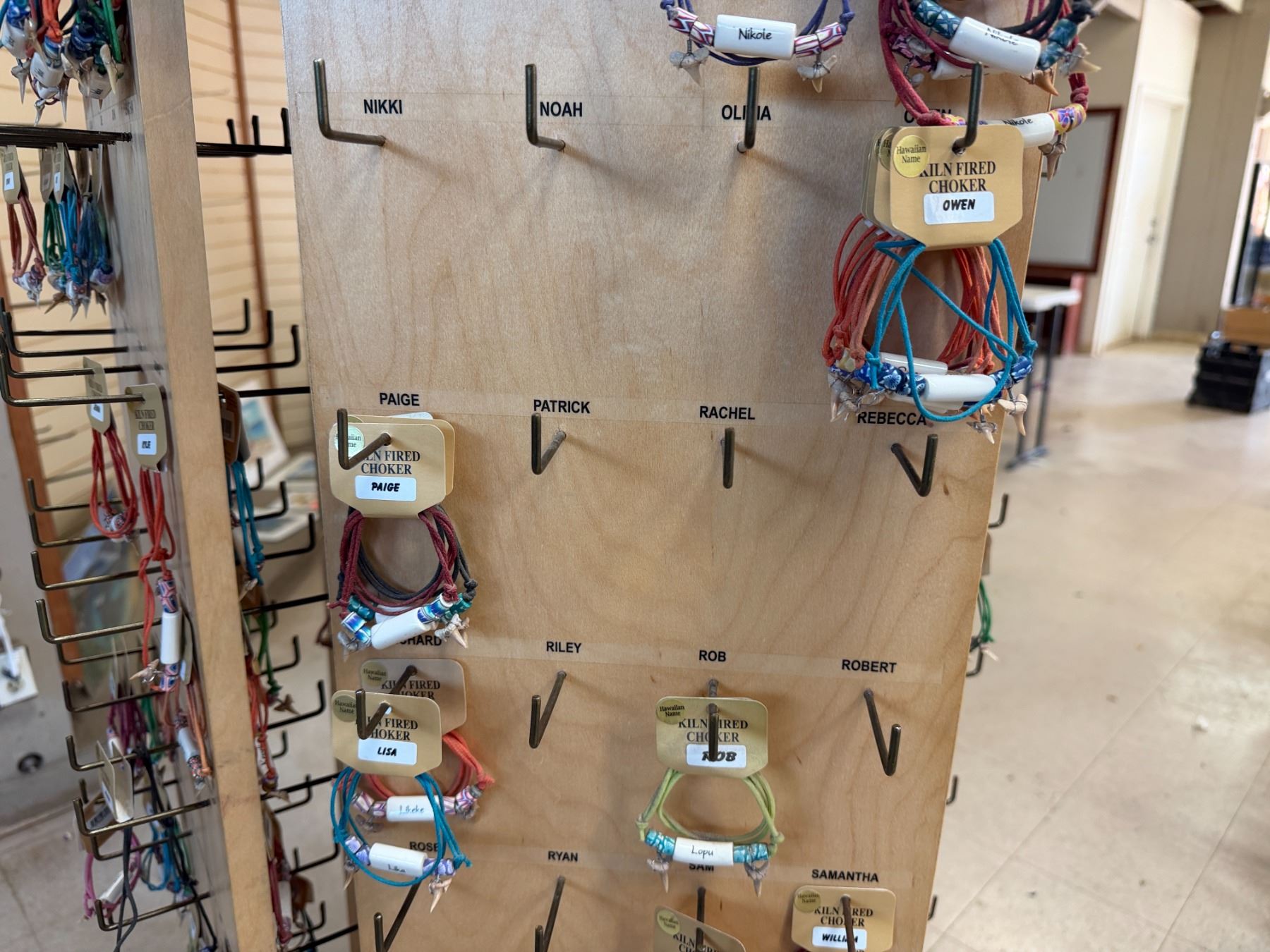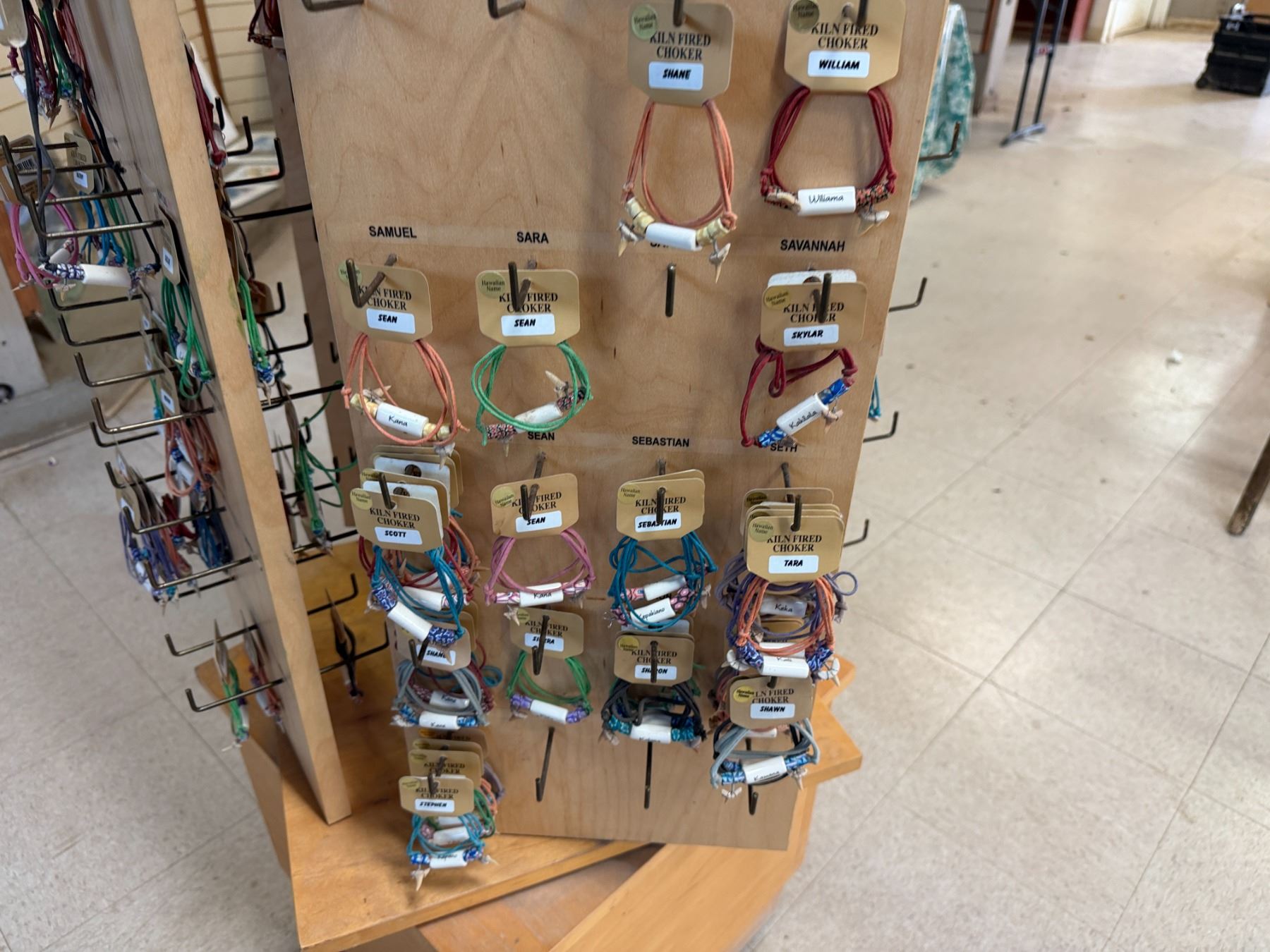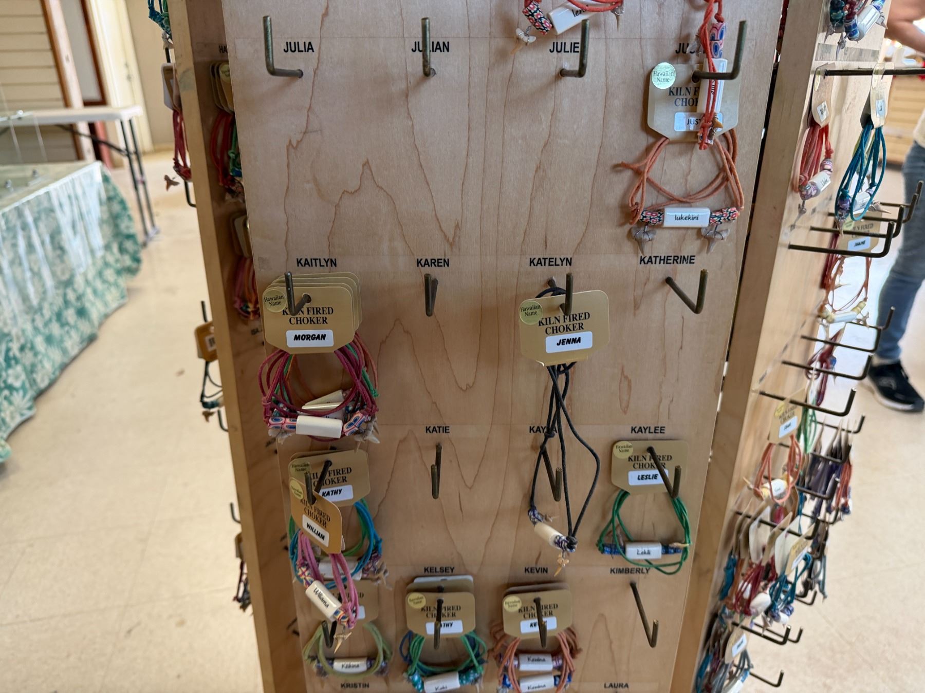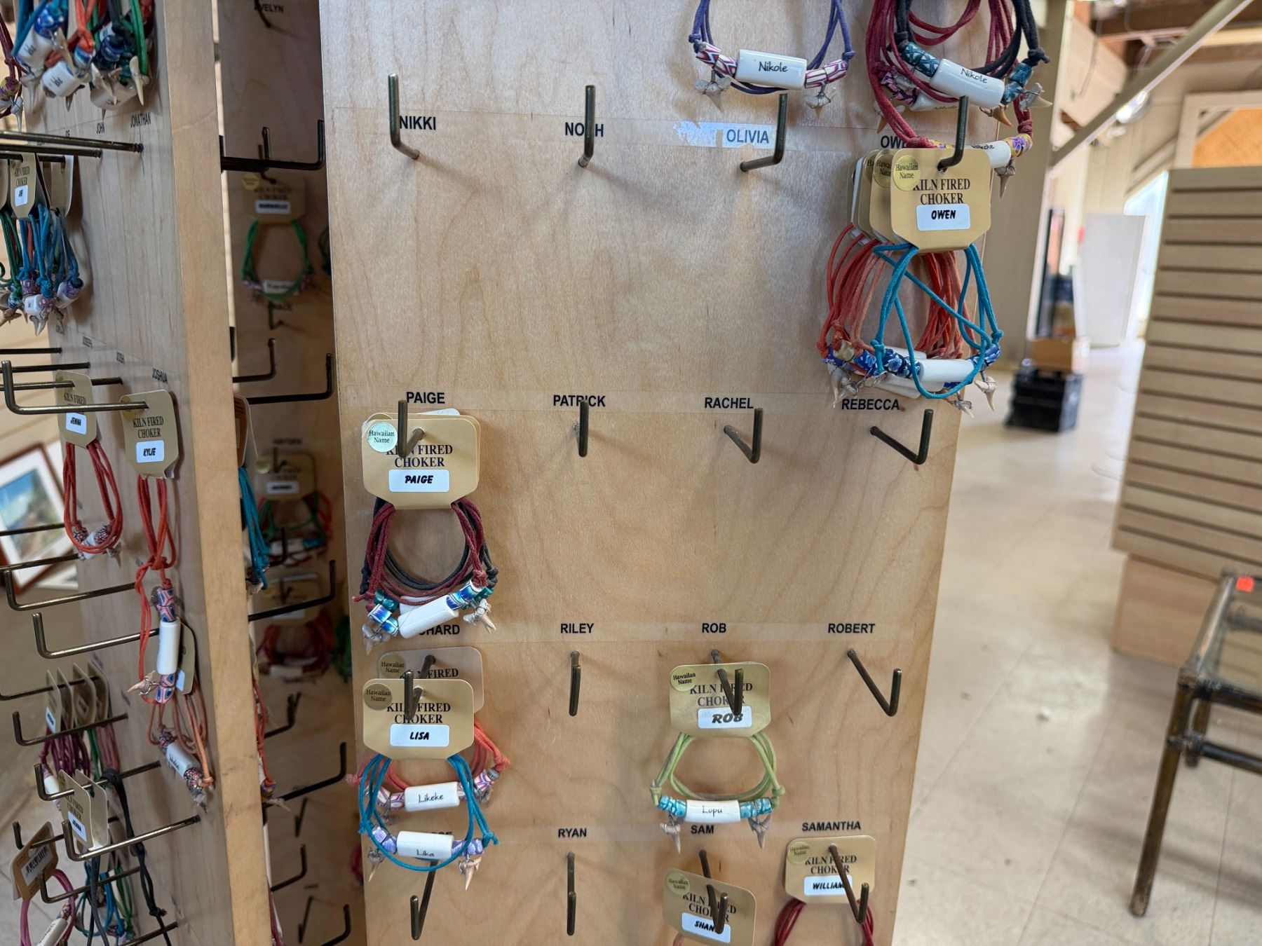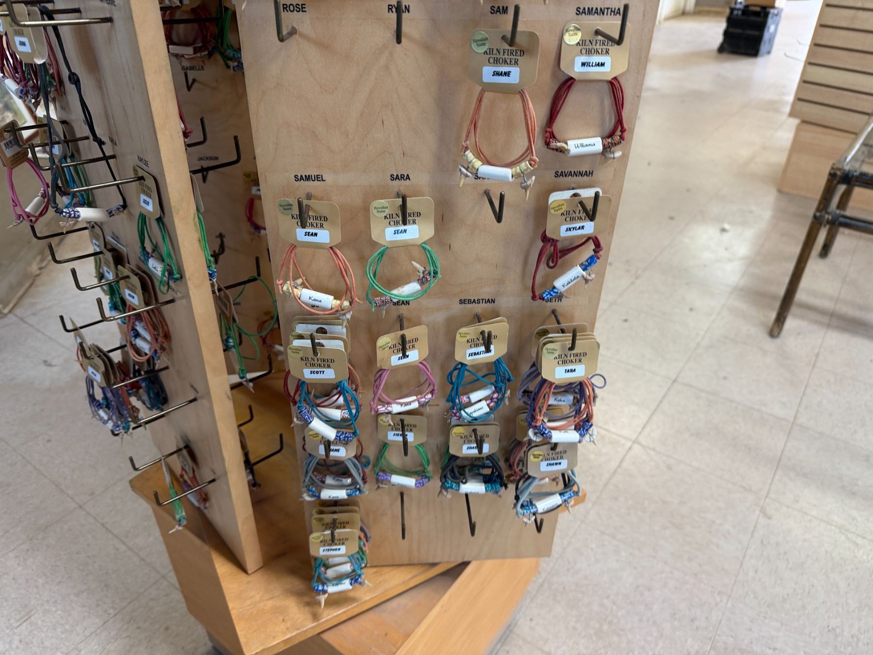 Display Rack w/ Multiple Your Name in Hawaiian Shark Wear Chokers