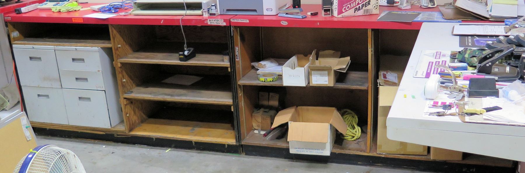 Display Shelf - Red Open Cabinet w/ Adjustable Shelves 121" x 24" x 42"