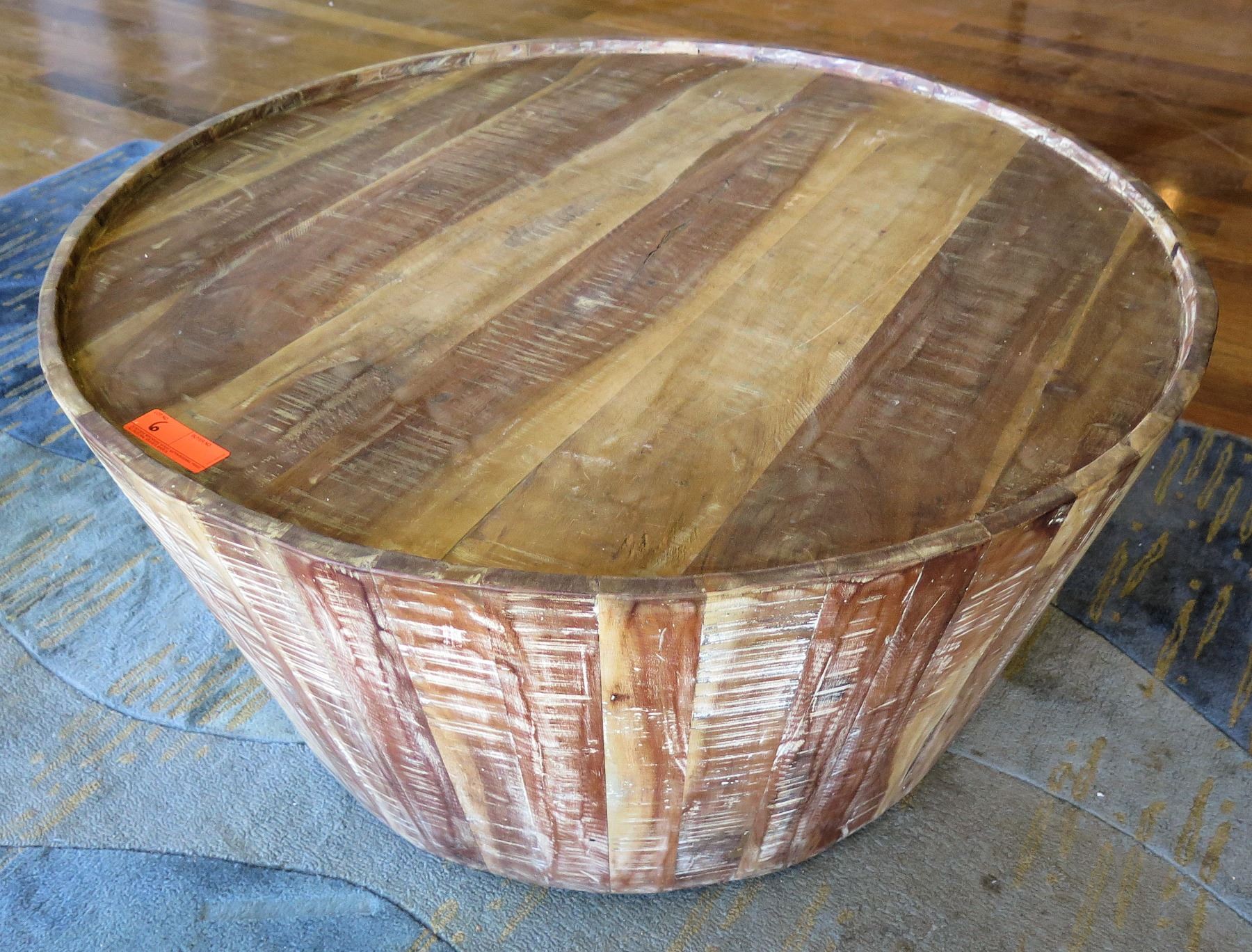Distressed Tapered Round Wooden Coffee Table 35" Dia, 18.5" H