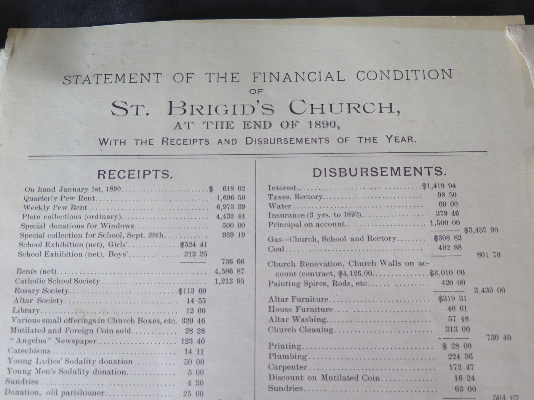 Documents: Letter signed Joseph Mooney 1898, Archbishop's House 1896, Church Financials, etc